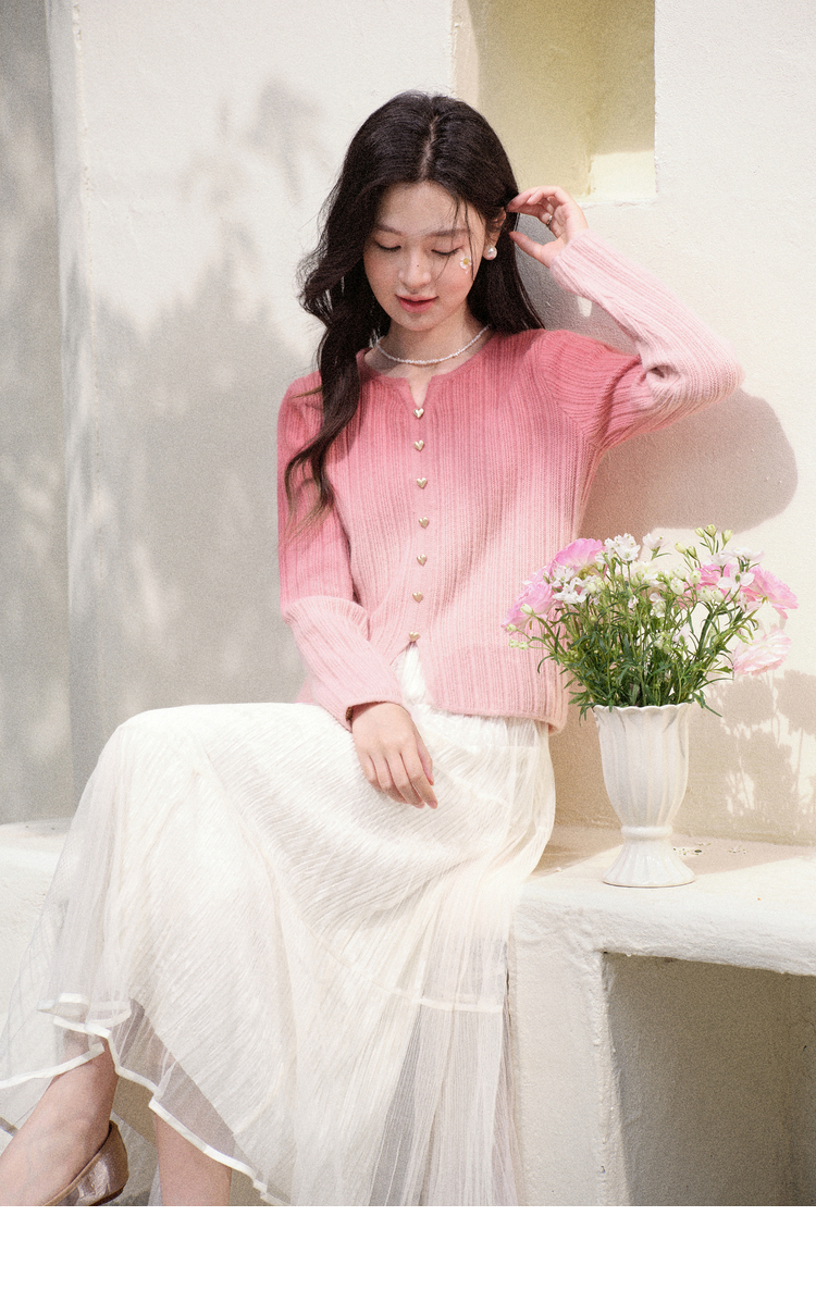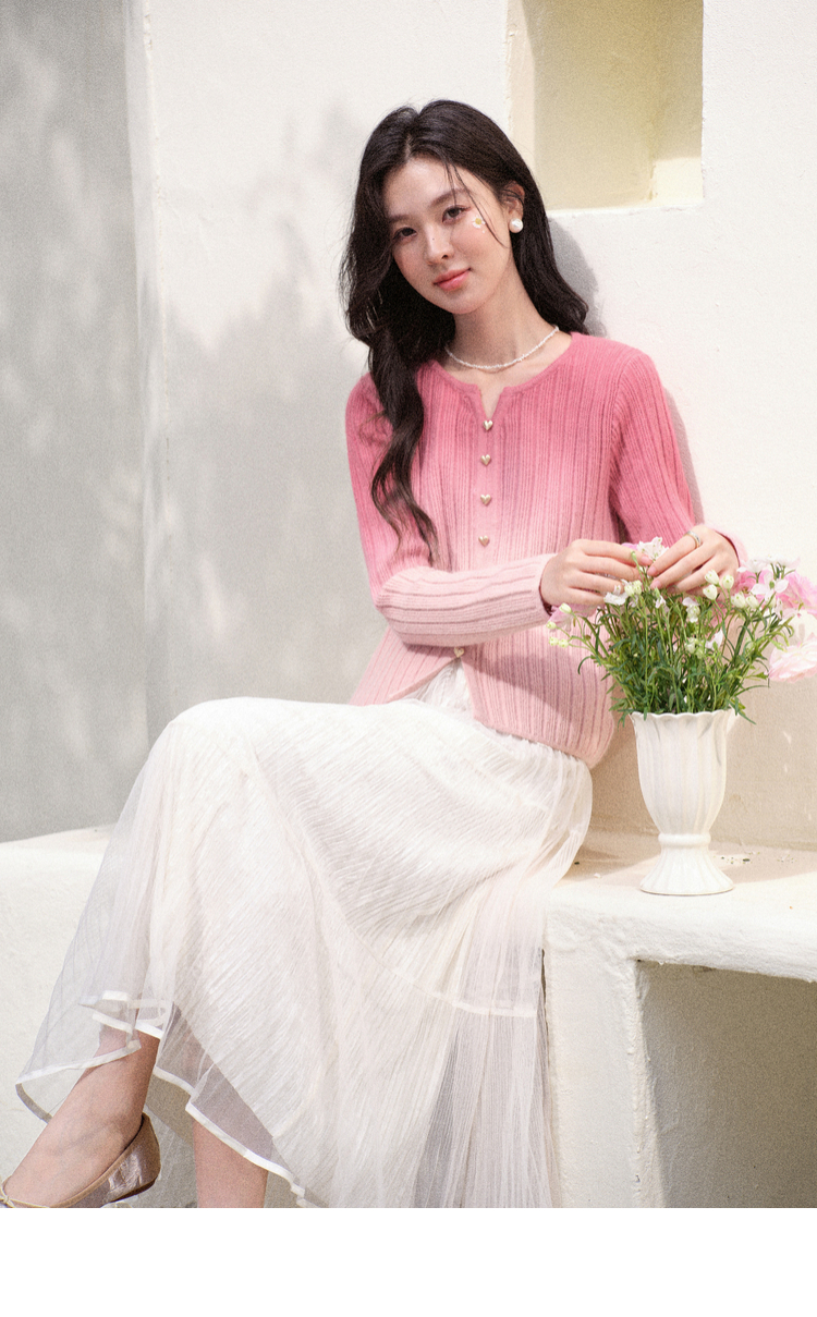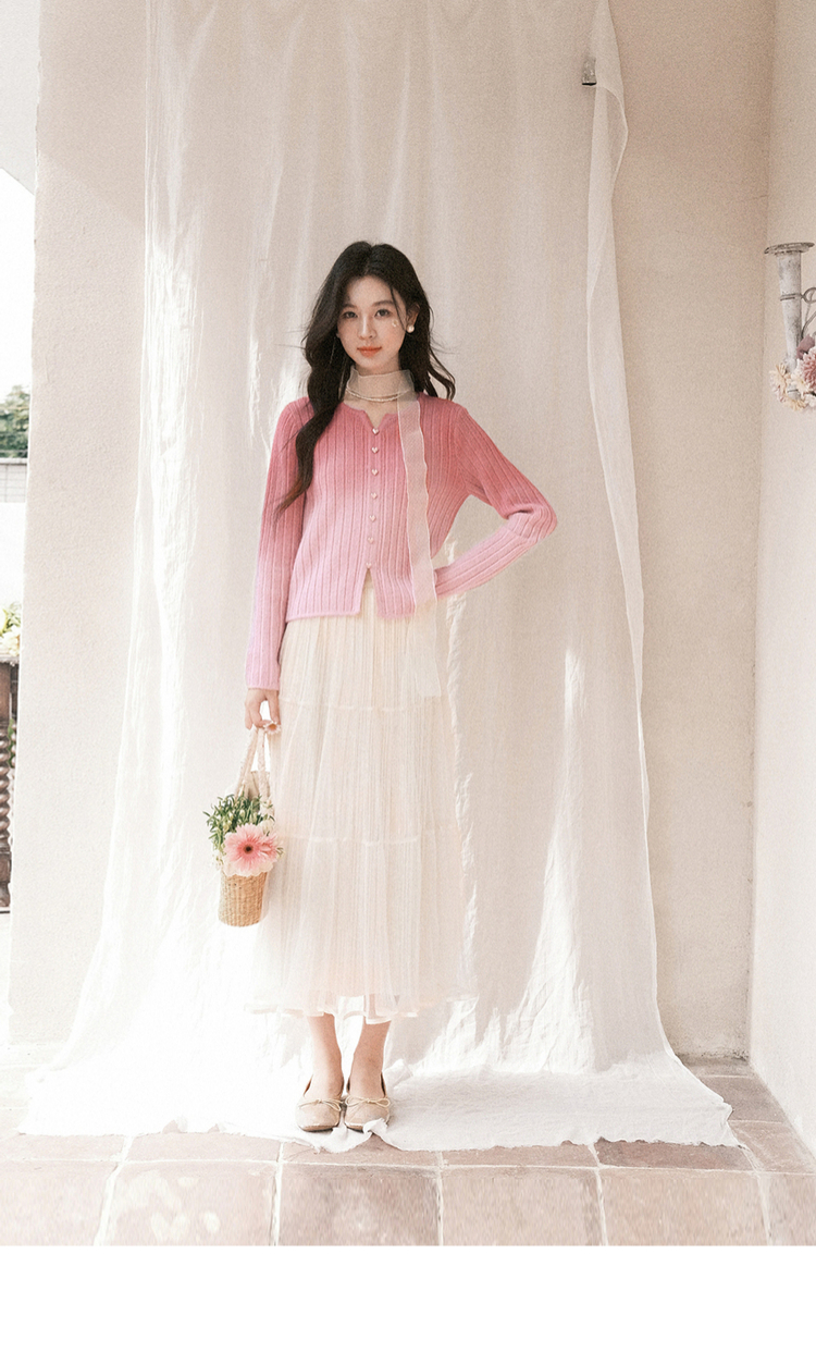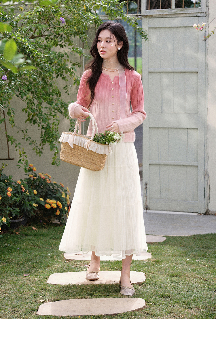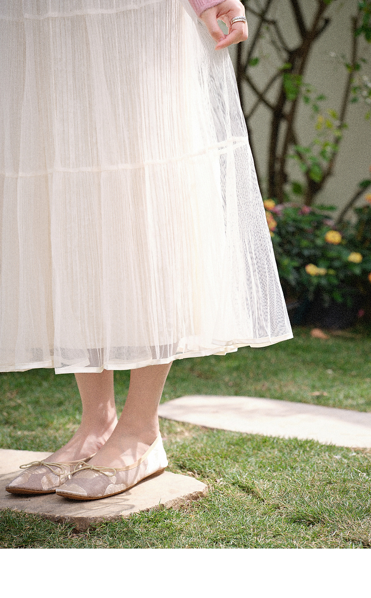 鹿向南「暖光曳步」杏色轻薄a字半身裙女春新款宽松显瘦高腰纱裙