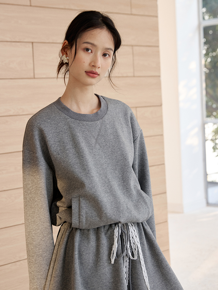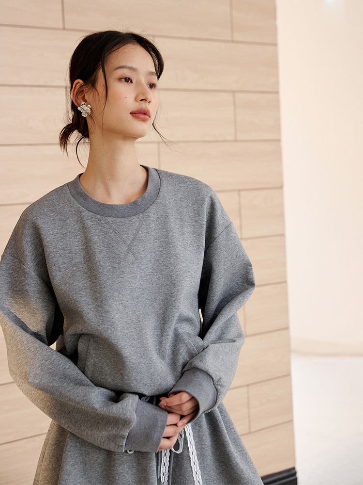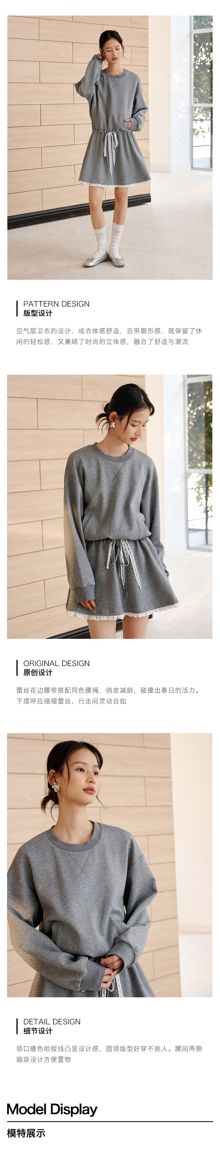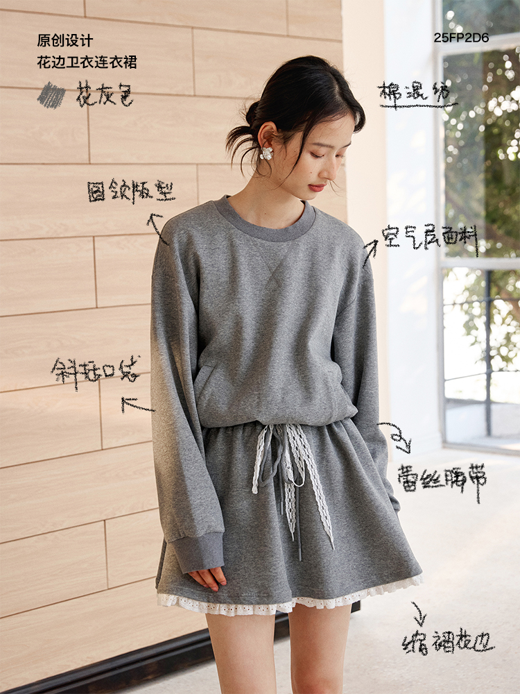 ForPoem 现货 25/SS原创设计空气层收腰蕾丝花边装饰卫衣裙