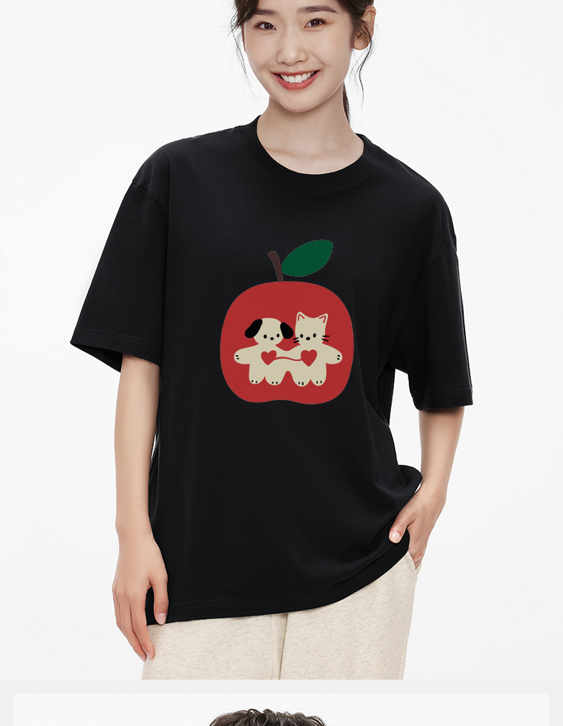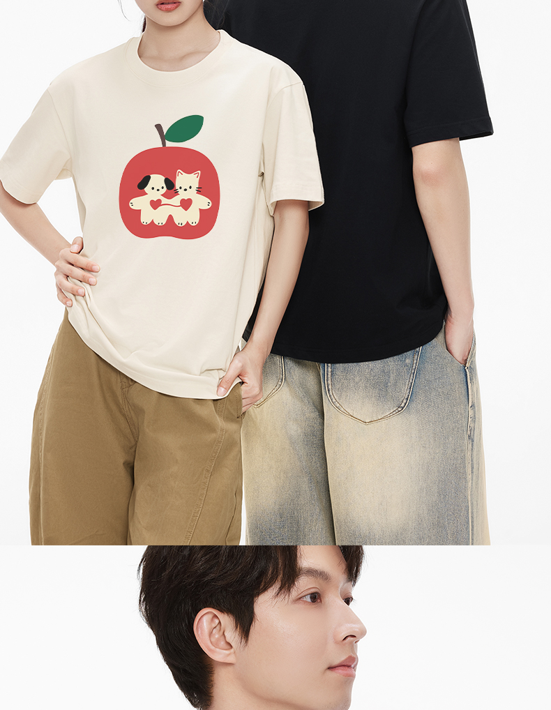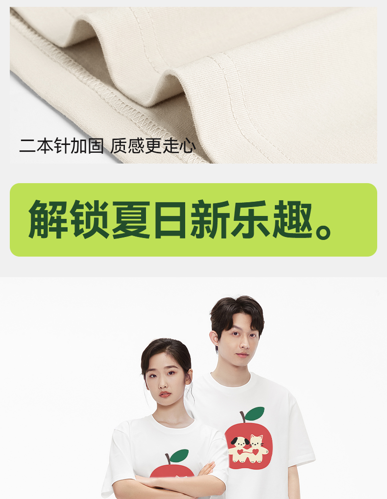 「棉的美学」230g重磅极简短袖T恤夏季新款小熊印花日常宽松上衣