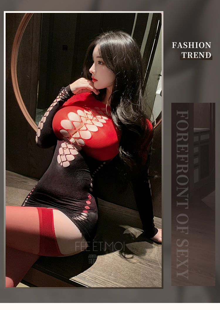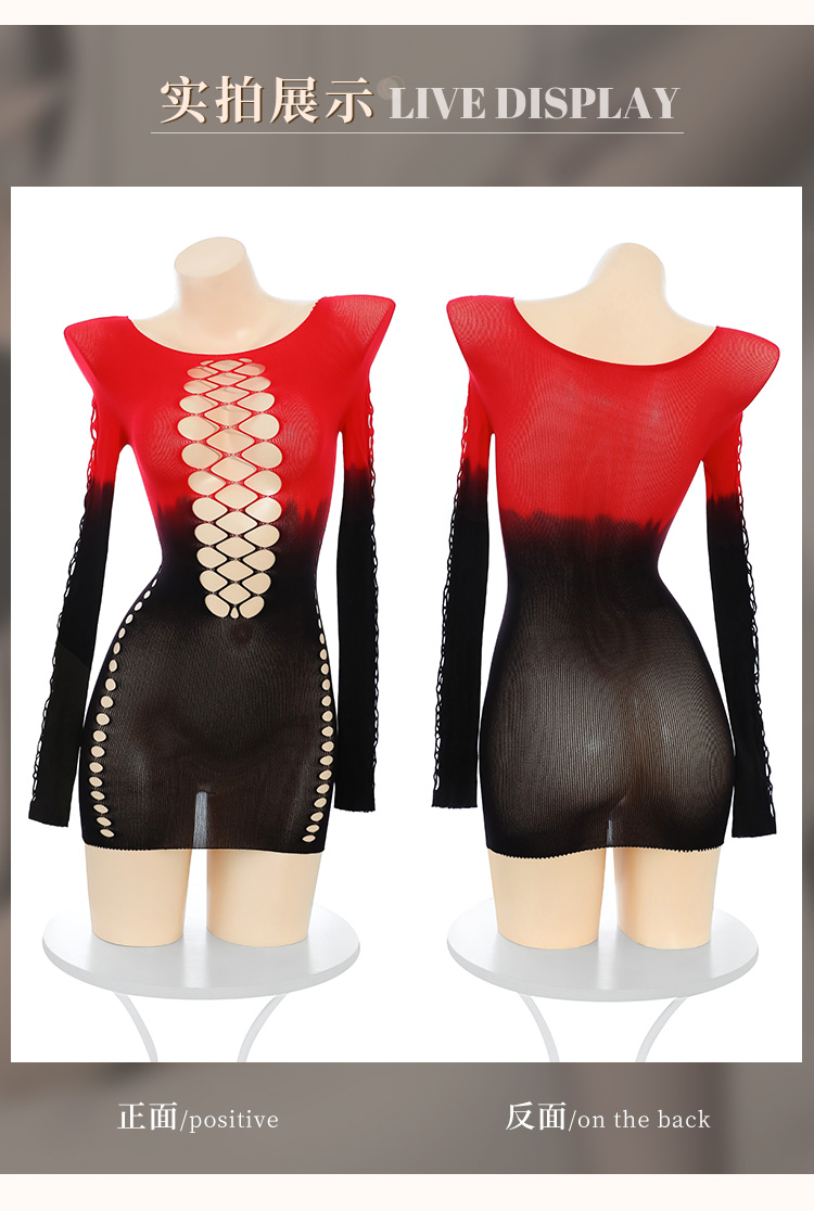 【情趣内衣】霏慕 渐变色魅惑镂空网衣包臀裙7578