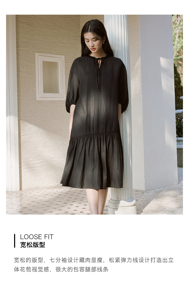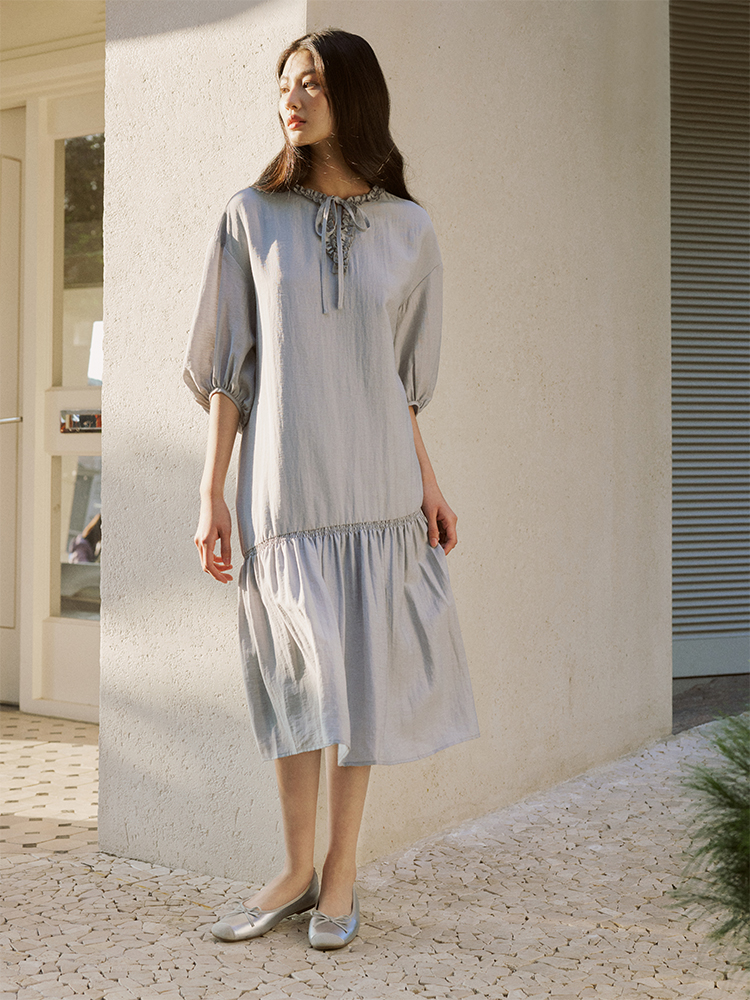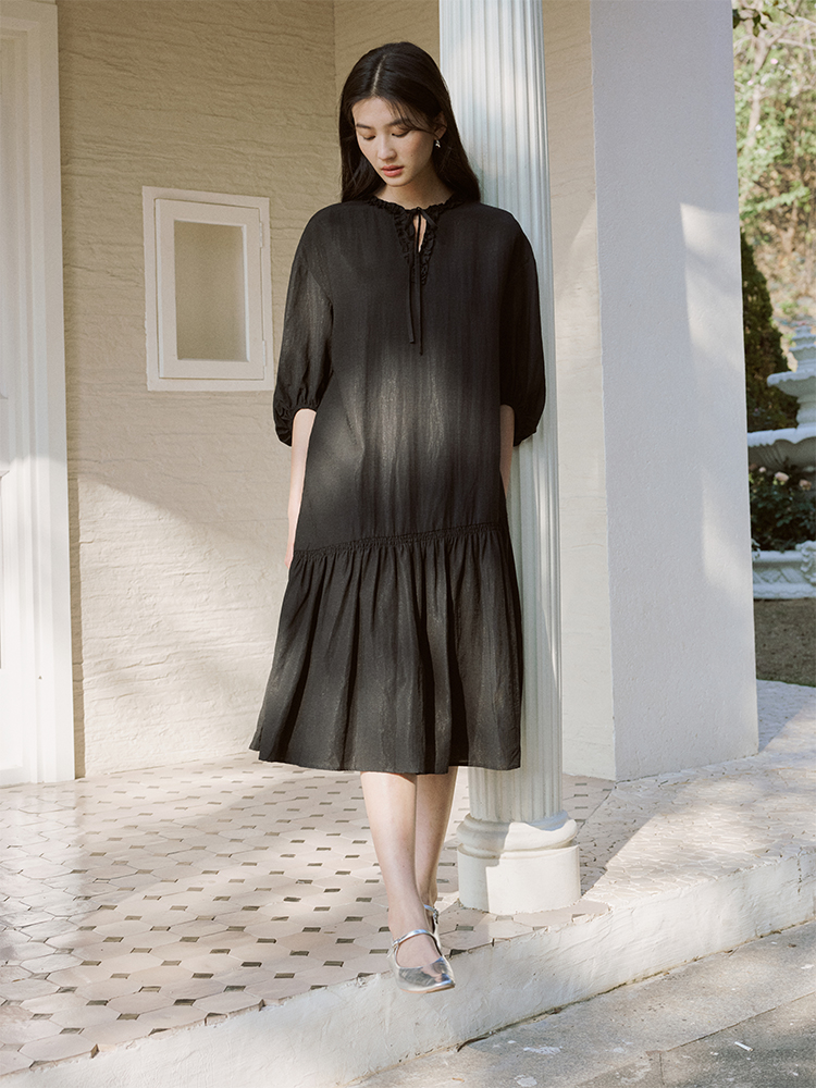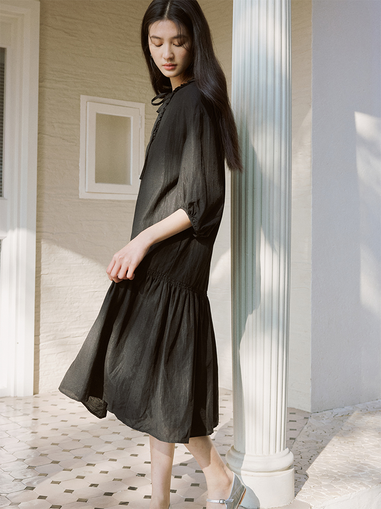 ForPoem 现货 24/SS原创设计春季新款亚麻花边领法式泡泡袖连衣裙女
