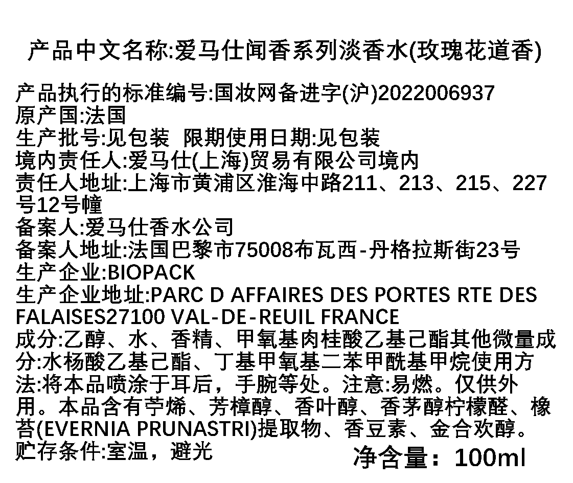 Hermes爱马仕 玫瑰花道香水