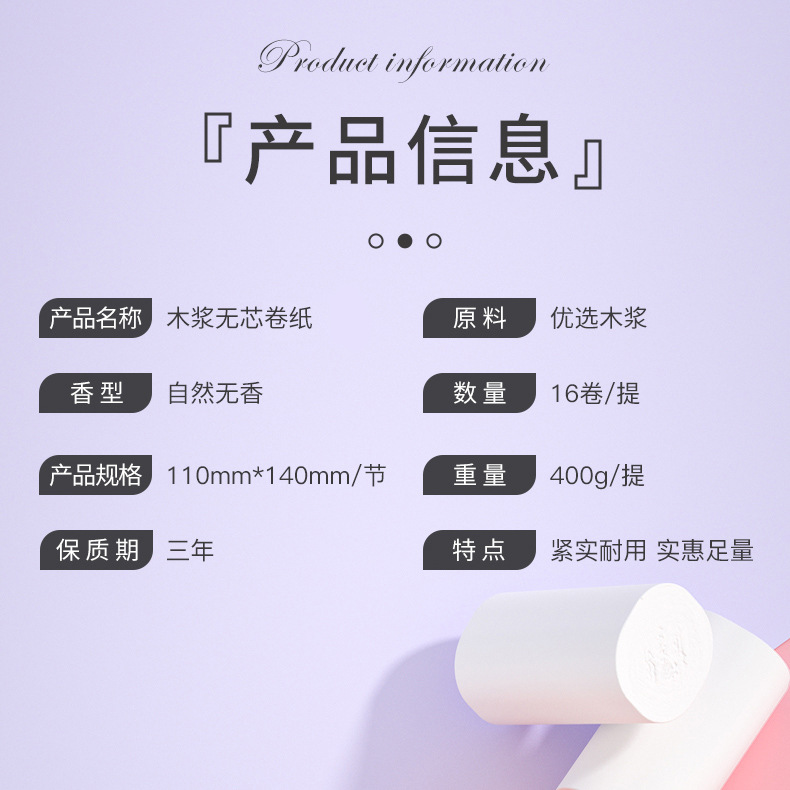 【16卷实惠装】无芯卷纸卫生纸家用厕所厕纸手纸整箱卷巾擦手