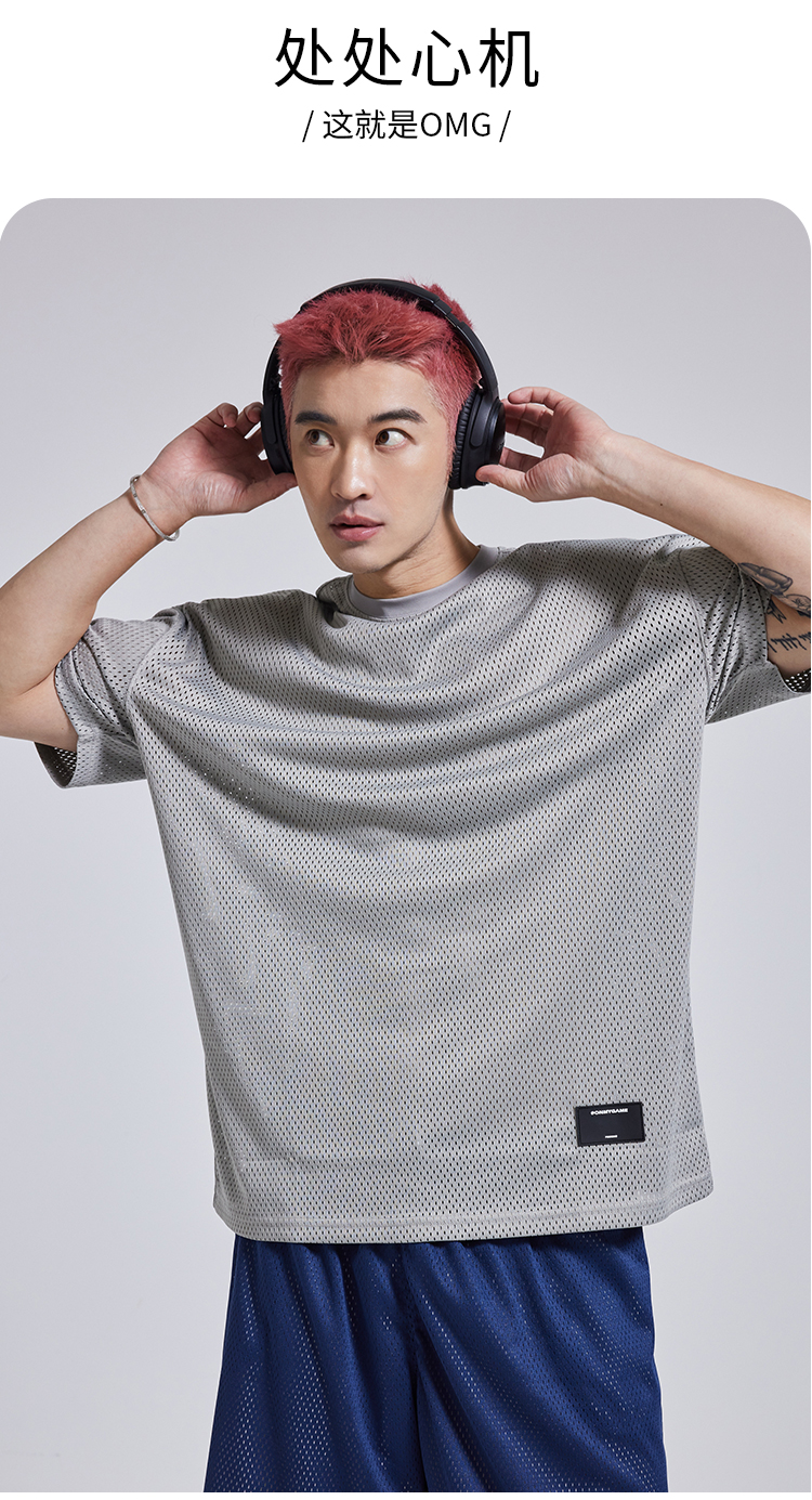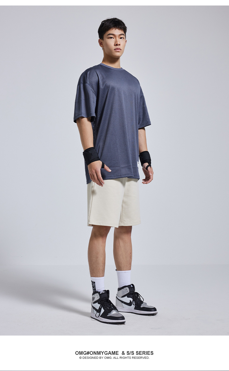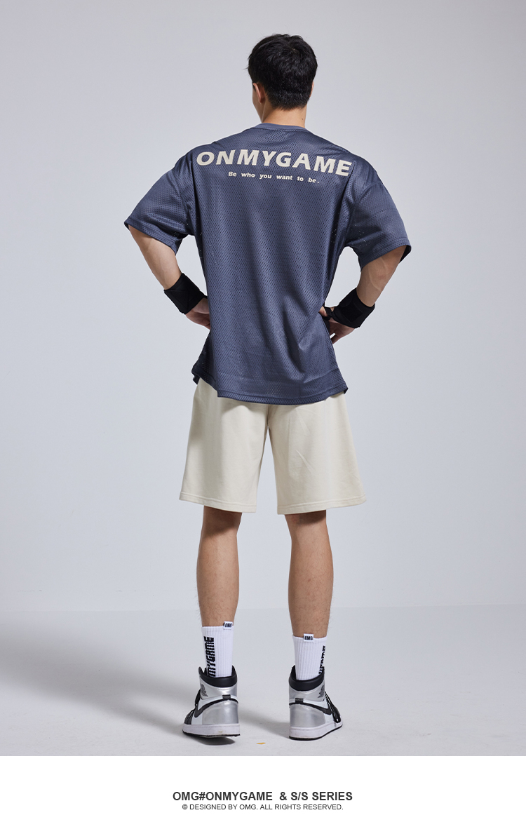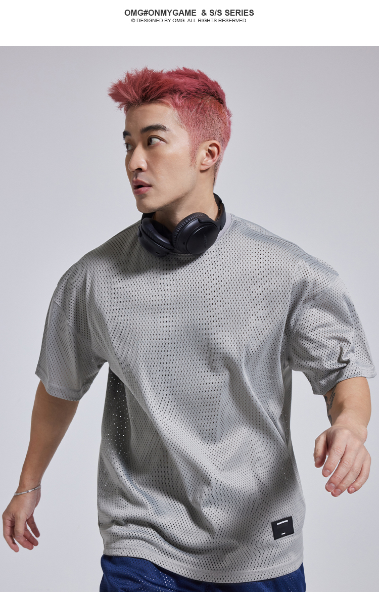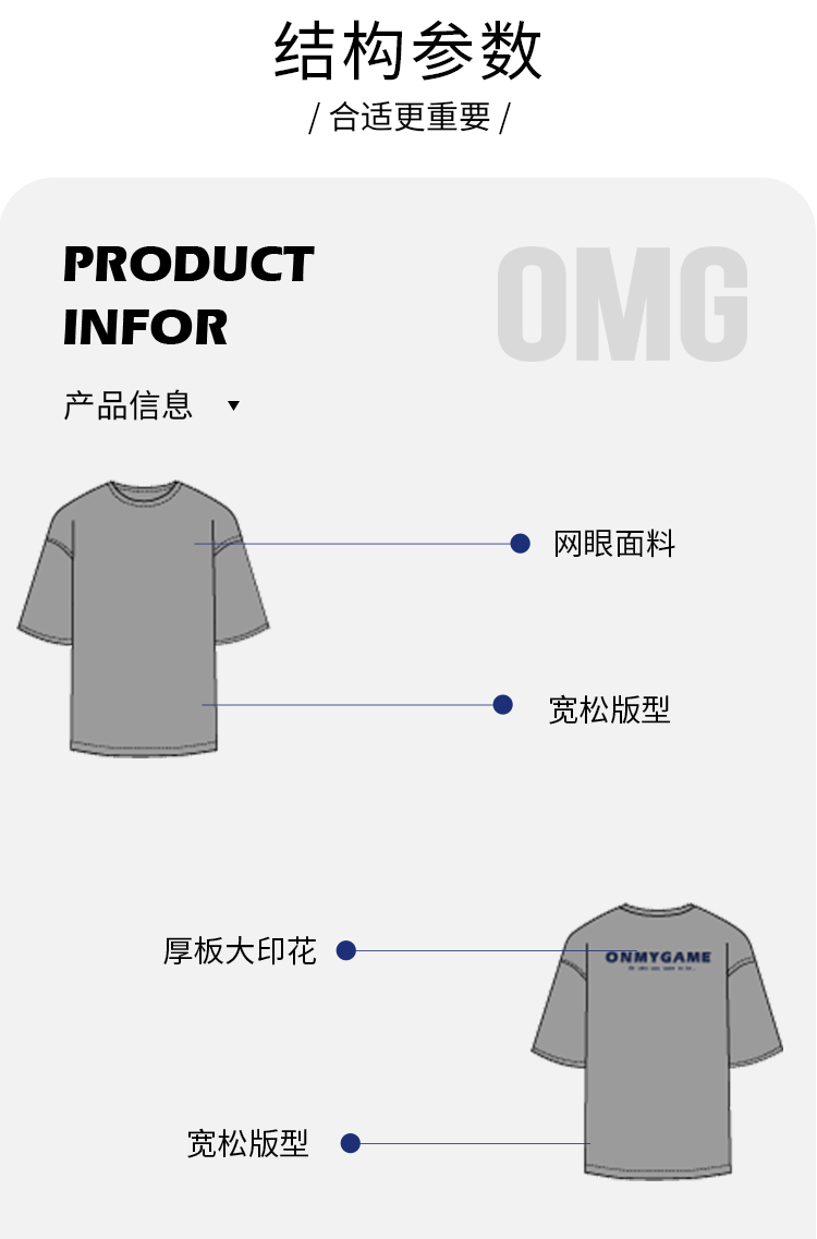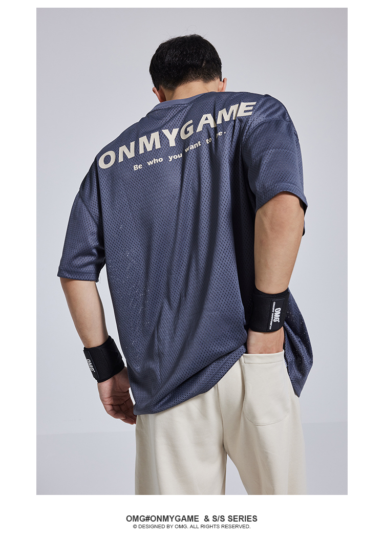 OMG潮牌 网孔透气短袖男士宽松夏季排汗跑步运动健身衣服印花t恤A-EMT2325