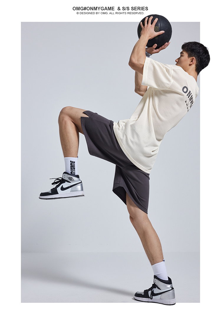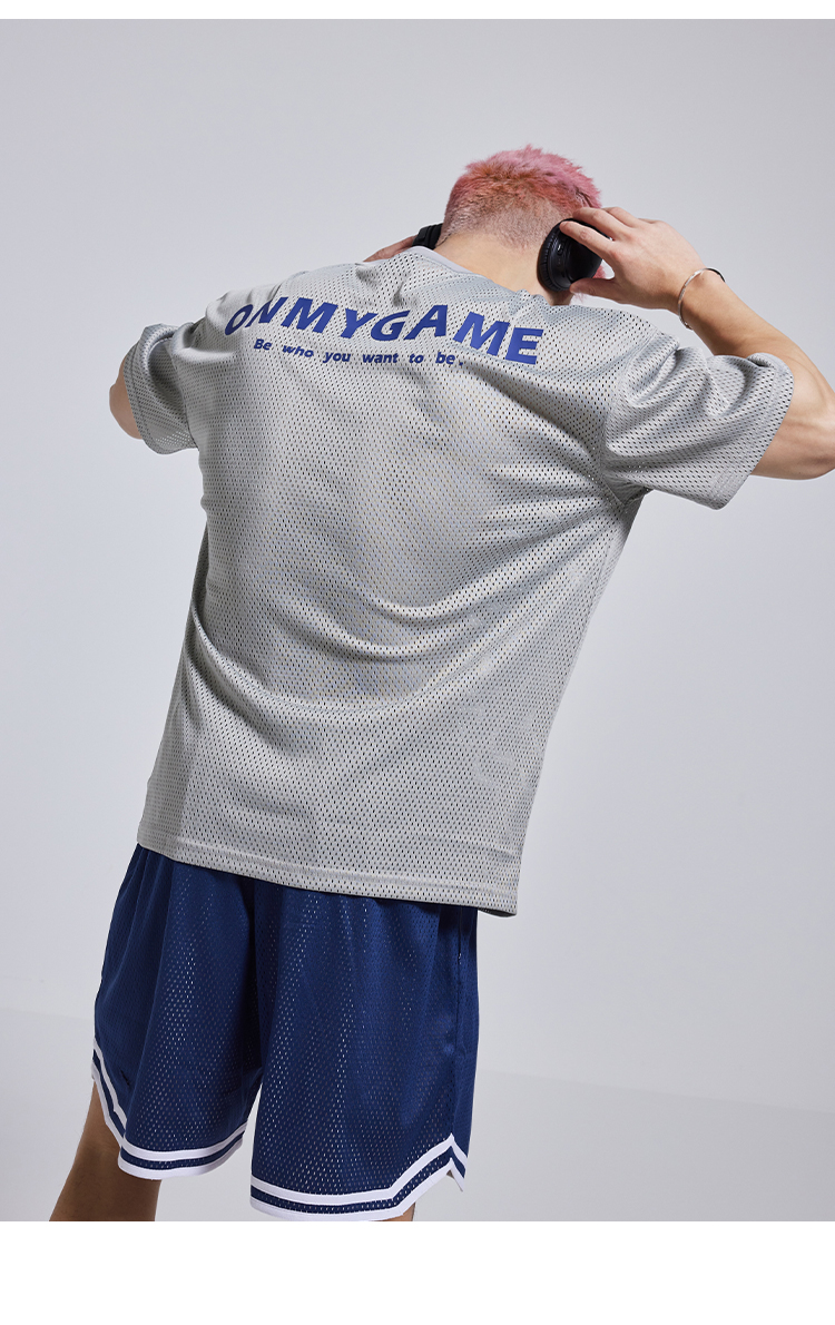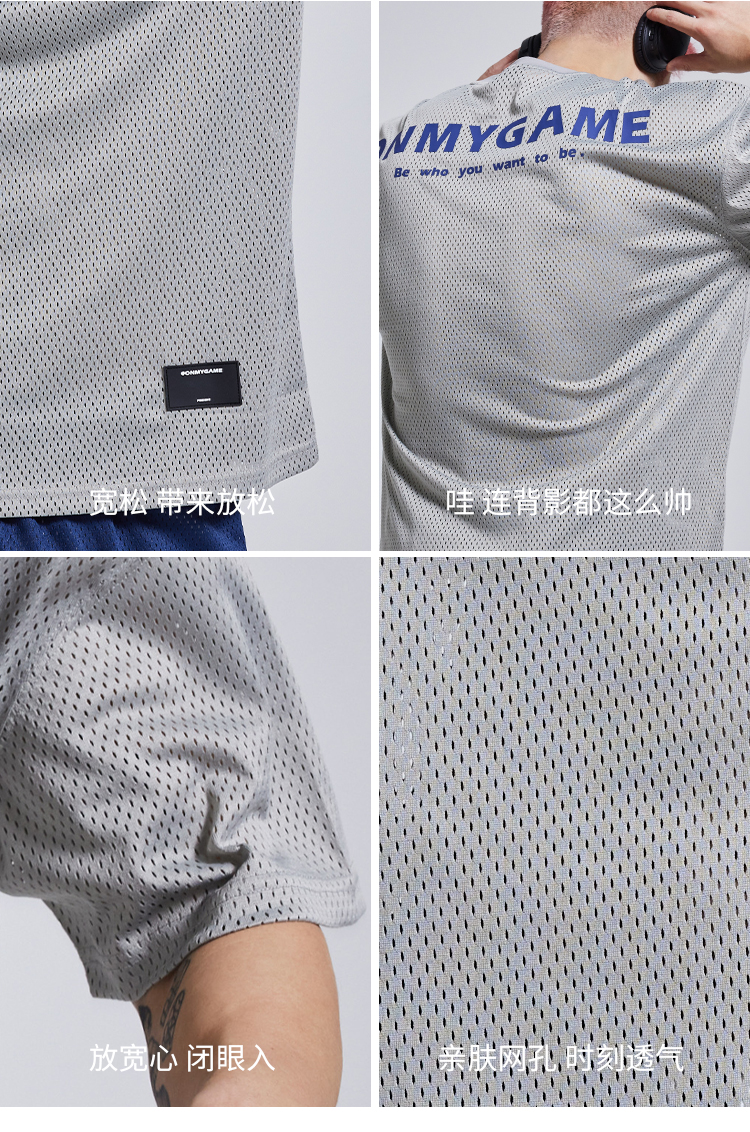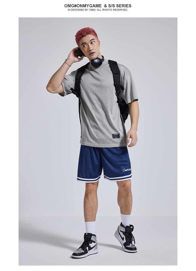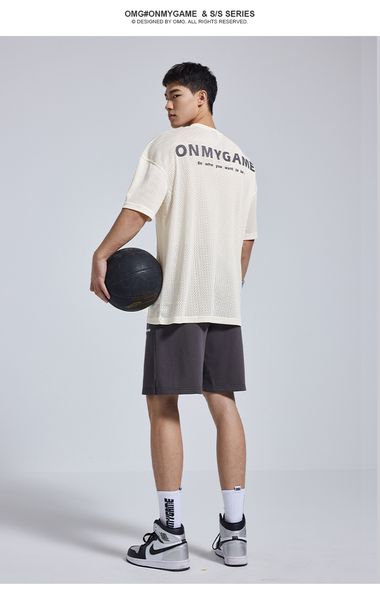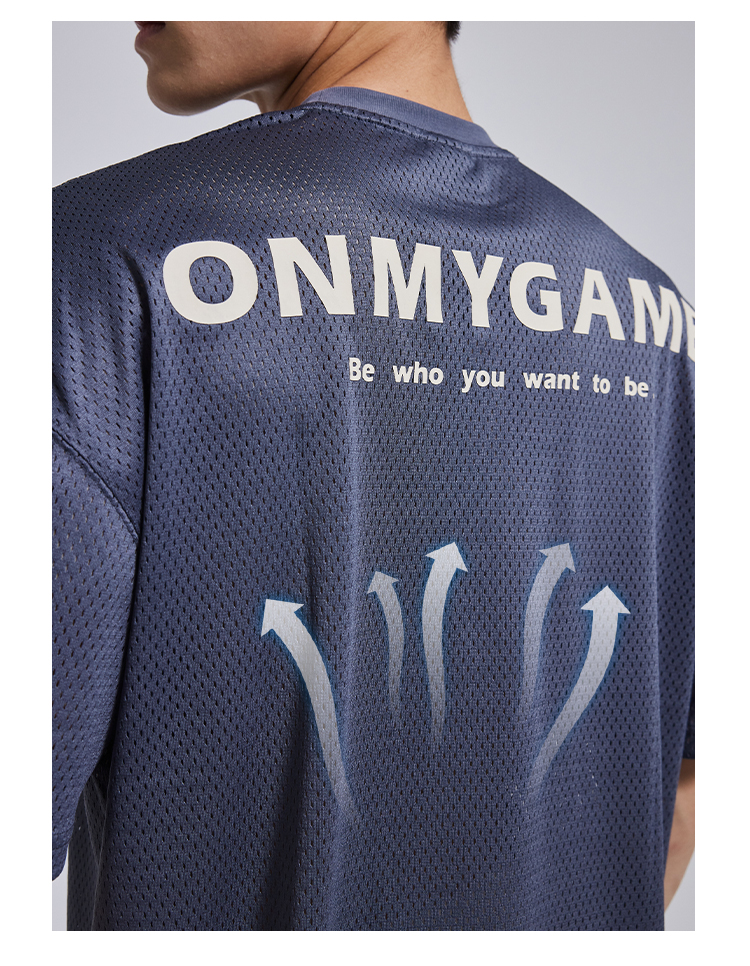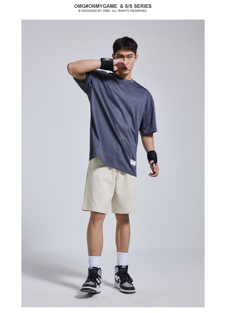 OMG潮牌 网孔透气短袖男士宽松夏季排汗跑步运动健身衣服印花t恤A-EMT2325