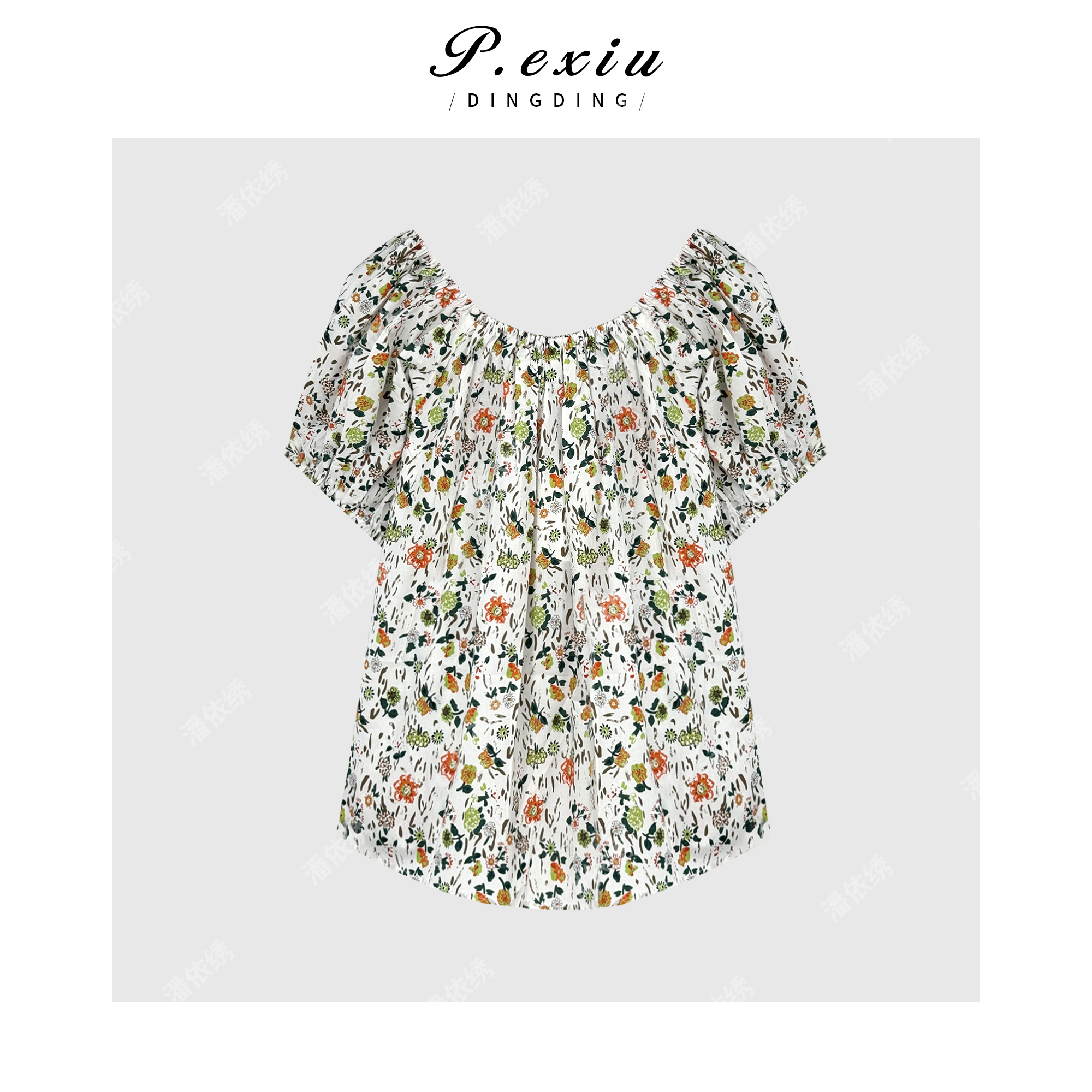 03-3潘依绣丁丁宠粉100%棉韩系甜美风小清新碎花一字领衬衫 SH98107