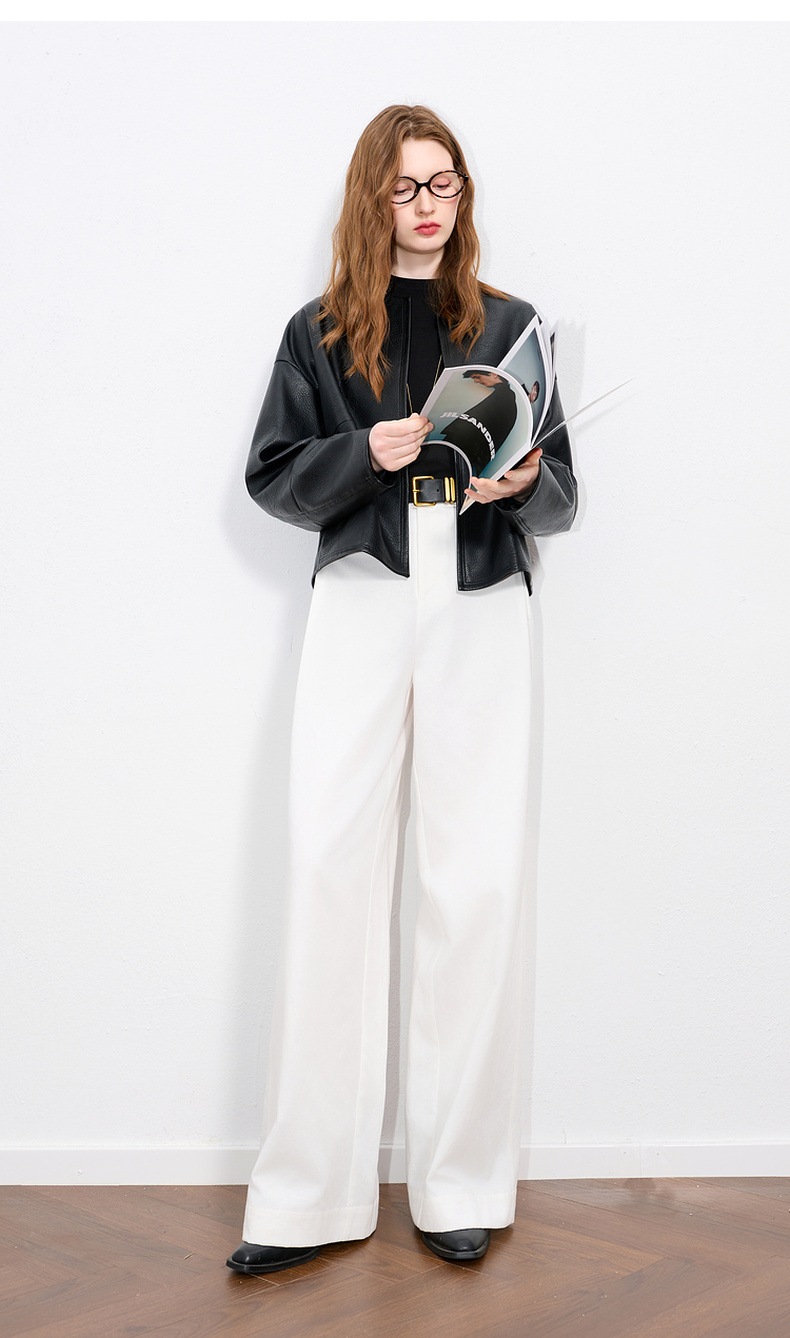 【莱赛尔】三彩2025秋季新款休闲裤中腰宽松阔腿裤长裤简约S