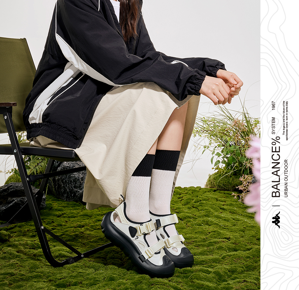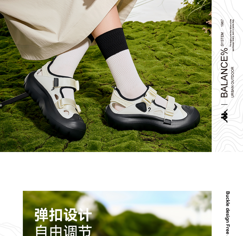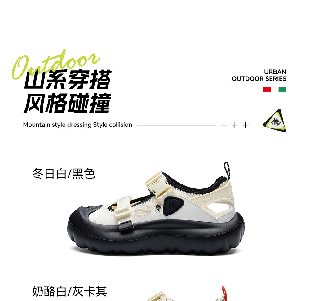 Kappa卡帕背靠背凉鞋女2025夏季厚底溯溪鞋老爹鞋镂空运动沙滩鞋K0F45LL00