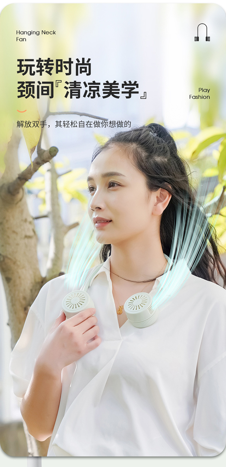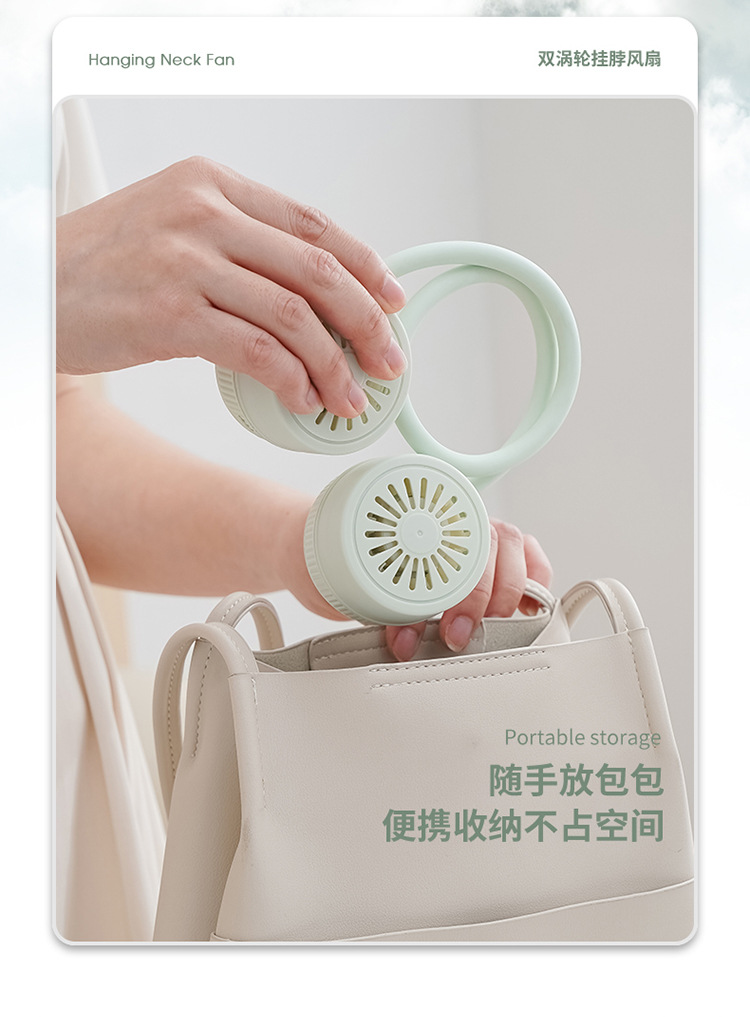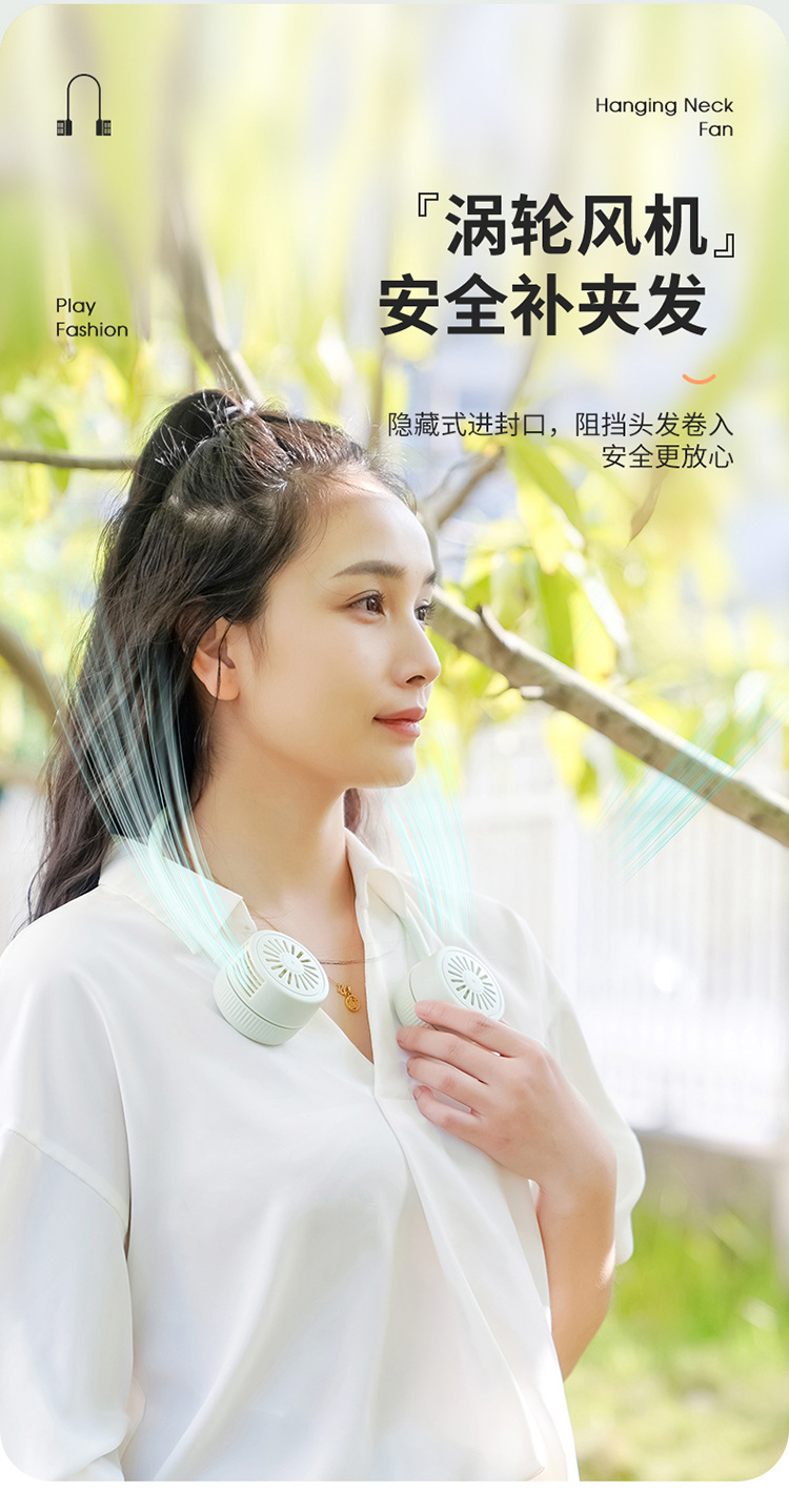 「创新便携!口袋挂脖风扇」2023新款无叶折叠挂脖风扇 懒人静音便携式数显迷你折叠小风扇生活电器