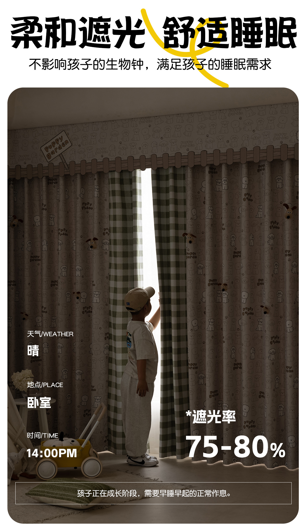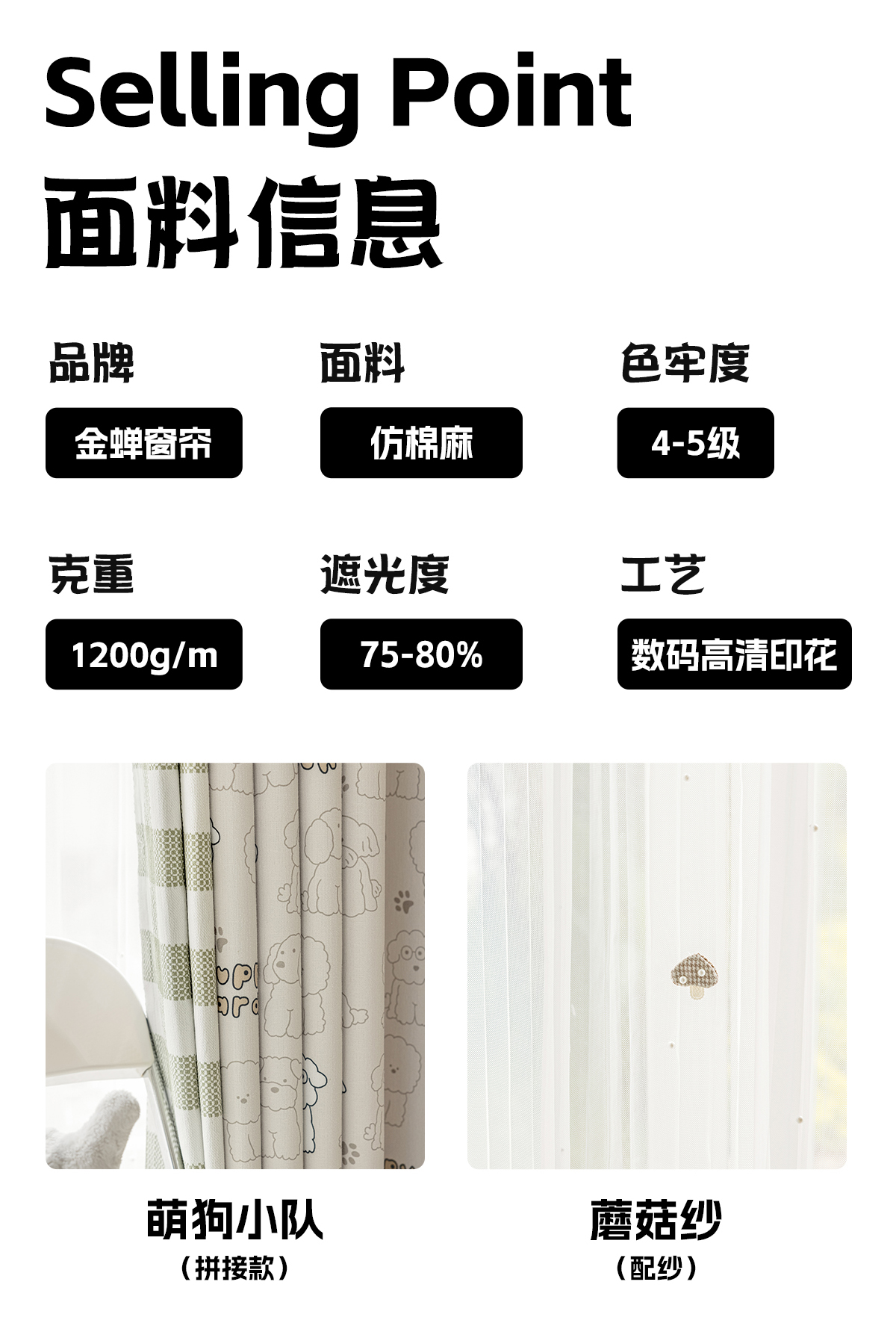 萌狗小队金蝉款抗菌儿童房卡通窗帘童趣男孩女孩卧室遮光