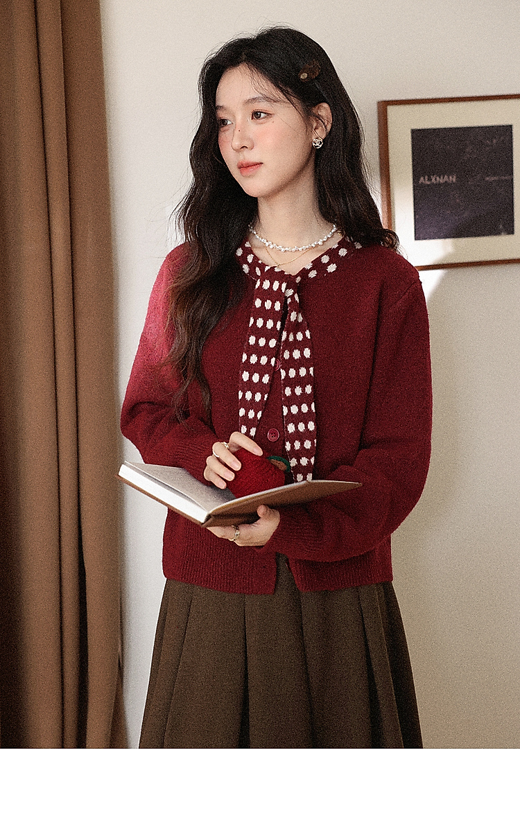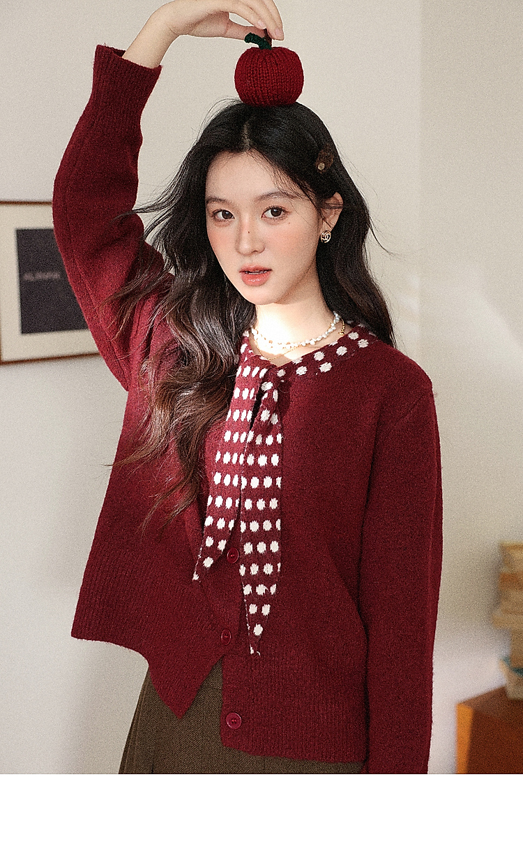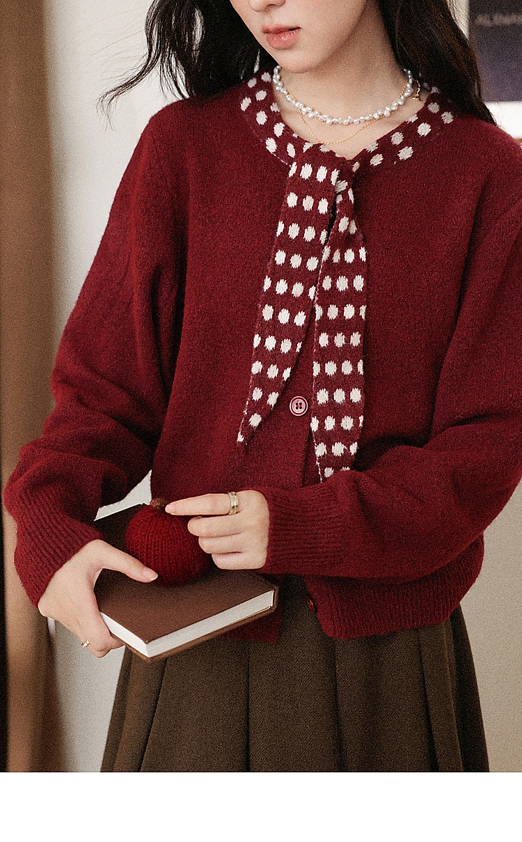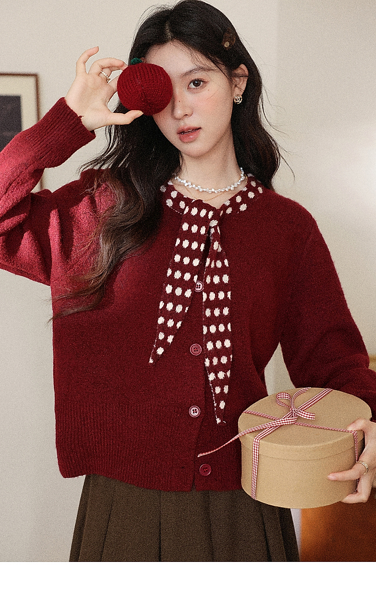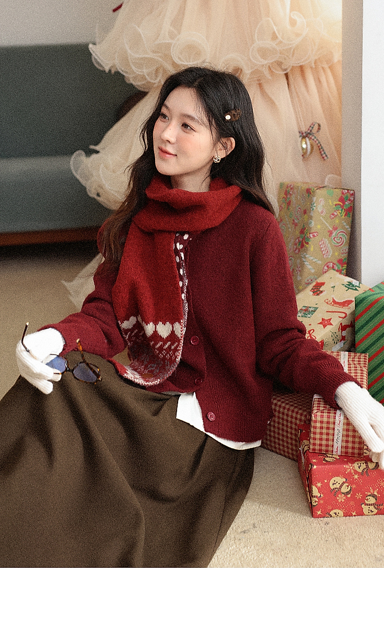 鹿向南「清欢渡月」法式洋气红色毛衣女秋冬时尚长袖开衫短款上衣