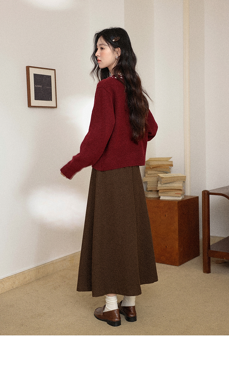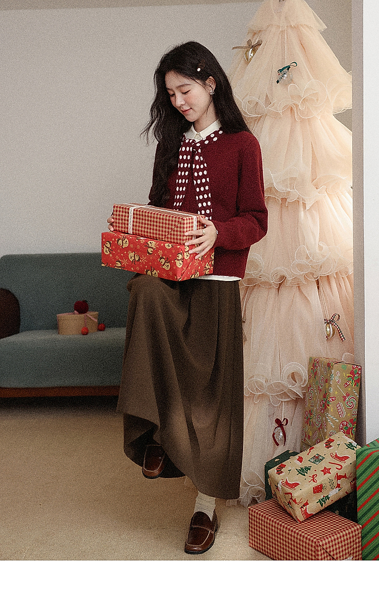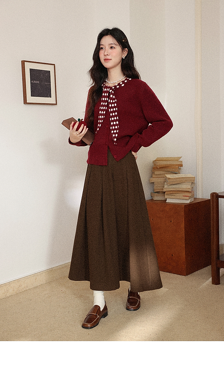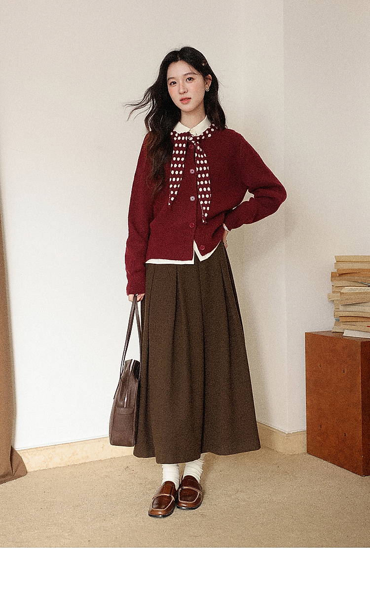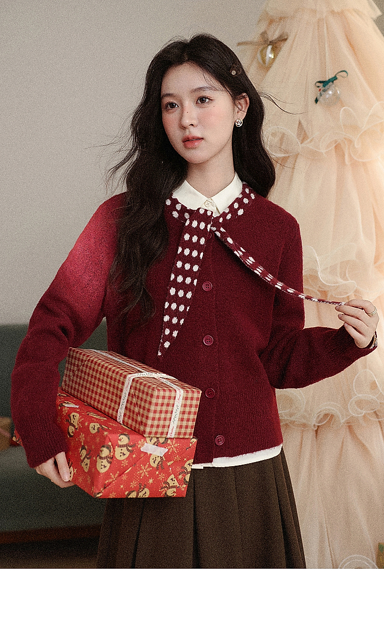 鹿向南「清欢渡月」法式洋气红色毛衣女秋冬时尚长袖开衫短款上衣