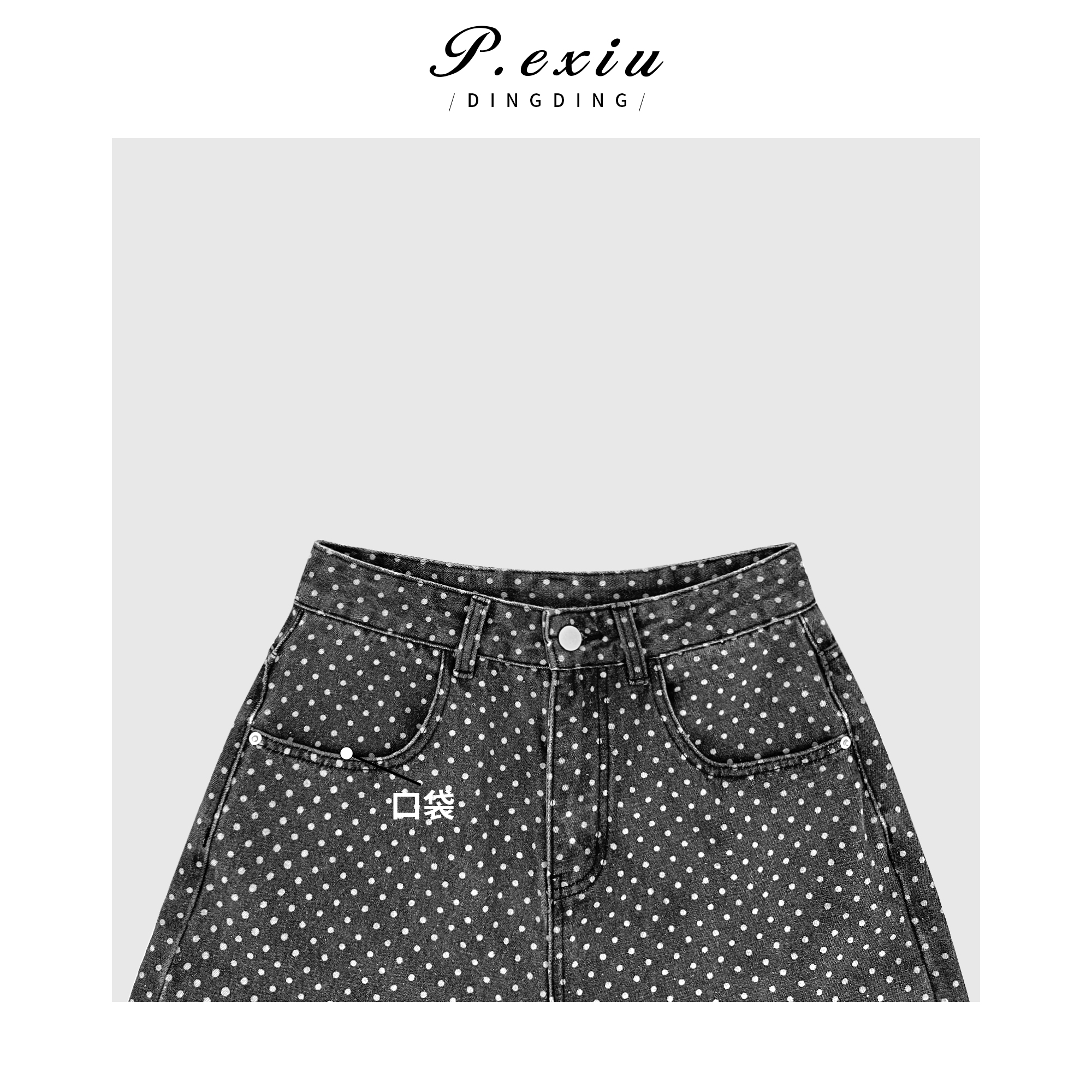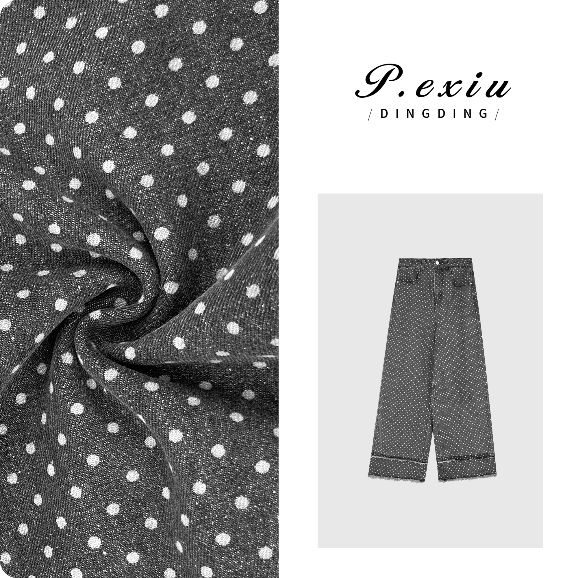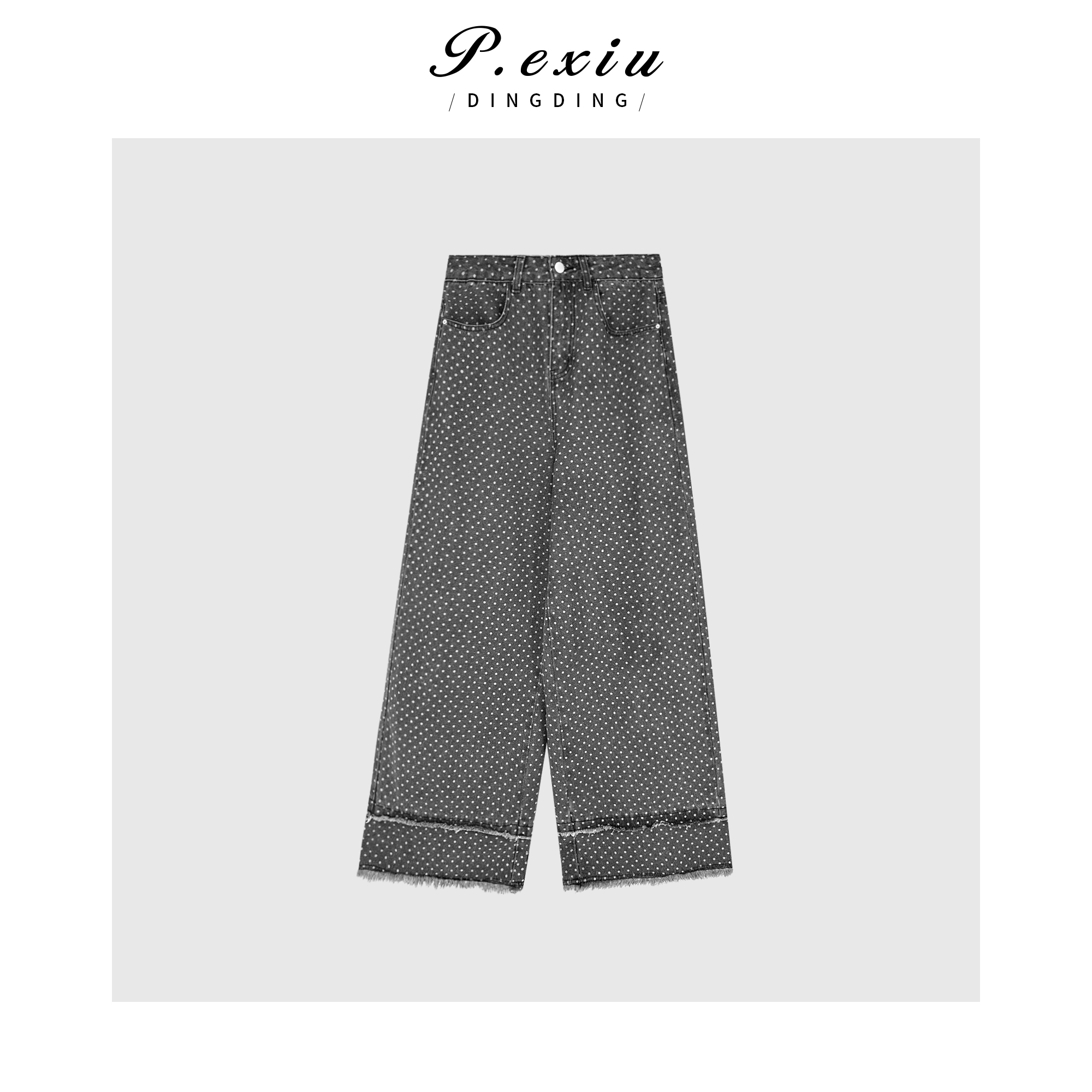 04-3潘依绣丁丁宠粉潘依绣【夜星空】设计款做旧毛边波点印花牛仔裤 D6293