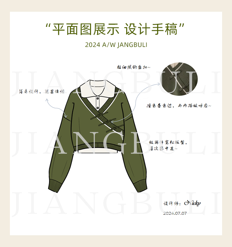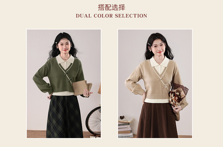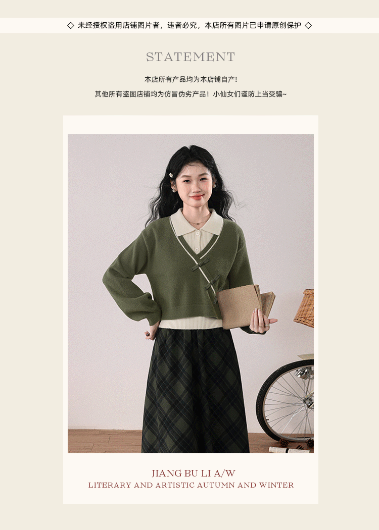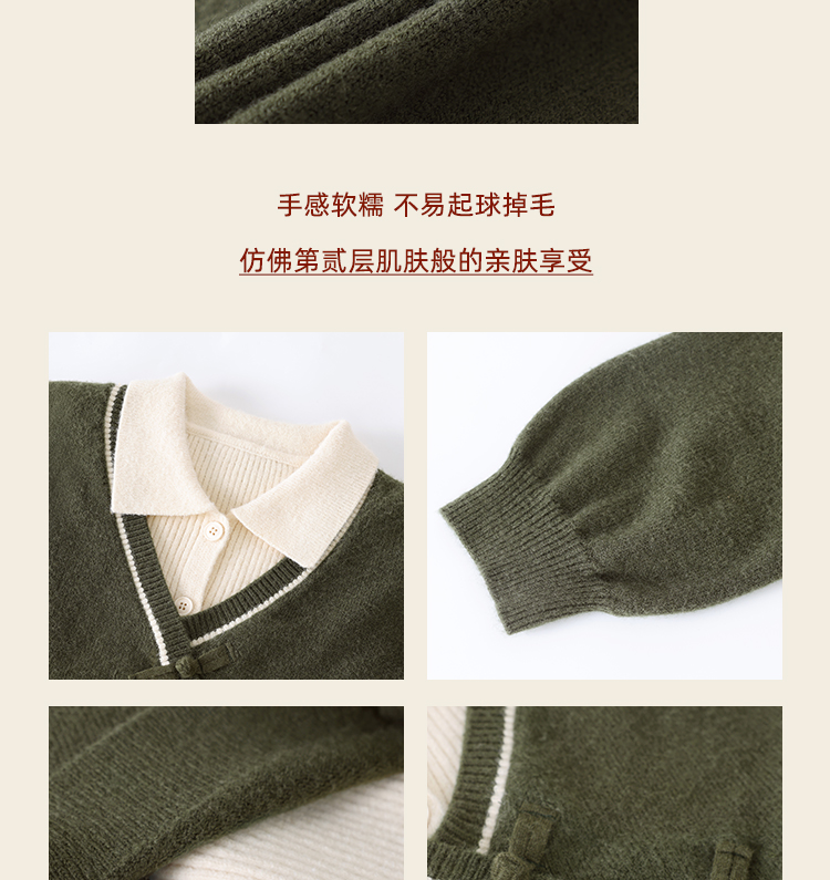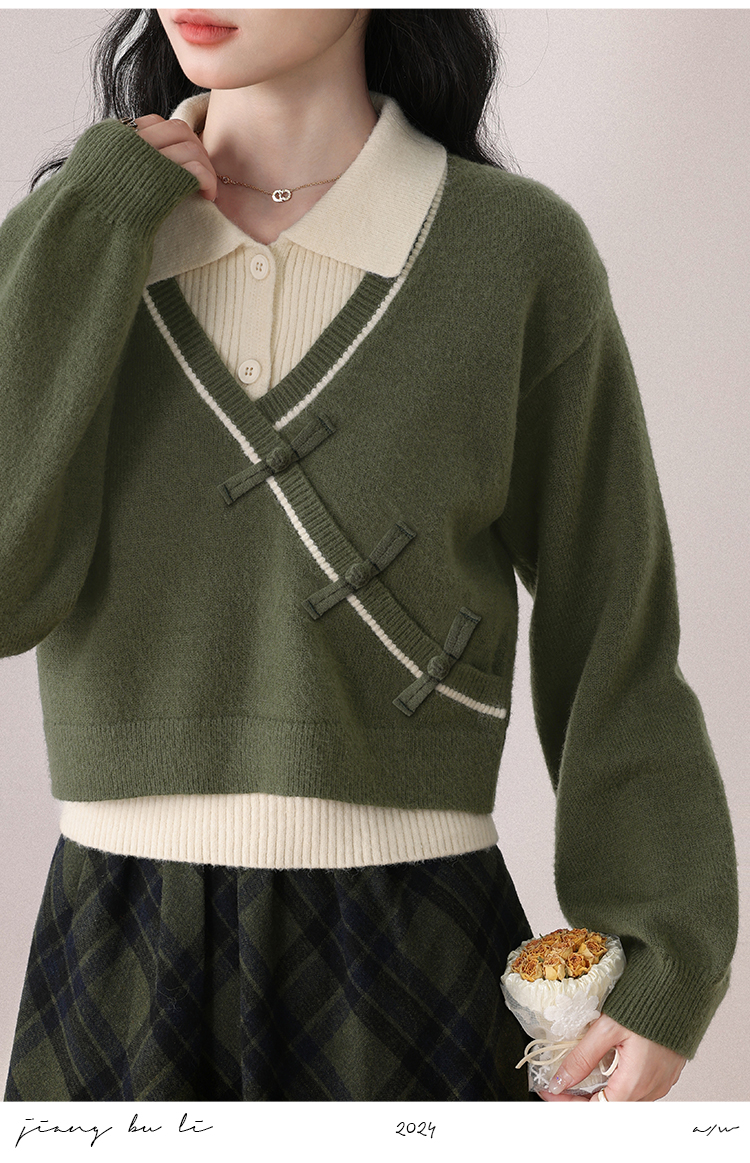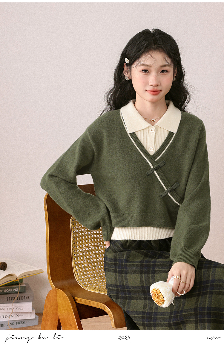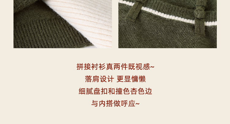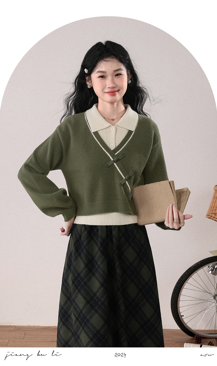 鹿向南「绿隐藏蝶」新中式假两件慵懒风毛衣秋冬针织衫&半身裙