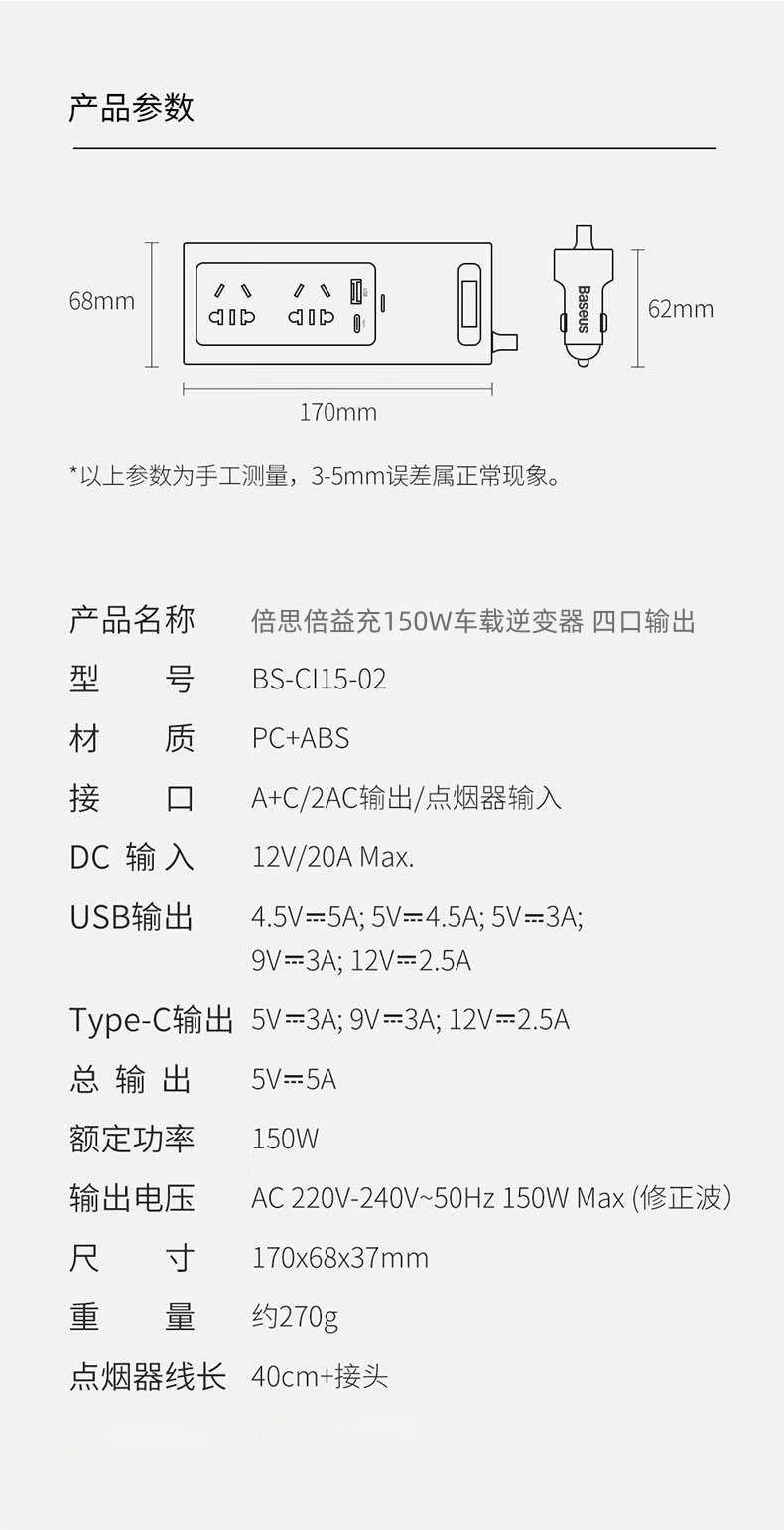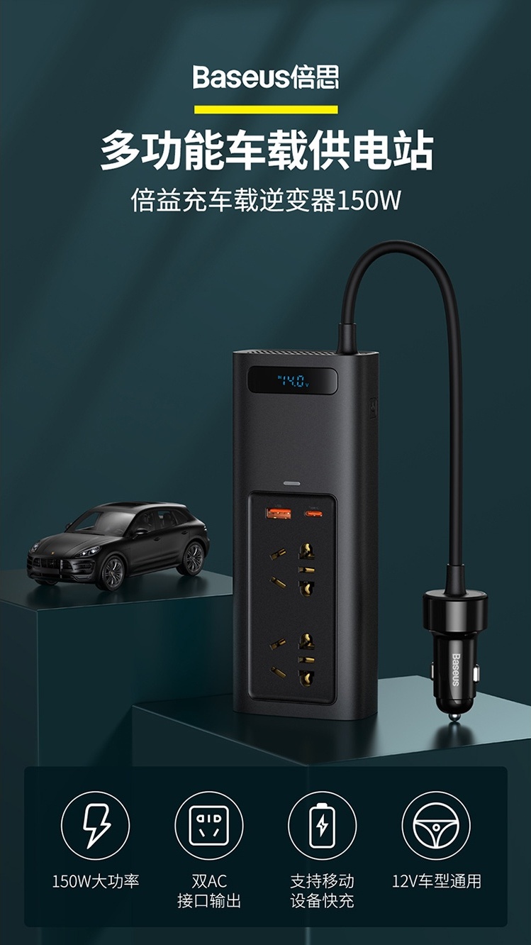 Baseus/倍思 倍益充150W车载逆变器车载充电器 四口输出 BS-CI15-02