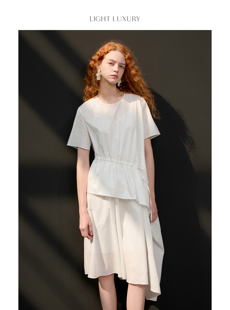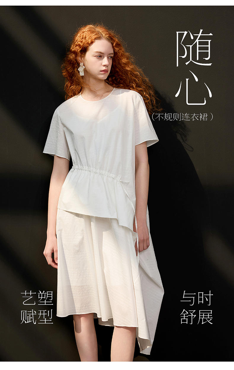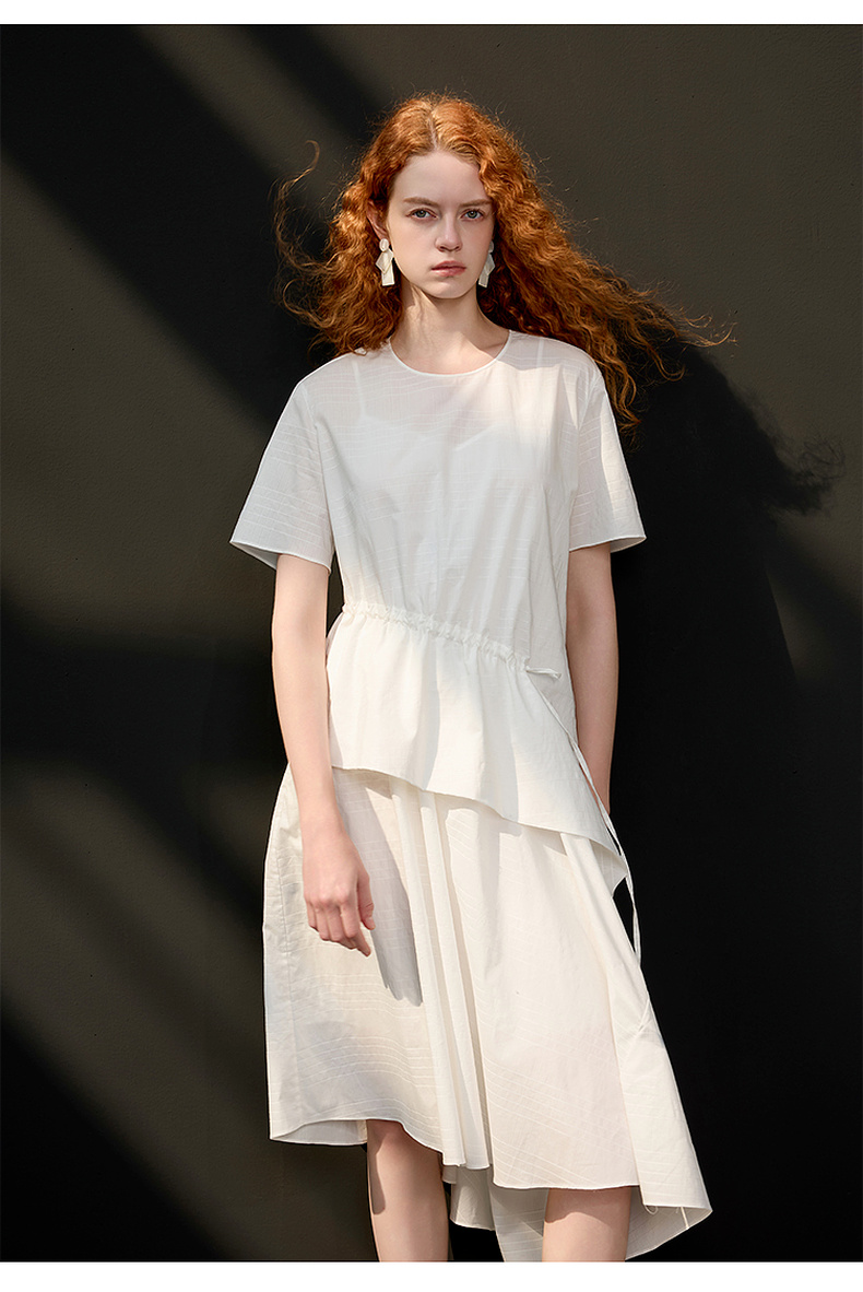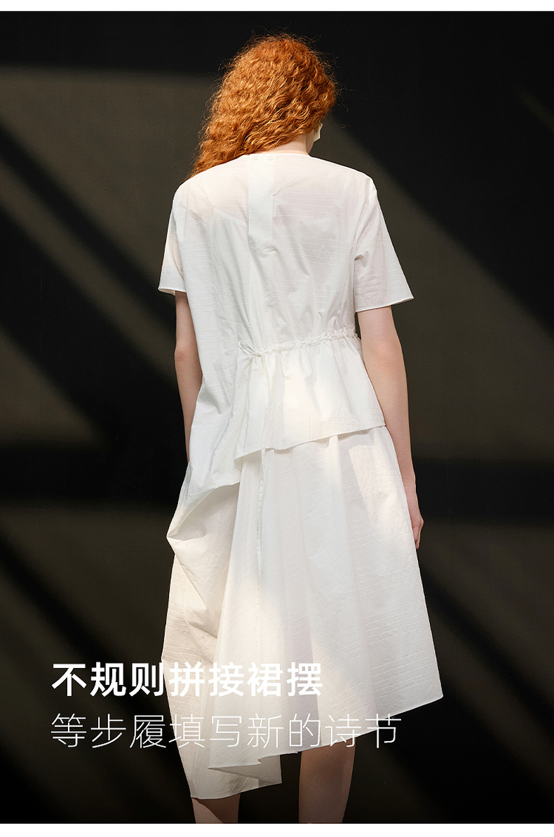 三彩2025夏季新款简约小白裙吊带裙两件套连衣裙宽松不规则S