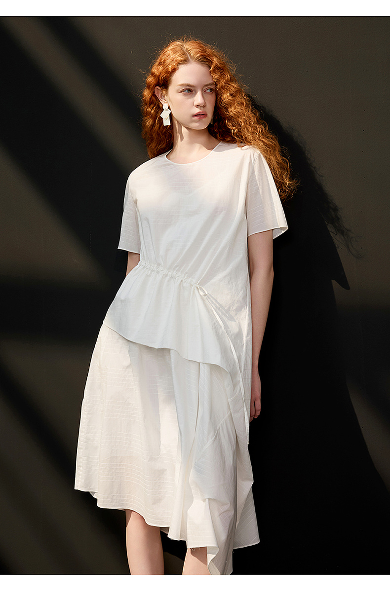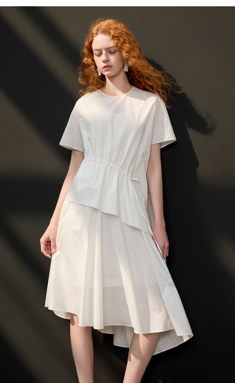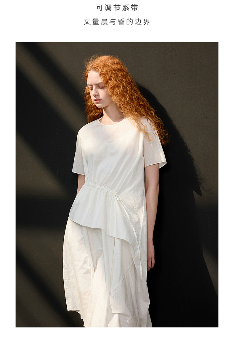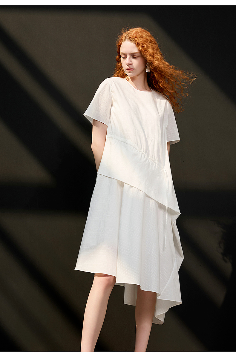 三彩2025夏季新款简约小白裙吊带裙两件套连衣裙宽松不规则S