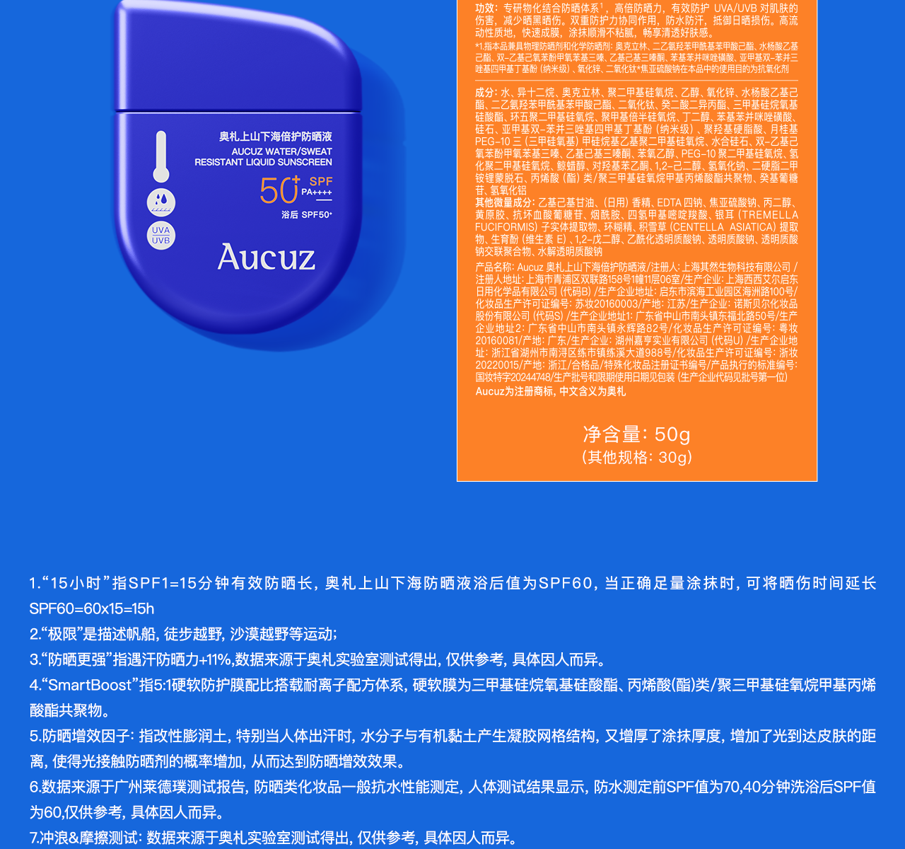 【专业户外防晒】Aucuz奥札上山下海防晒 防水防汗
