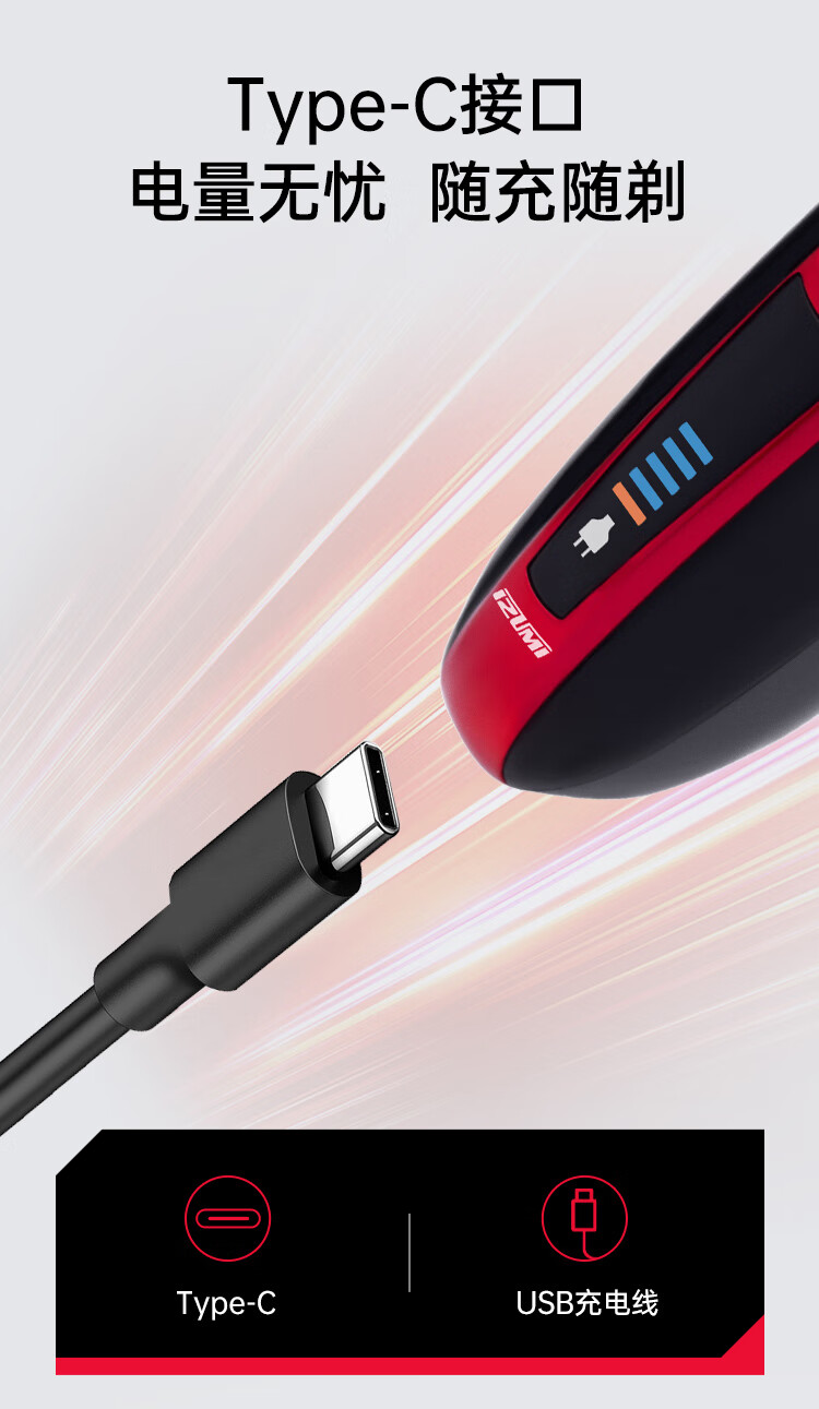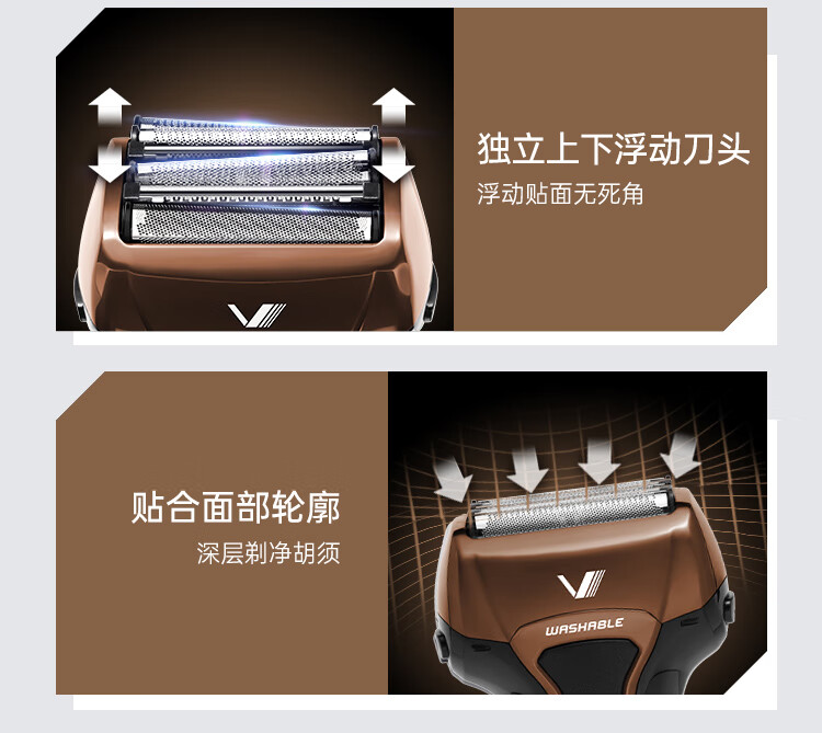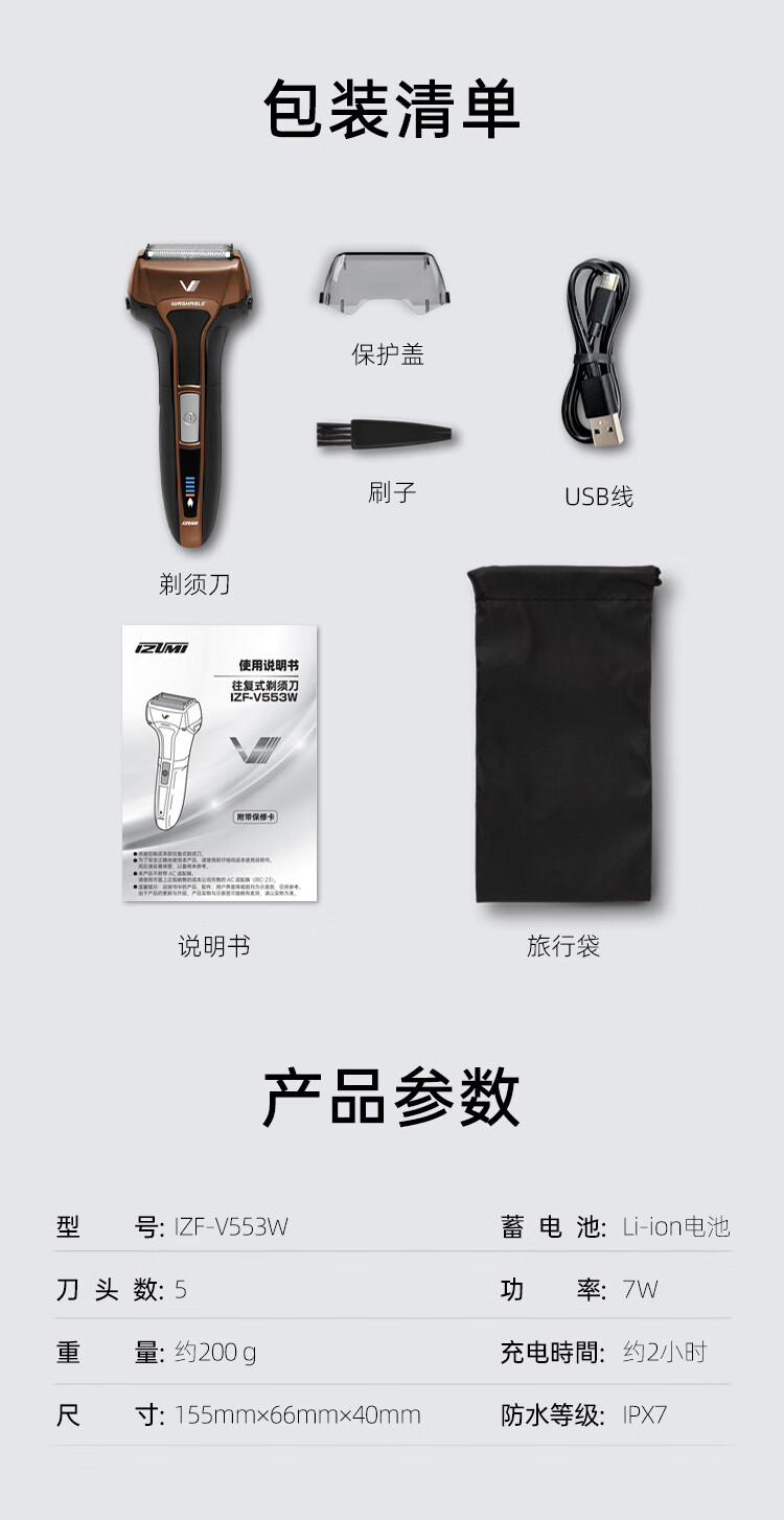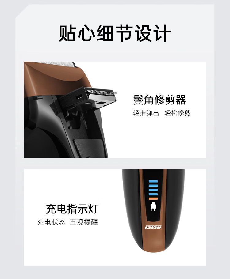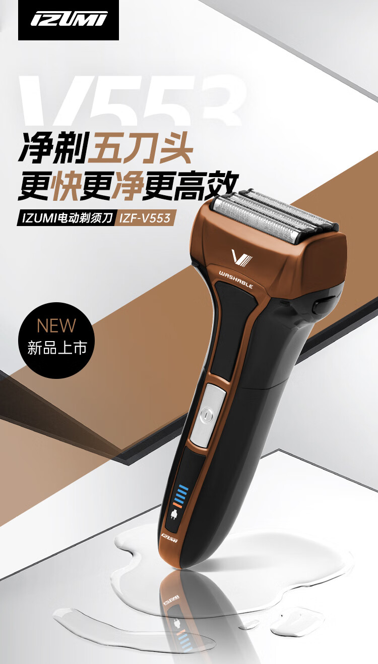 IZUMI新品泉精器 IZF-V553W-T电动剃须刀浮动5刀头 往复式多功能刮胡刀 棕色/红色_MW