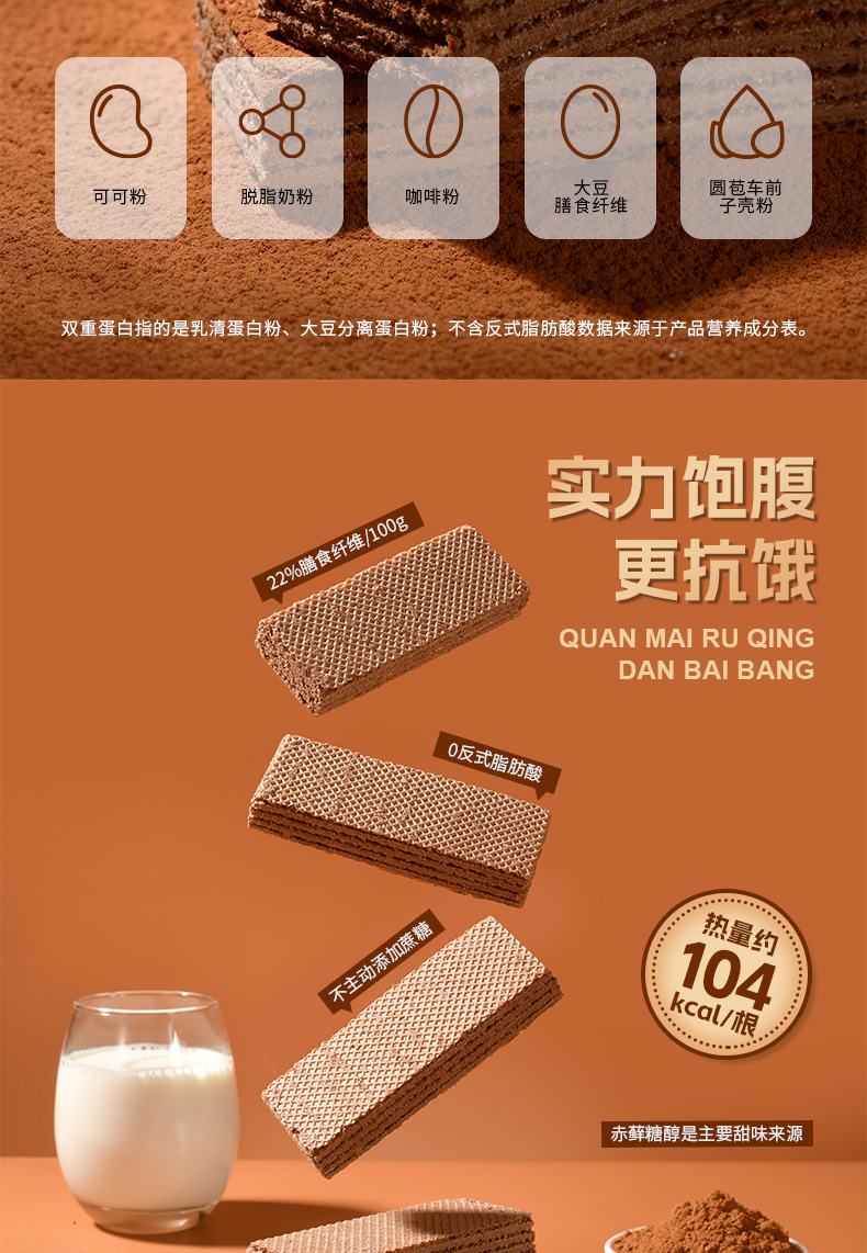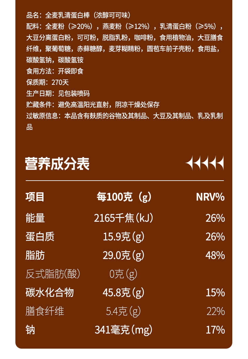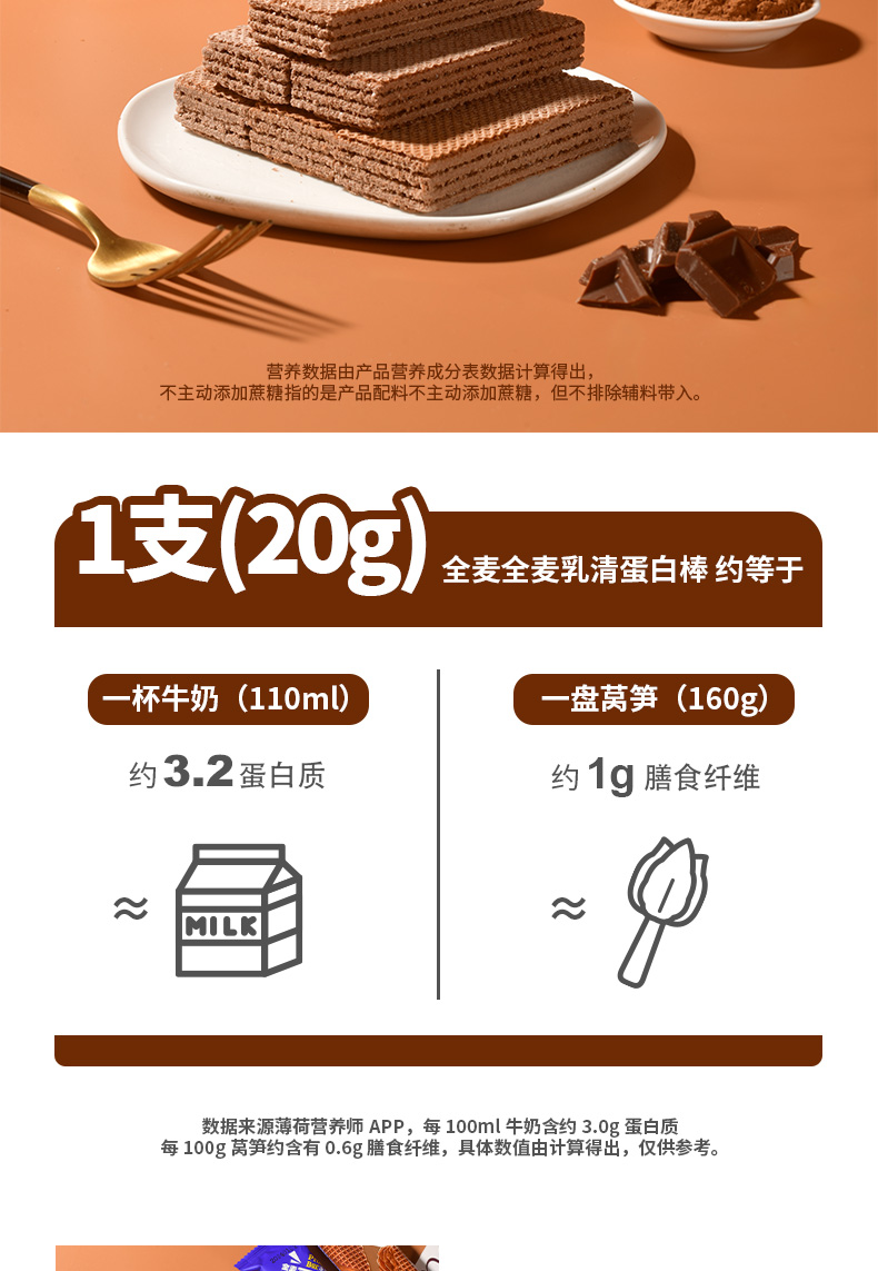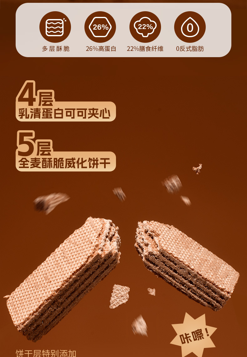 【鲨鱼菲特300-200】蛋白棒20g全麦乳清威化棒巧克力饼干代餐饱腹休闲零食