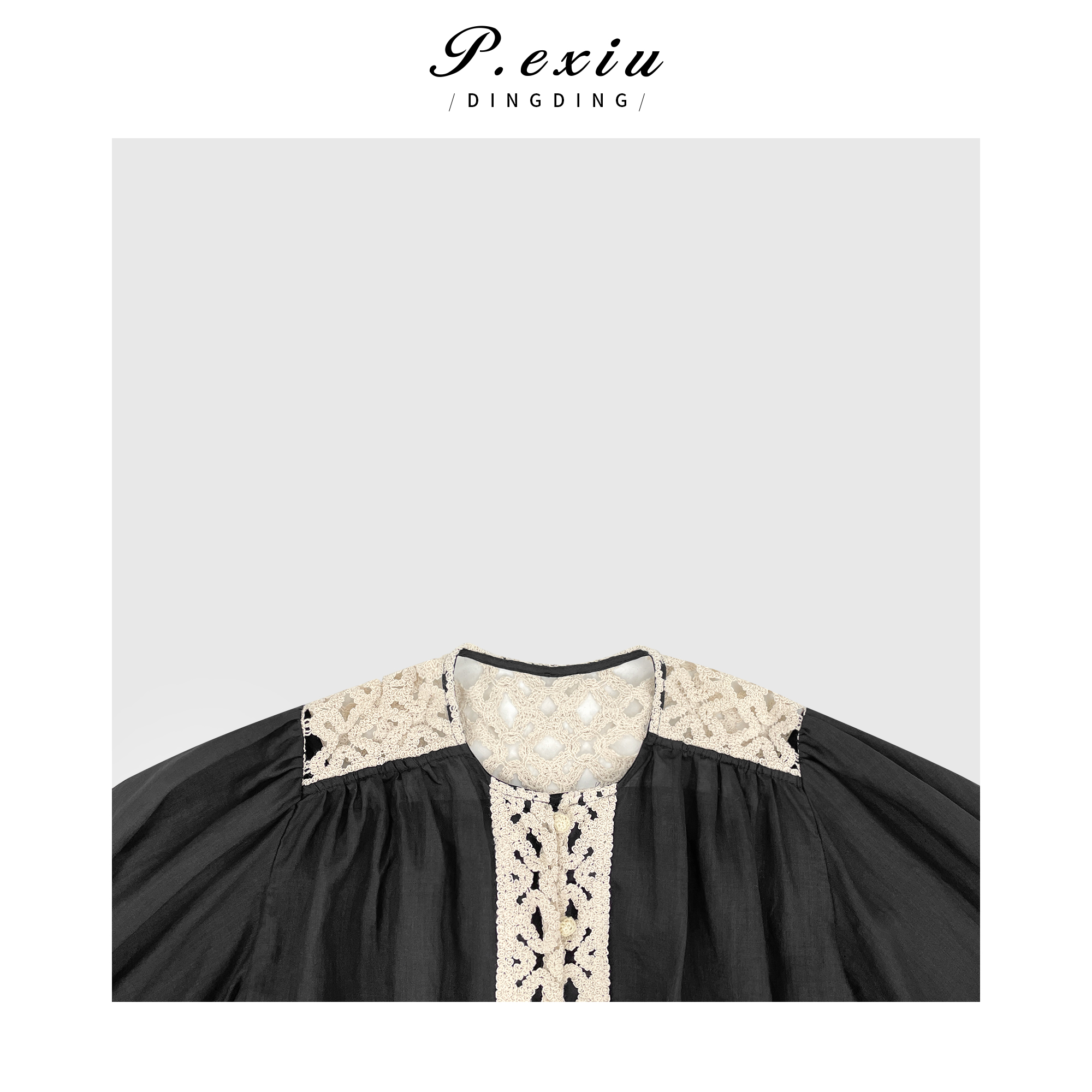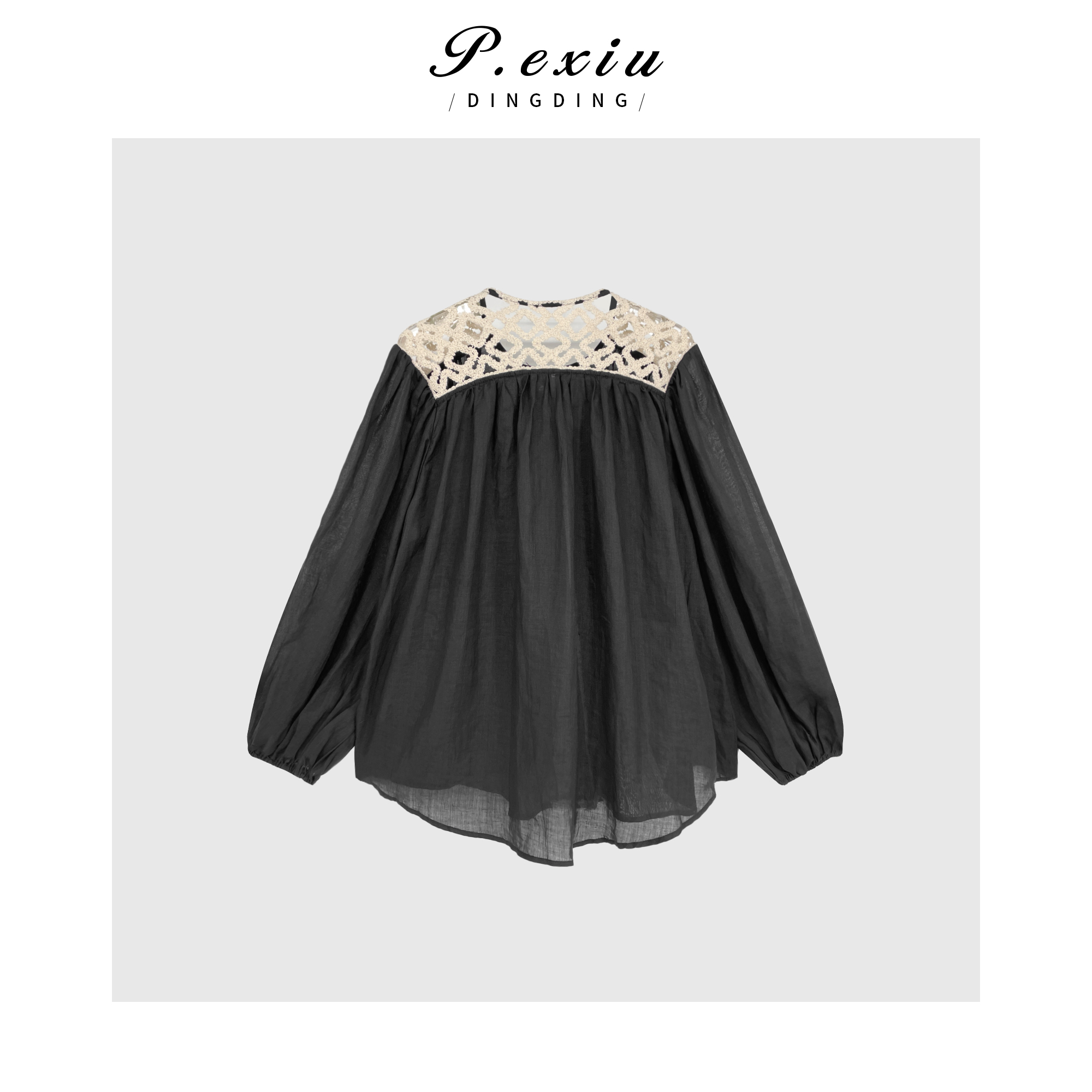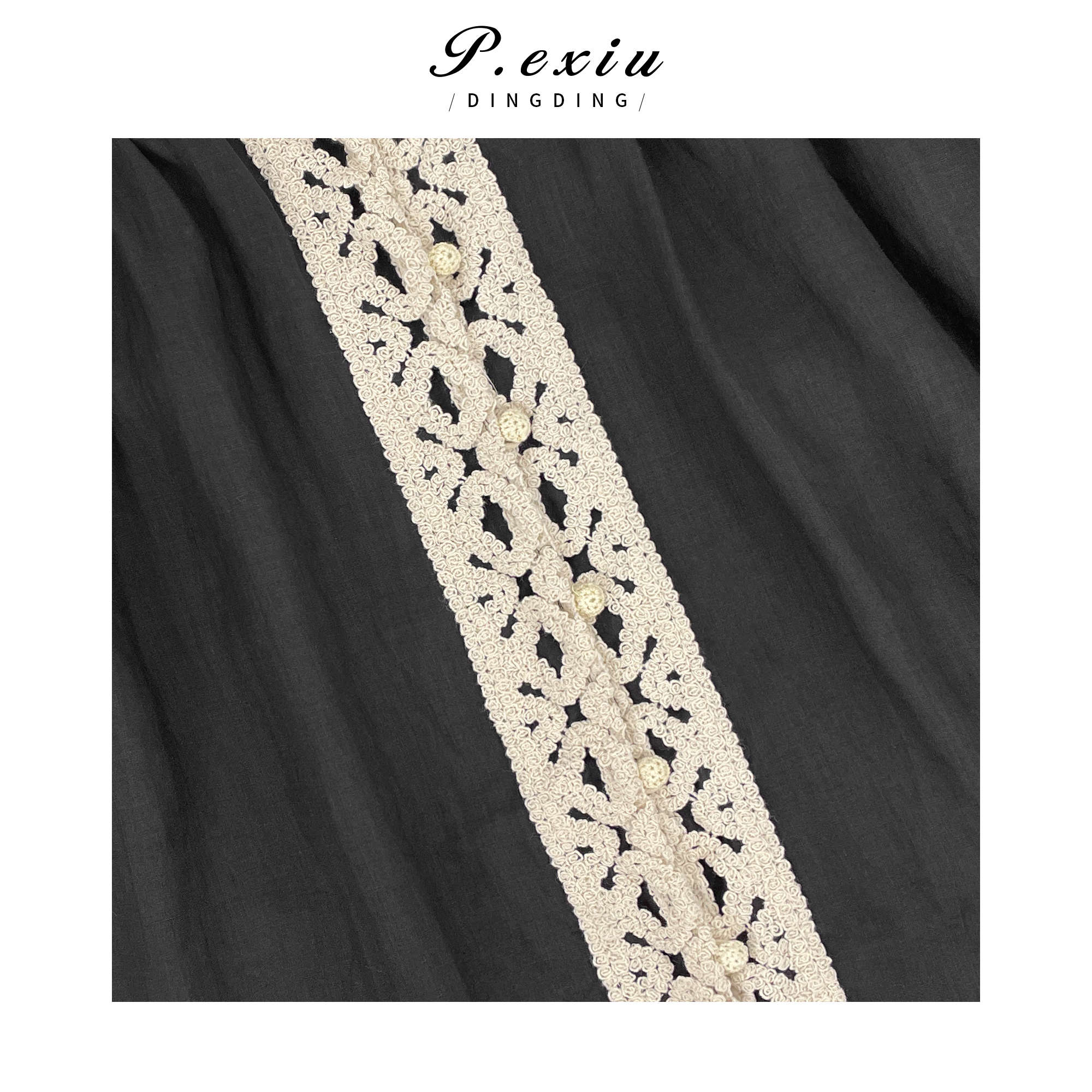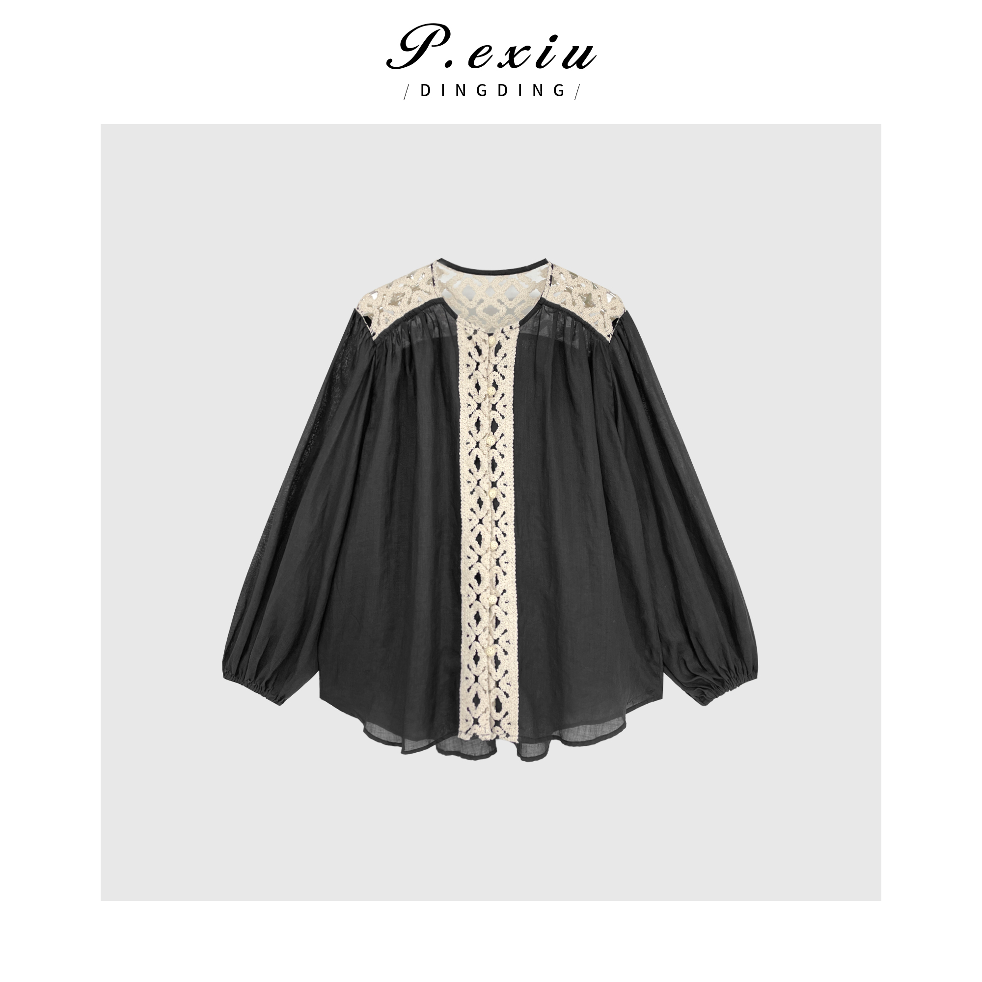 03-4潘依绣丁丁宠粉PanYiXiu/潘依绣【法颂少女】100%苎麻宫廷风优雅拼接衬衫 SH98831