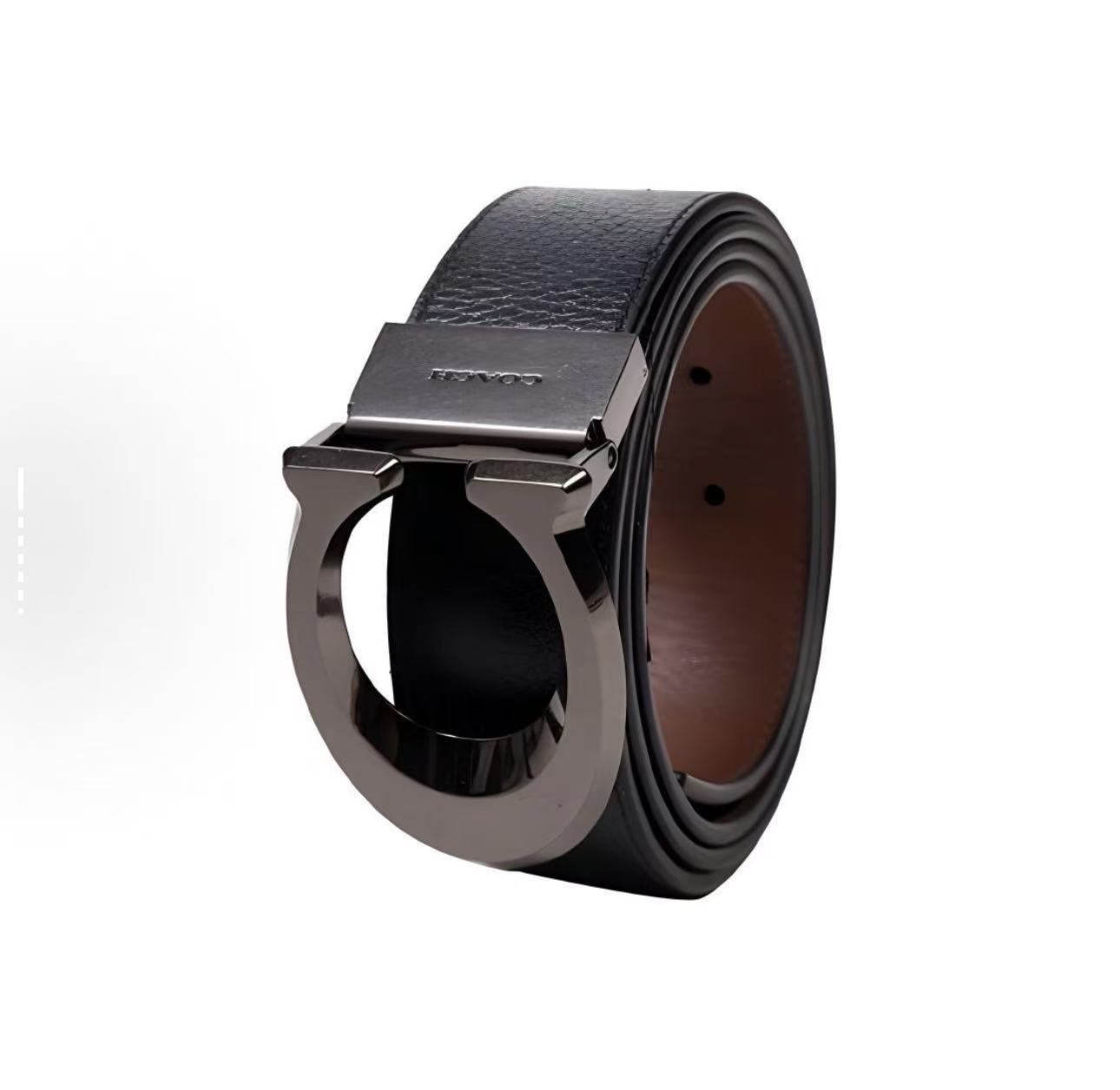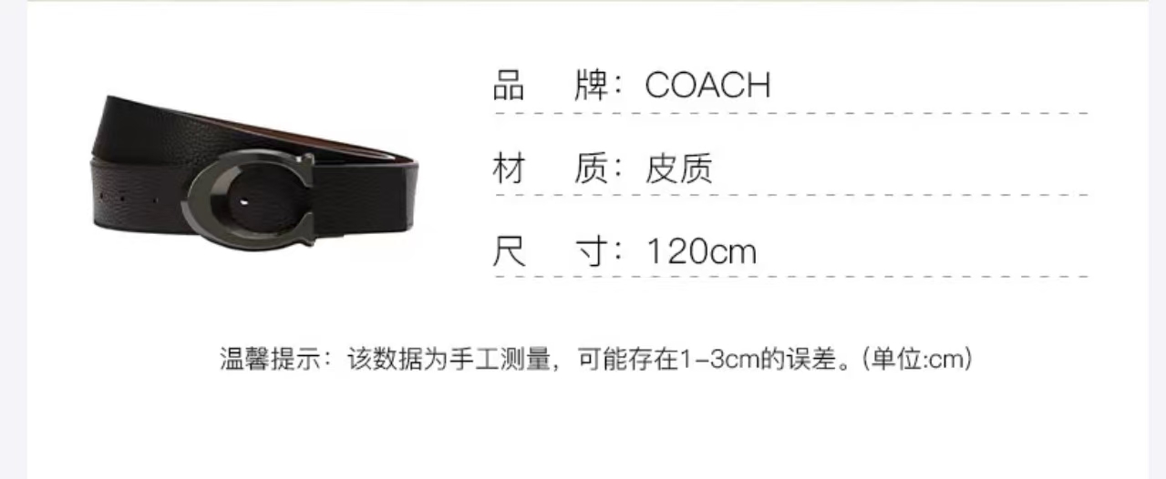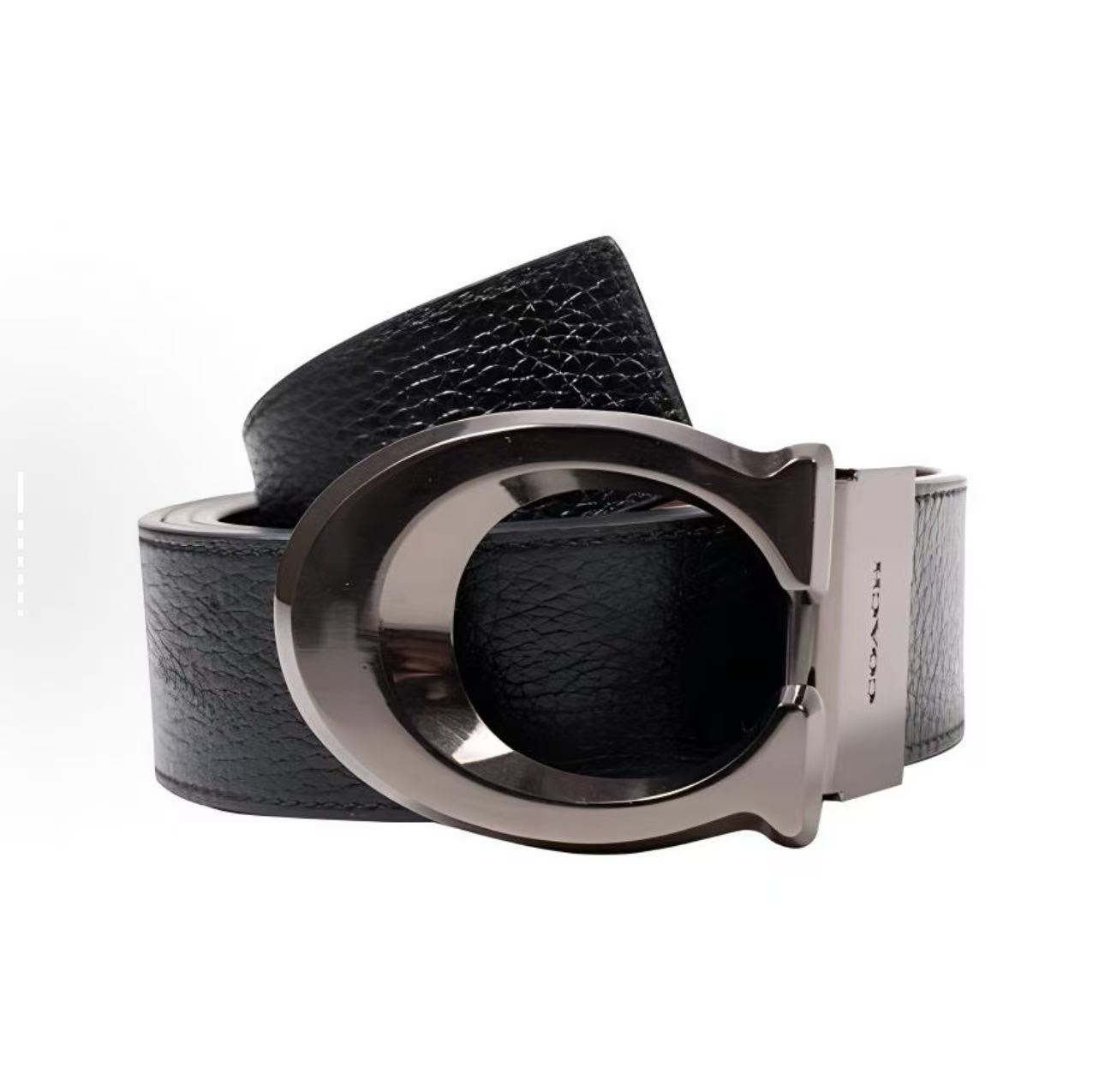 COACH 针扣大C暗扣 牛皮 皮带 男款 黑色 宽3.5cm