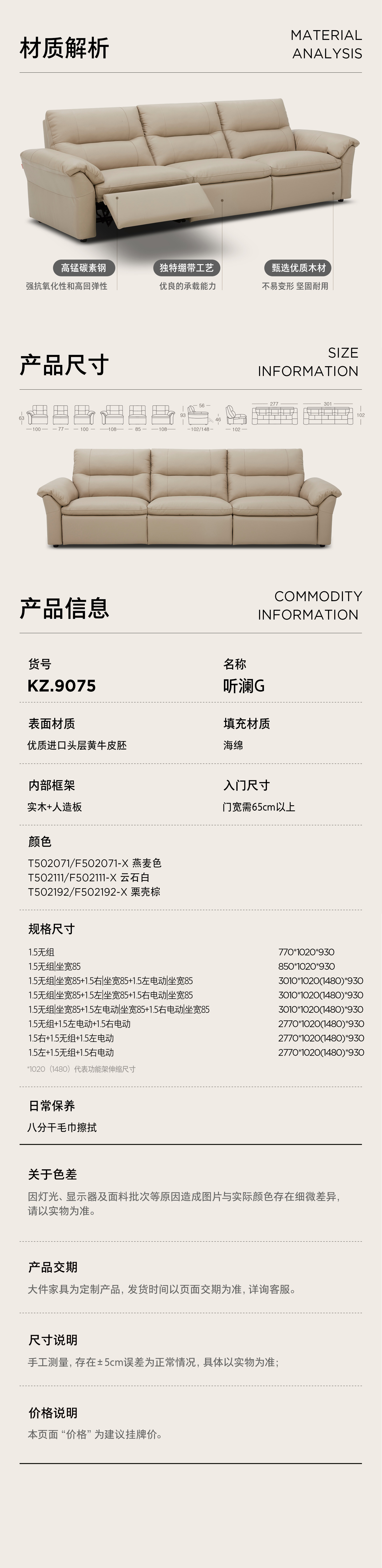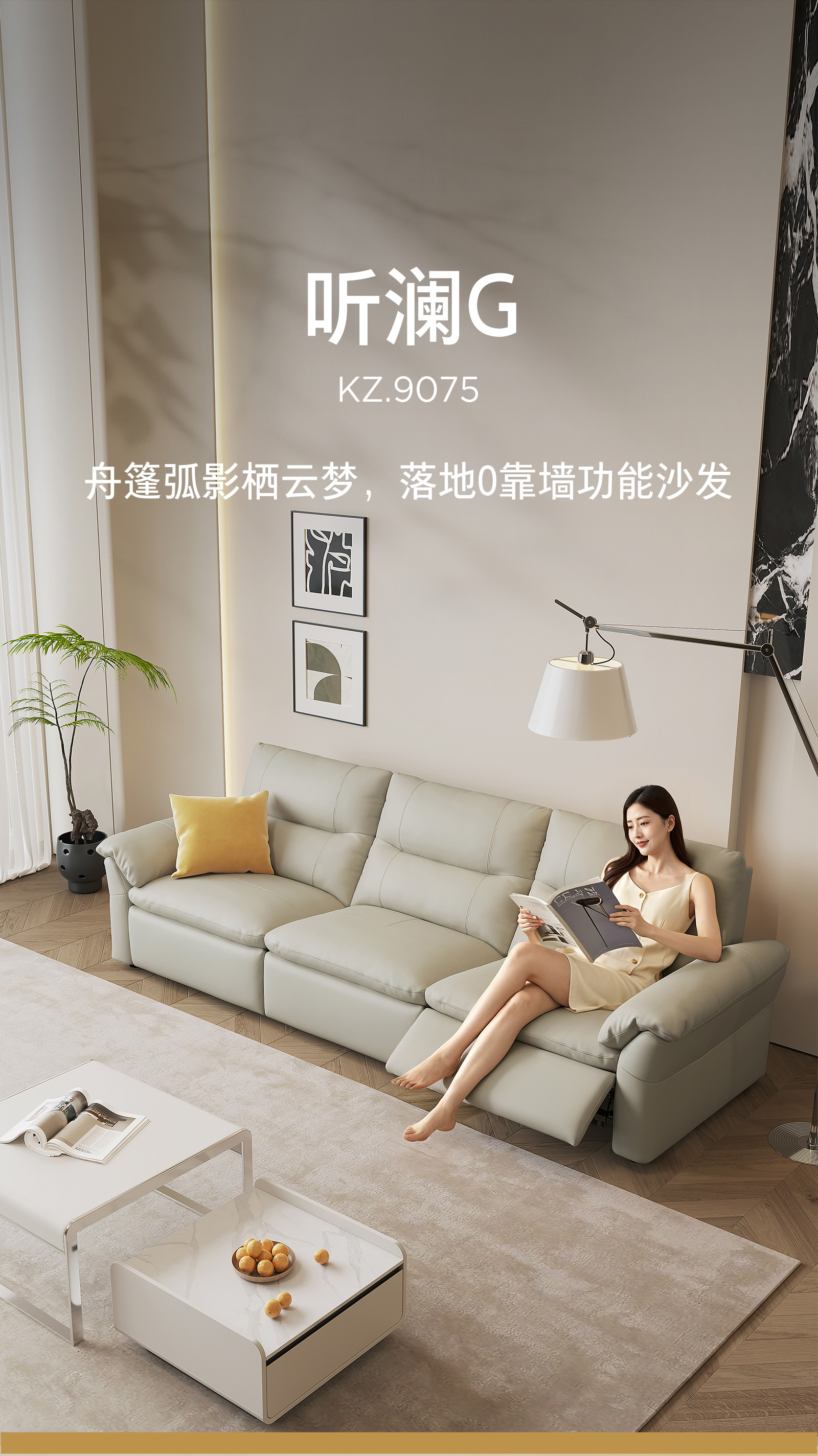 顾家家居整装 现代舒适皮艺功能沙发KZ.9075 听澜G