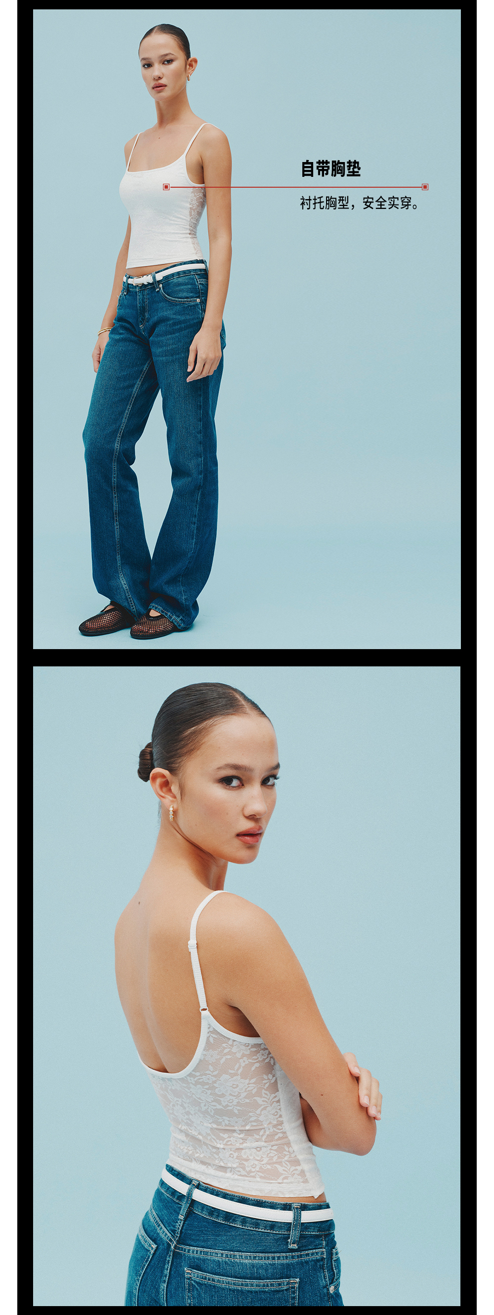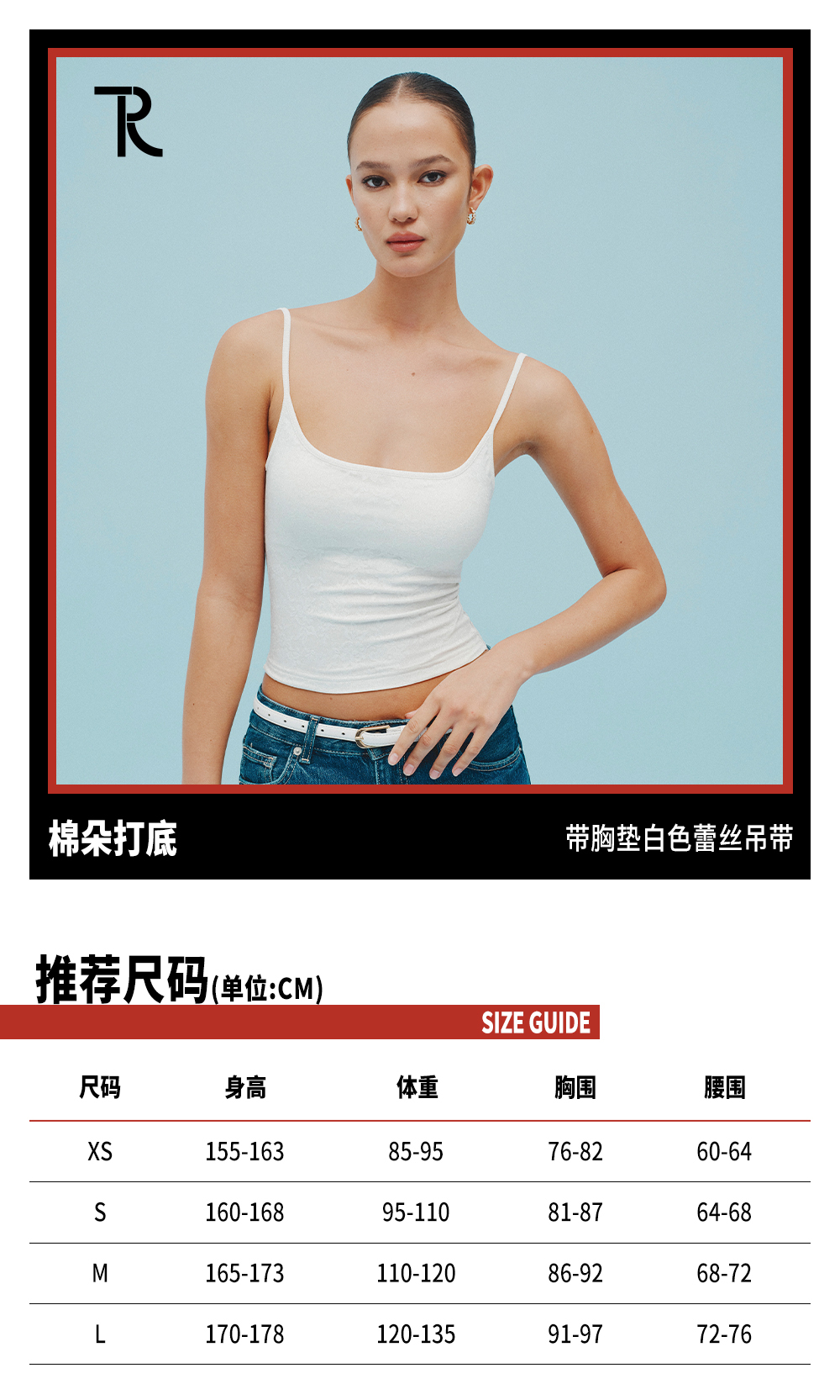 TR她热 棉朵打底 白色弹力蕾丝带胸垫基础款百搭显瘦修身吊带背心 L预售