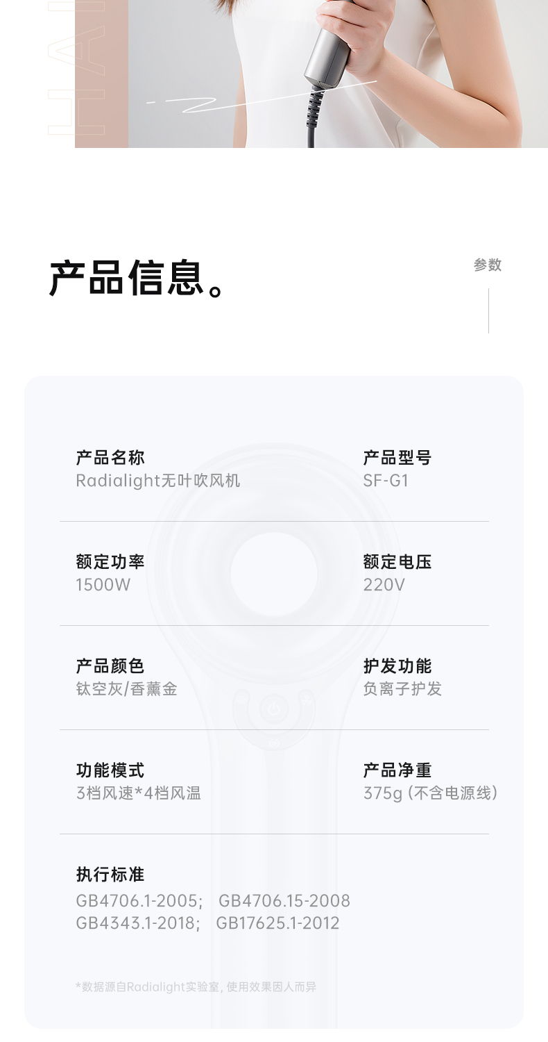 但负离子功并非radialight独有,打开某宝几乎每个品牌的吹风机都带有负离子功能,不过每个品牌都有,证明负离子是实打实的有作用。