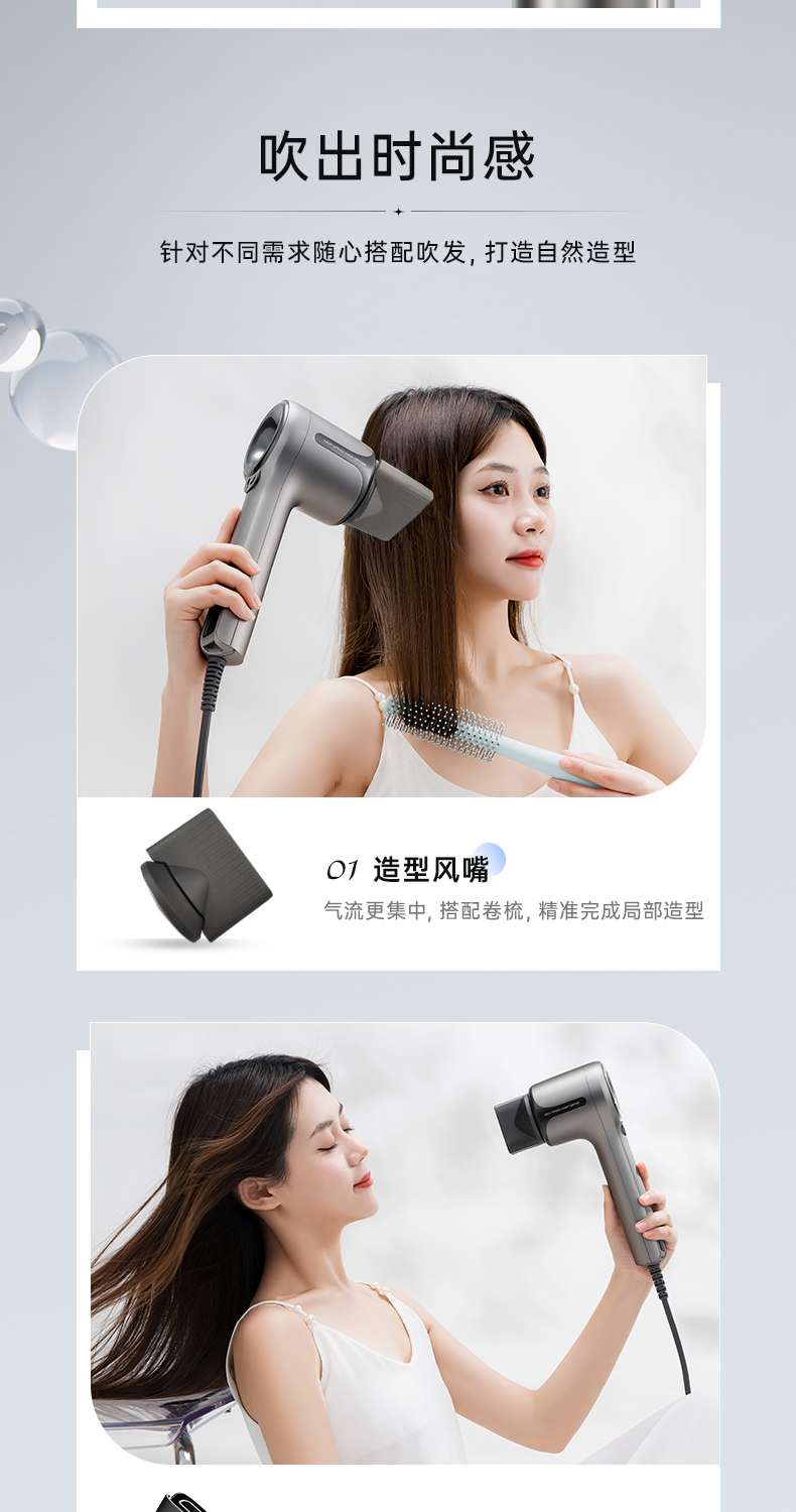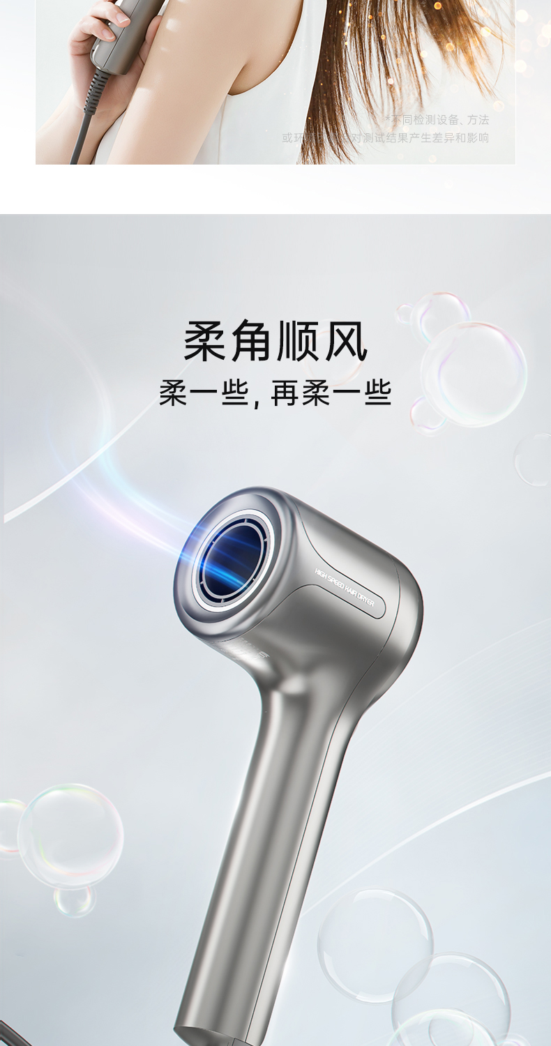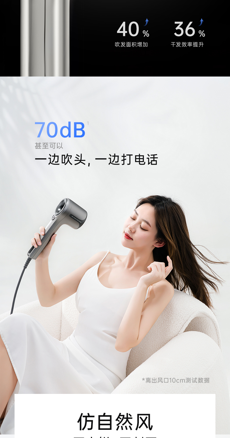 即便是发质偏油的女生,吹起来干的也快,不到10分钟还原头发自然、柔顺、蓬松的状态。