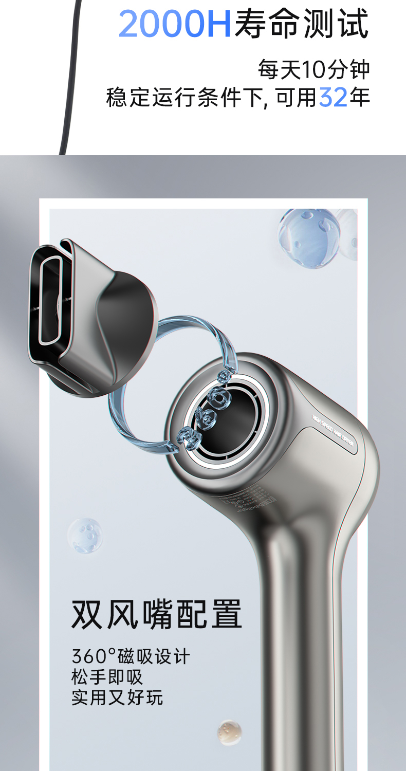 ✅磁吸设计,风嘴轻松切换,凹造型一点都不费劲
