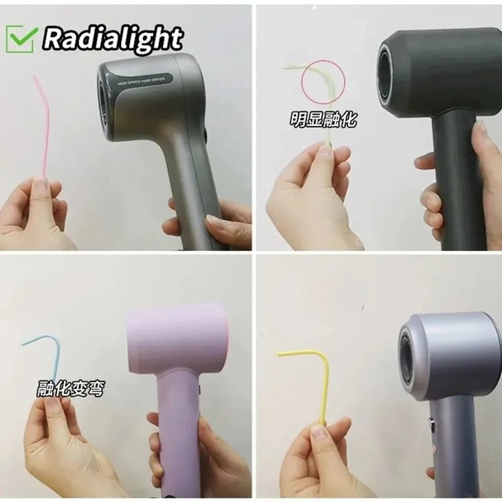 这充分说明我们这台电吹风(Radialight)的温控对我们的头发更友好。