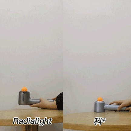 Radialight这款吹起来覆盖面更广,吹头过程中,不用费老大劲举远,radialight的轻量机身,即便举远它也不是特别费力。