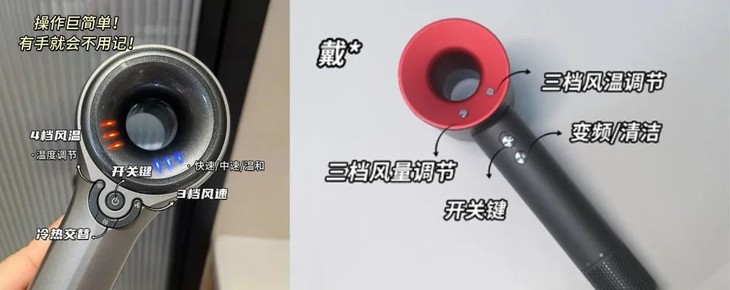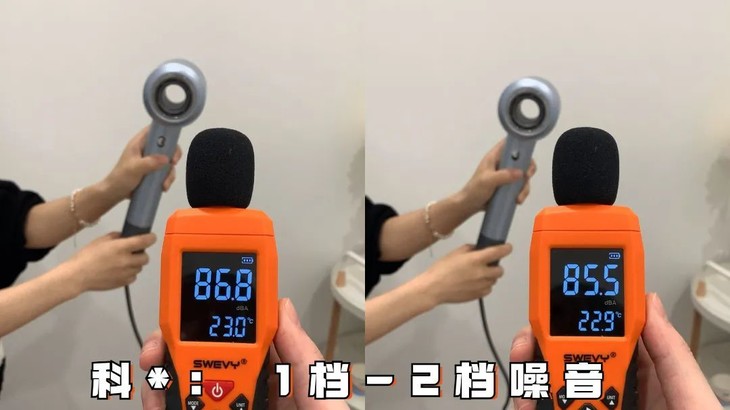 对比作为高速吹风机领头羊的戴S,两款吹风机转速相同,