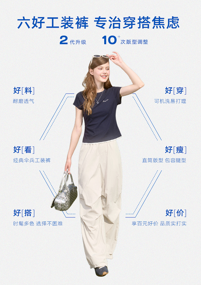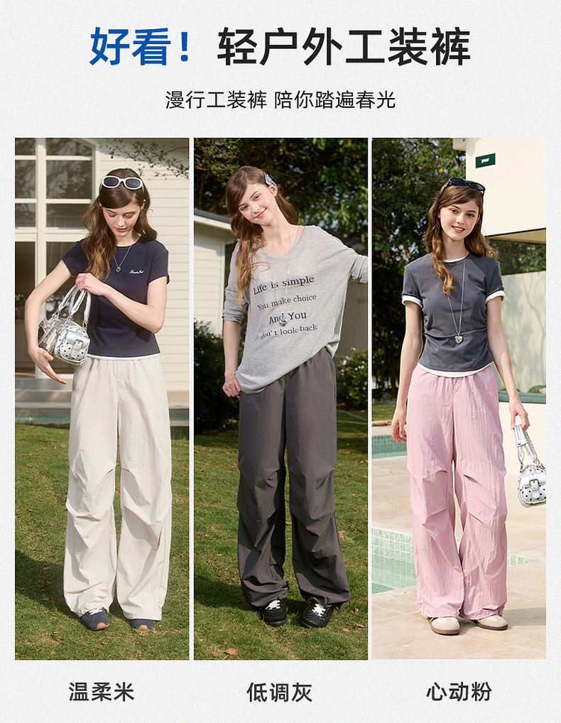 【六好漫行工装裤】三彩2026春季新款高腰宽松长裤休闲裤伞兵裤Z