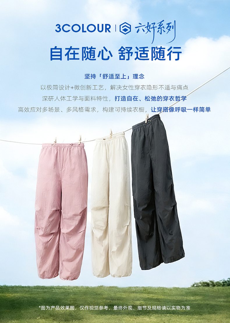 - 3COLOUR,一直致力于探索自我与时尚审美,用穿衣哲学折射生活主张,在流动中探寻恒久。