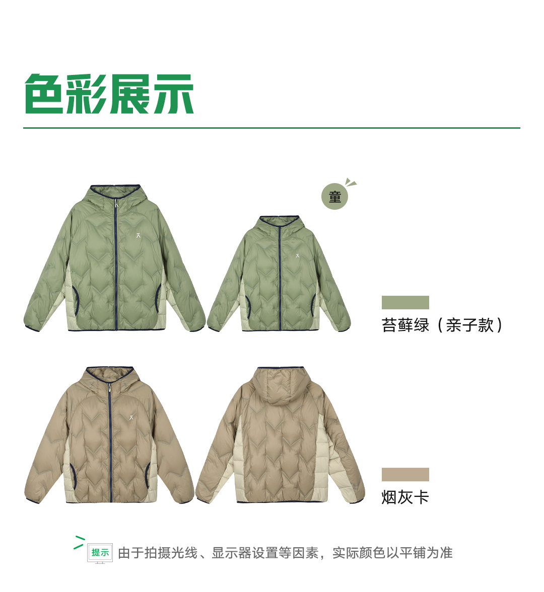 【品牌直发】ACMEITEM爱棵米 户外亲子轻量压胶羽绒服防泼水连帽拼接外套男女GAF3110337G