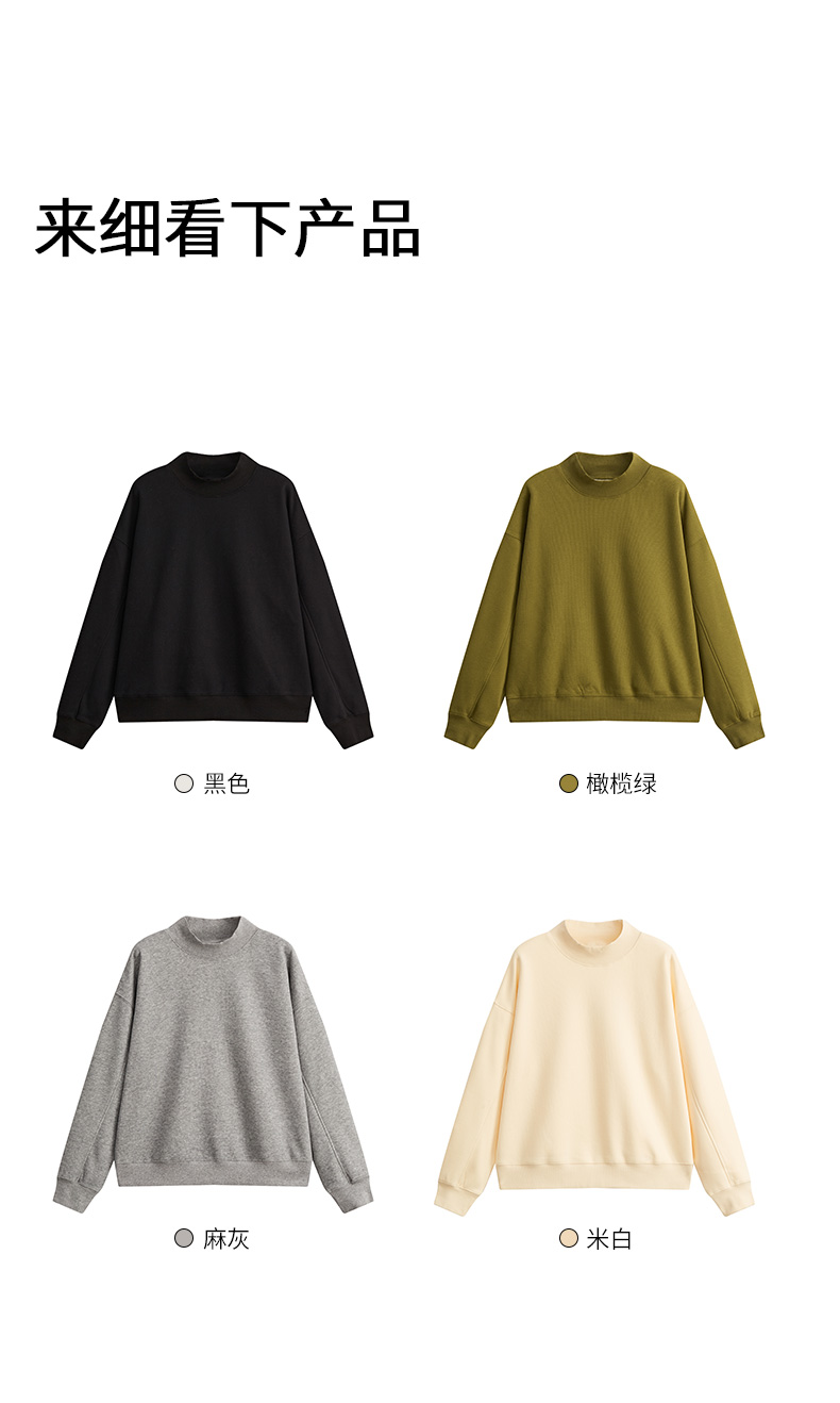 【门店同款】马恩MAXNEW女装半高领打底衫卫衣秋冬季纯色加绒保暖
