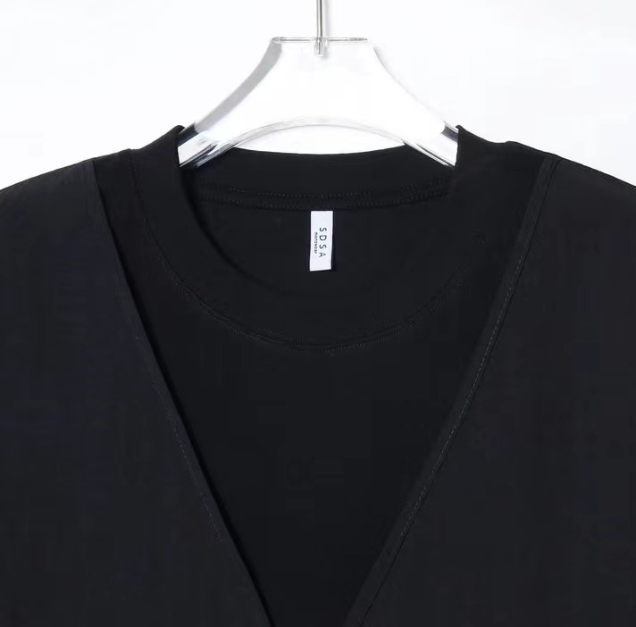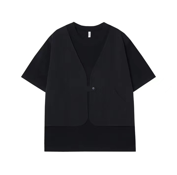 T594夏季新品男士短袖T恤宽松气质时尚百搭半袖小众假两件春夏休闲