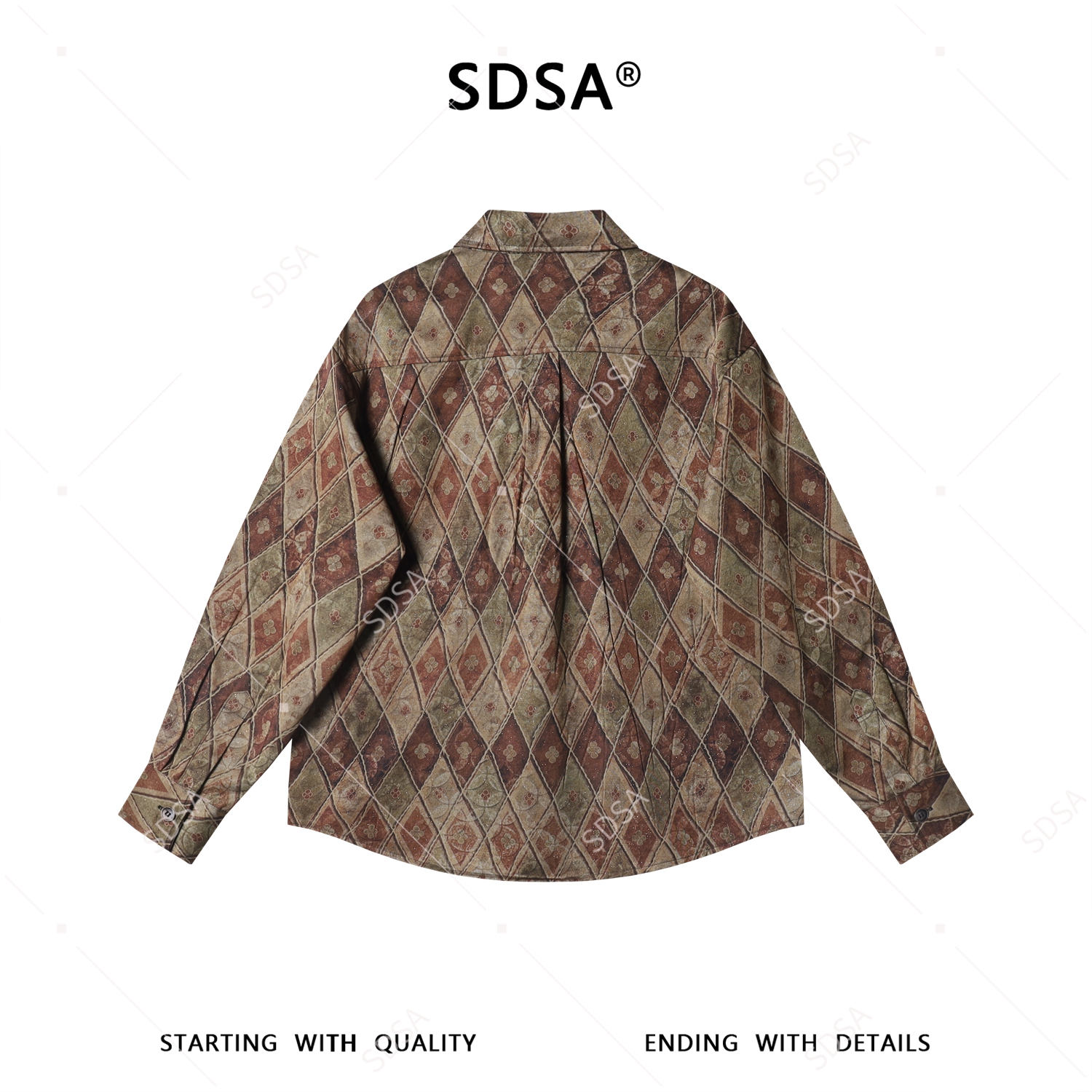 SDSA男装2026新款高贵轻奢美式复古撞色菱形设计长袖衬衫百搭简约