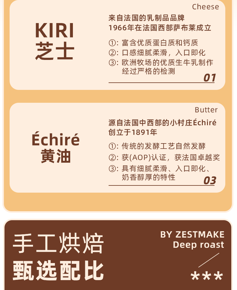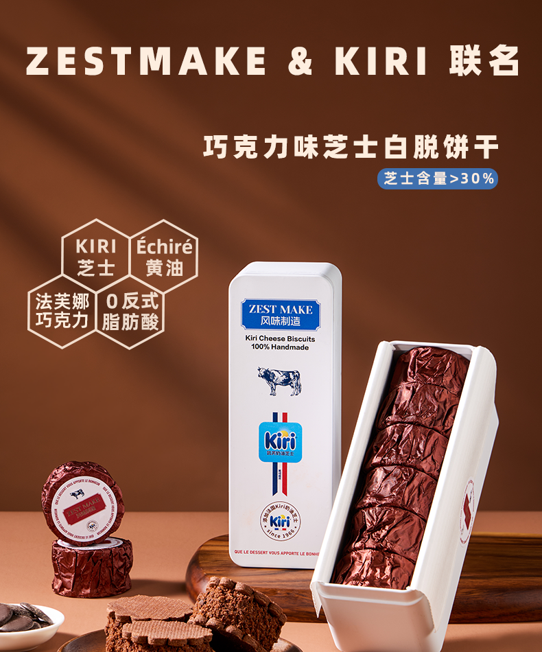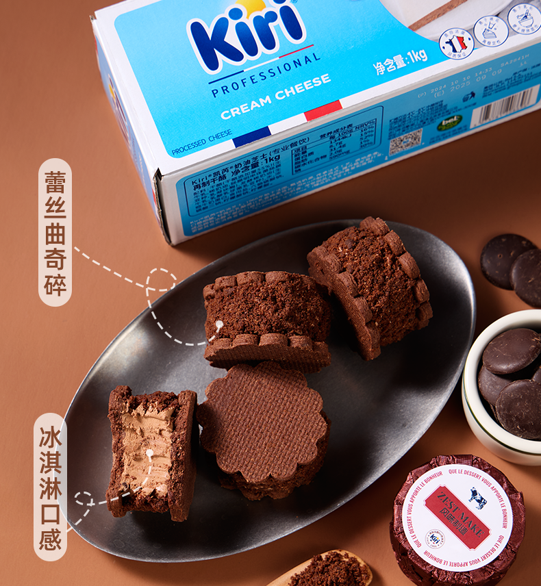 【严格控价】【顺丰发货】ZESTMAKE & Kiri联名芝士原味巧克力芝士白脱饼干乳酪夹心艾许黄油 冻啃