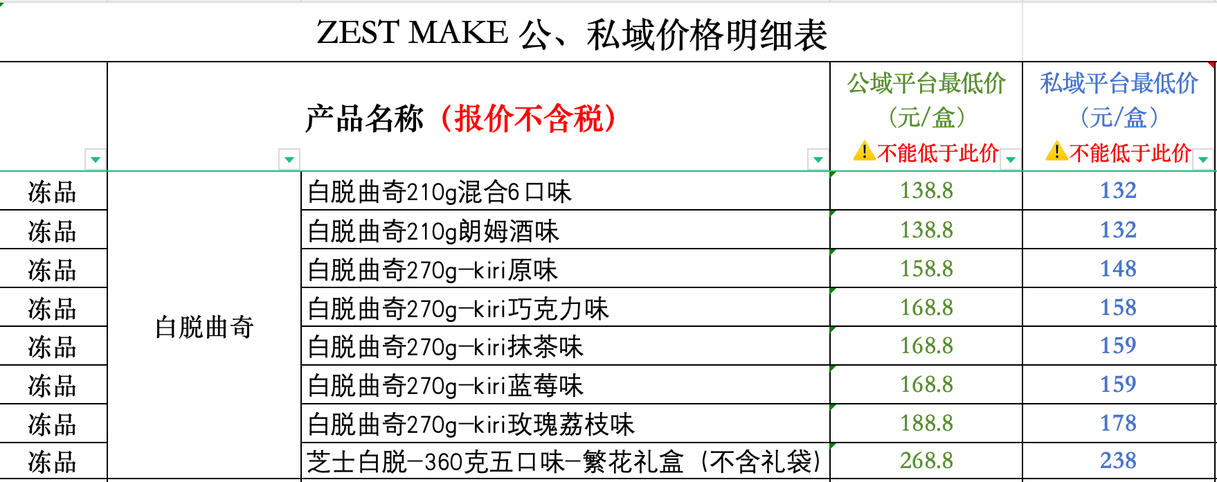公域控价不得低于158,私域不得低于九折,公司不定期巡店,望遵守