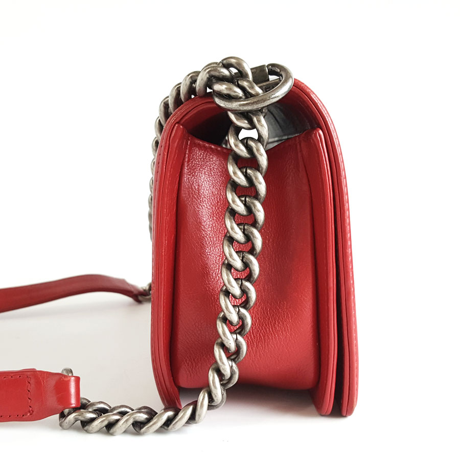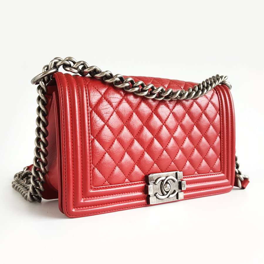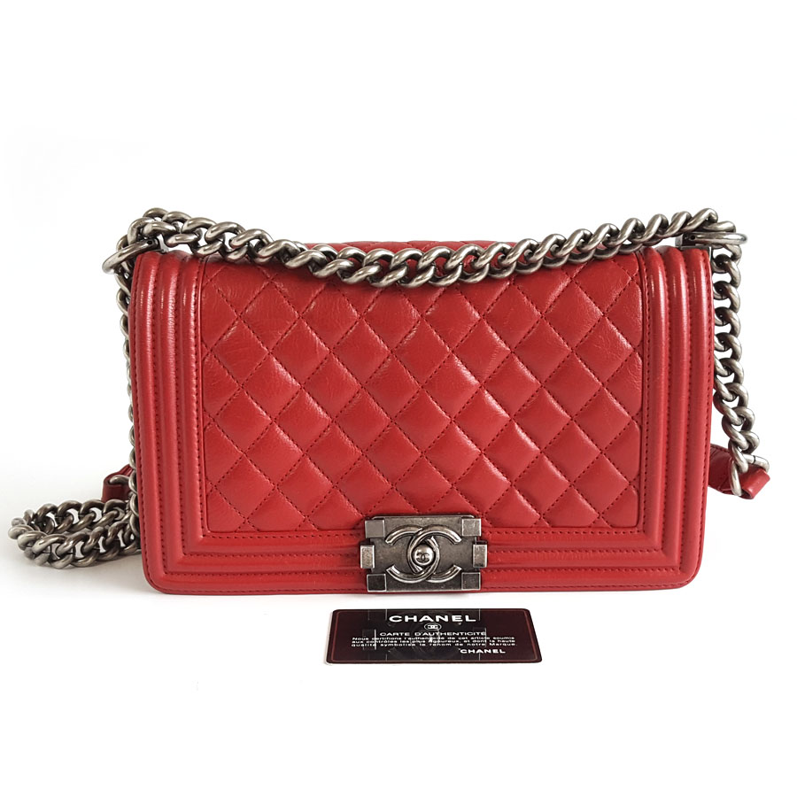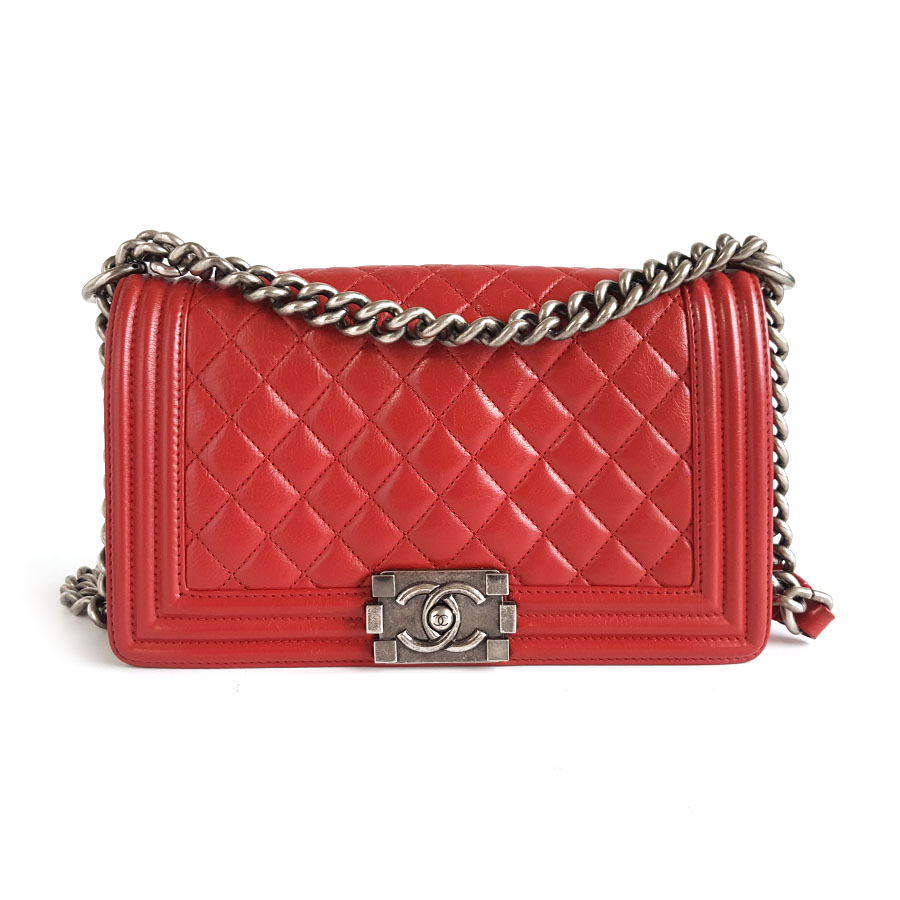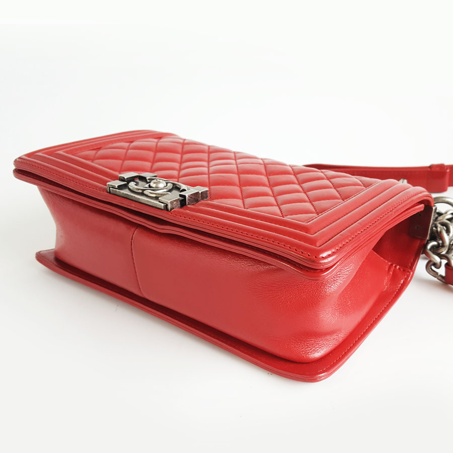 【95新】CHANEL香奈儿Leboy A67086 Y04167 96303中号红色银扣Leboy链条包单肩斜挎包女士270925TJ03现售价:10000