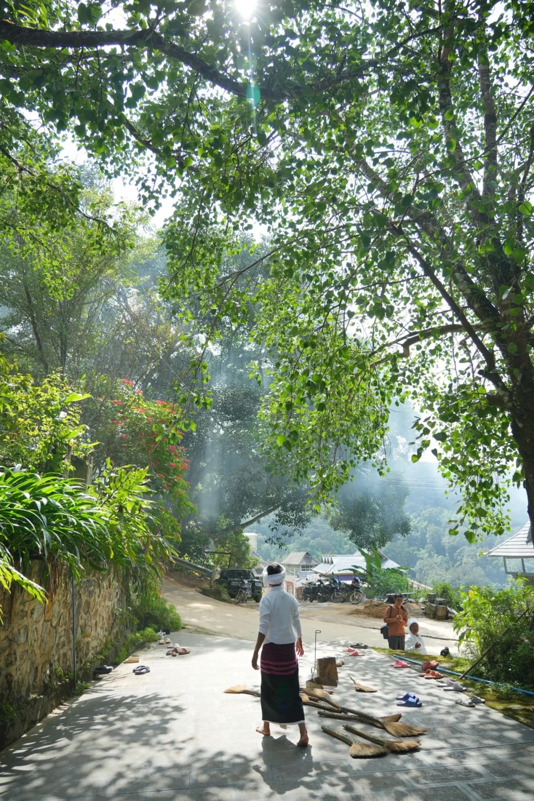 这里的独树成林是寨里的神树,树大到一张图很难框住全貌,非常壮观,比起打洛口岸的"独树成林景区"及景迈山的千年大榕树都毫不逊色。