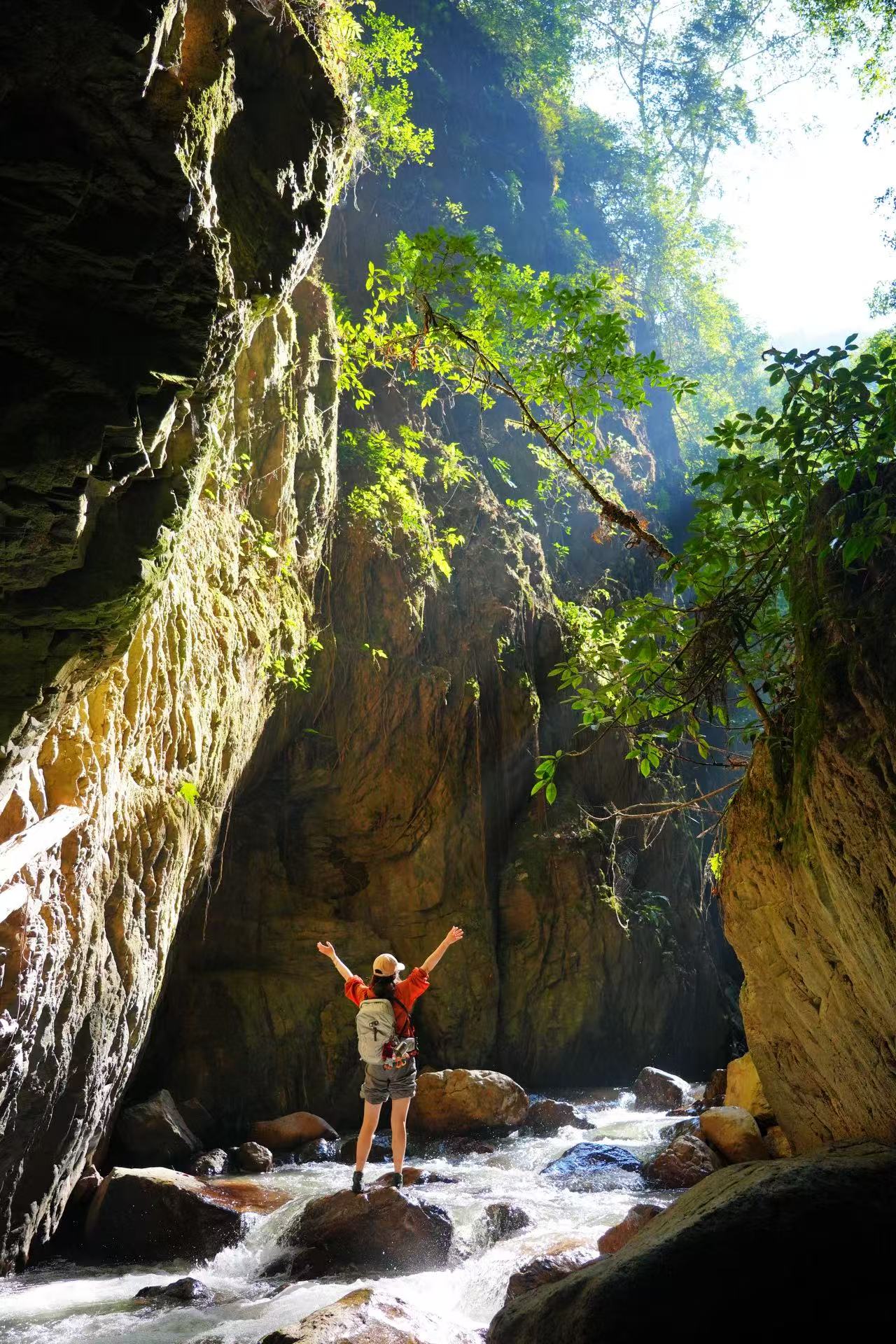 寨子下面,树木郁郁葱葱,两条清澈蜿蜒的河穿流而过,我们将沿着河流溯溪而上,穿过壮观的一线天峡谷,探寻藏于雨林深处的秘境瀑布。