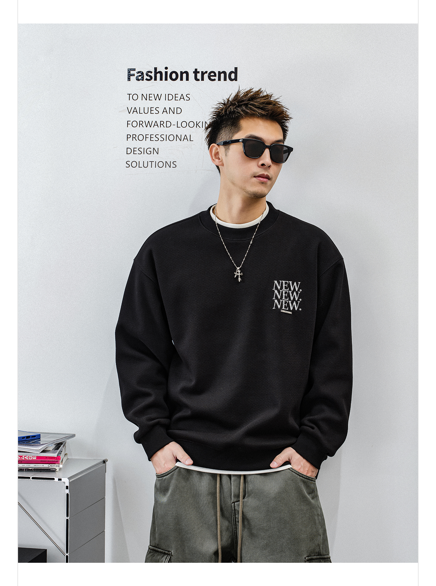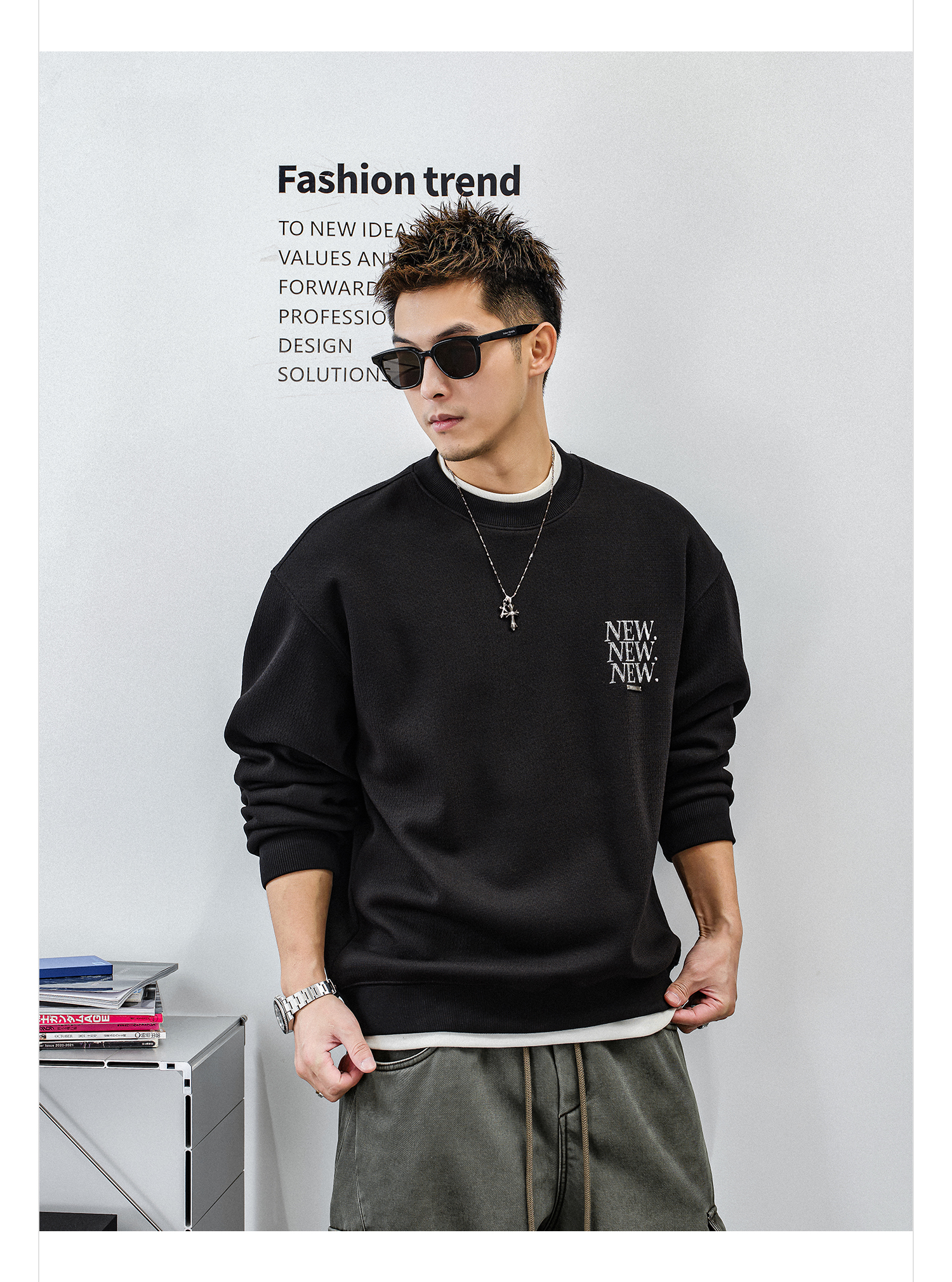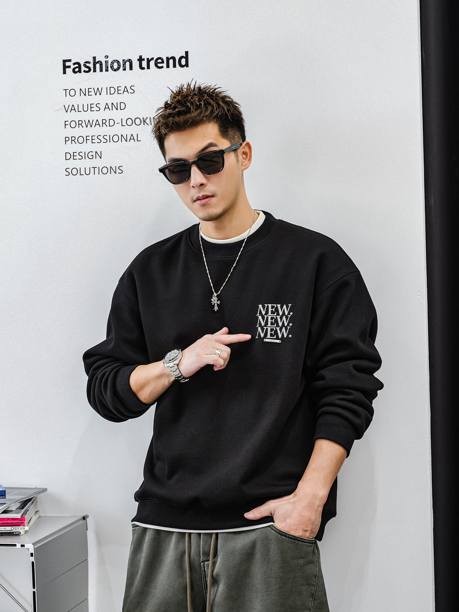 徐太浪【时尚字母 帅气印花】加绒卫衣男秋冬款大码内搭打底上衣
