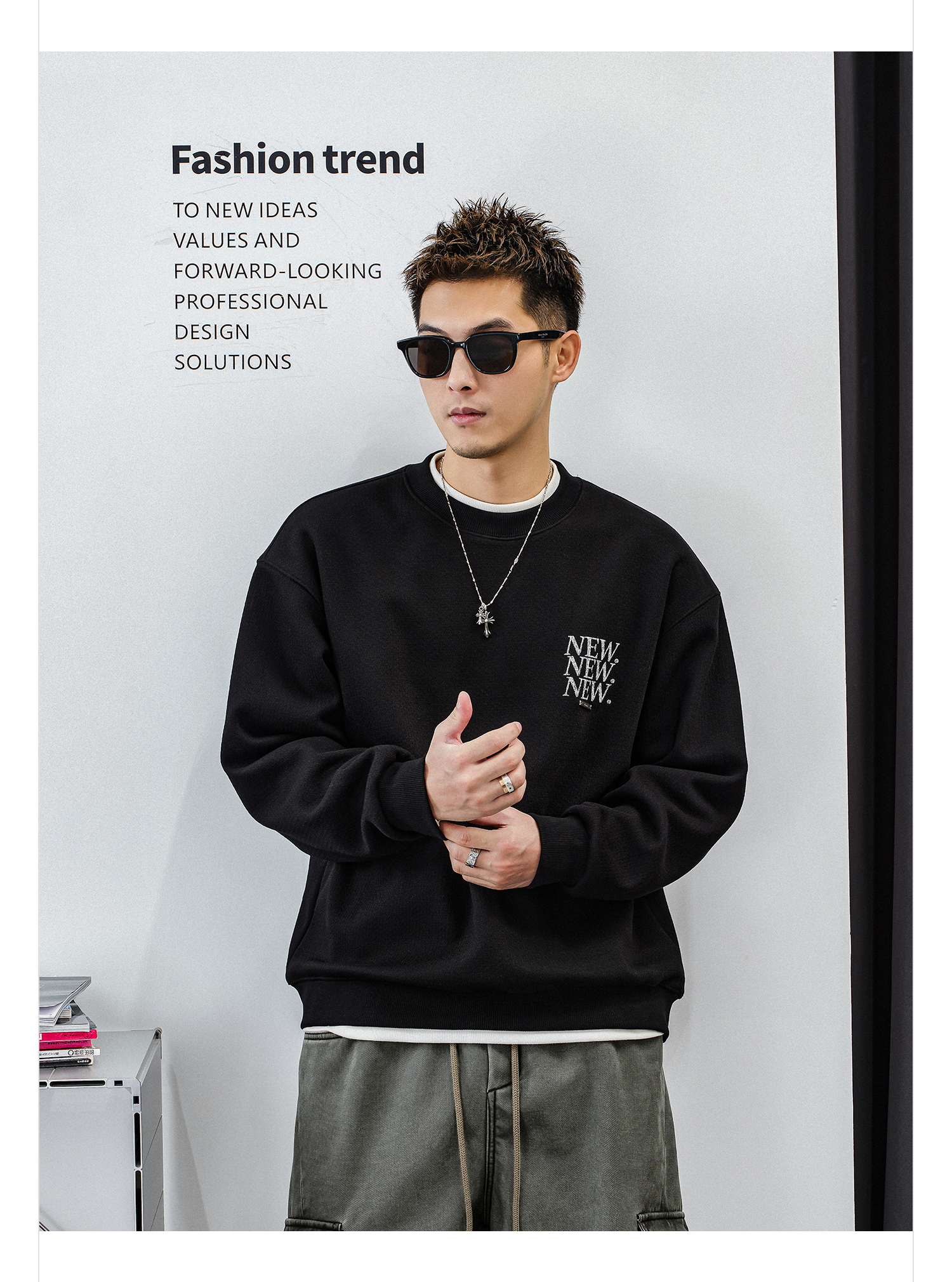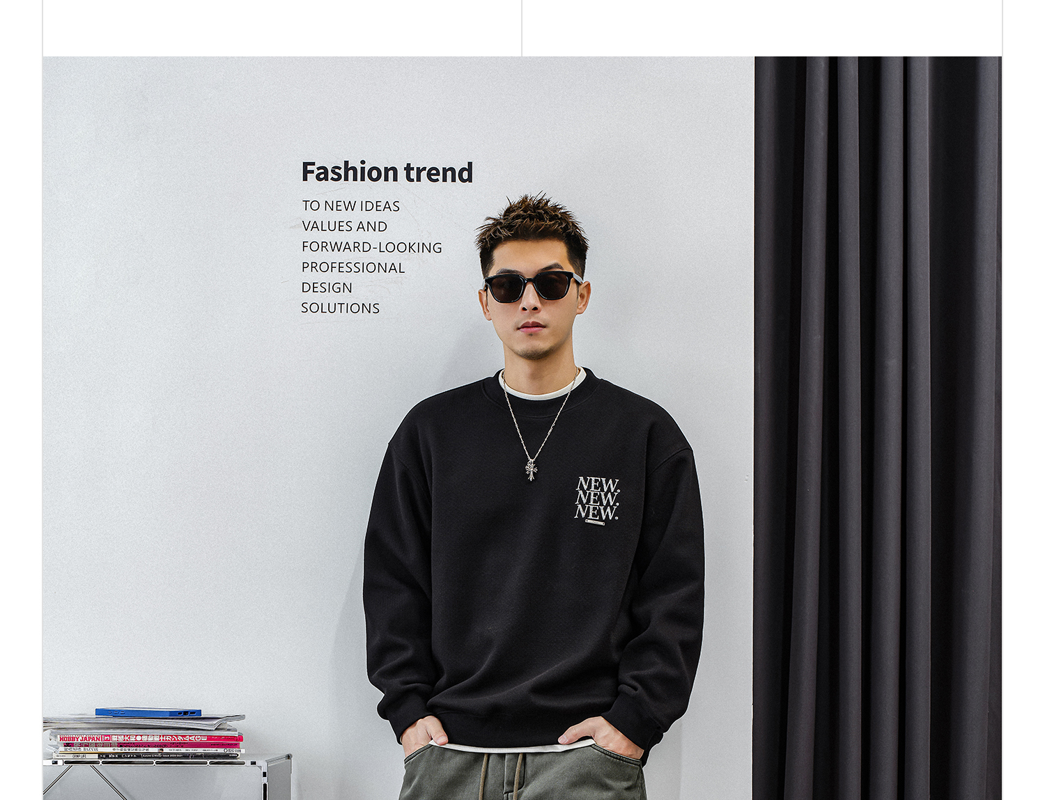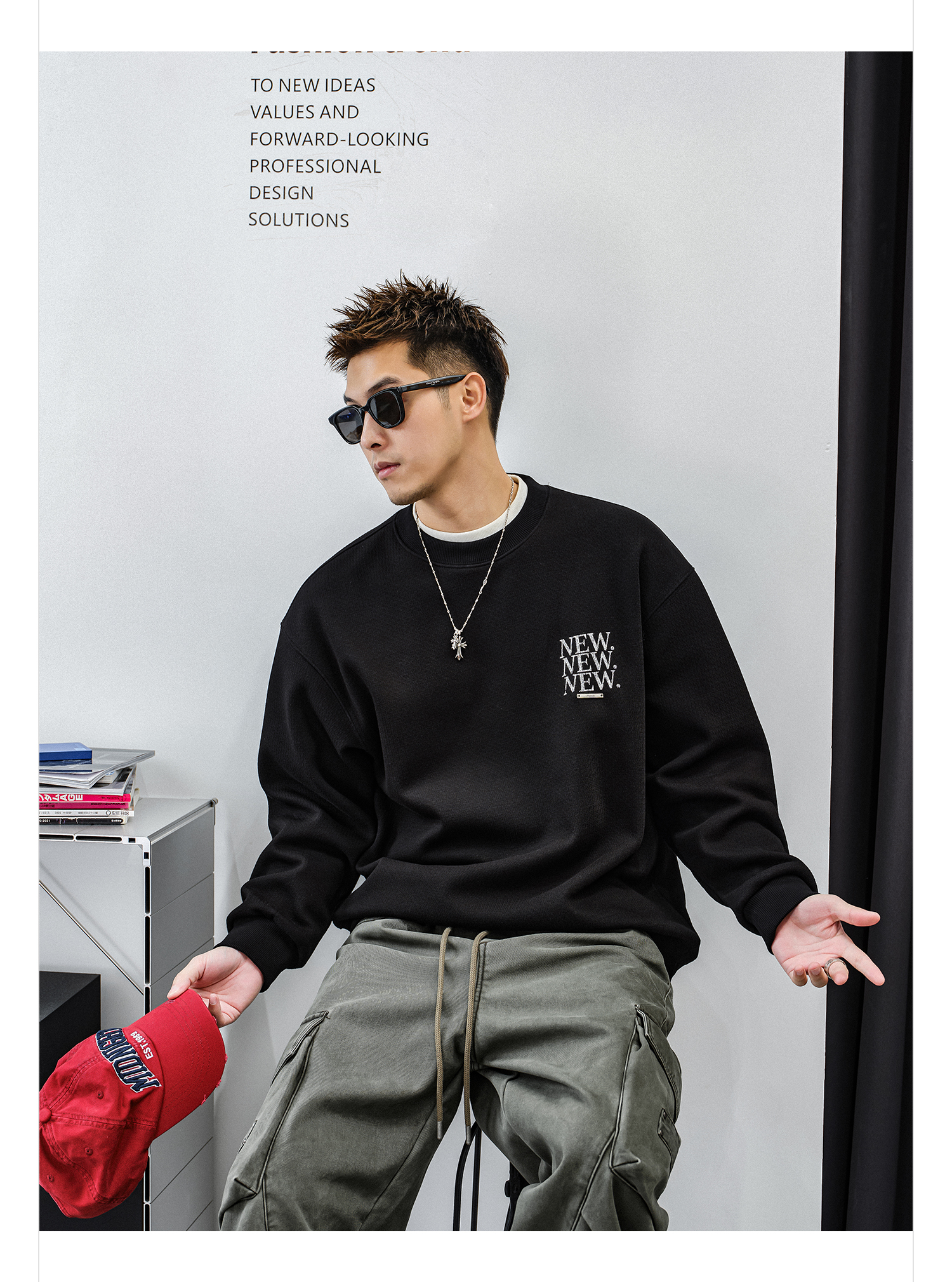 徐太浪【时尚字母 帅气印花】加绒卫衣男秋冬款大码内搭打底上衣