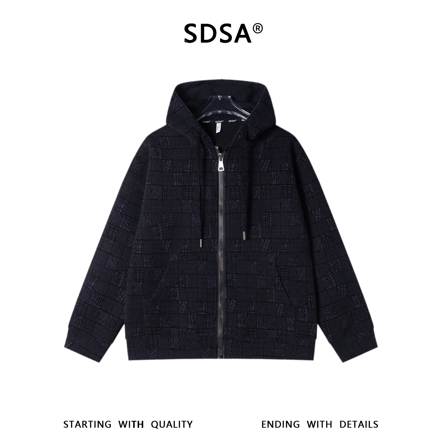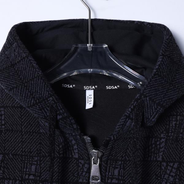 SDSA男士秋冬新款痞帅男装潮牌简约撞色绒毛格子拉链连帽卫衣百搭