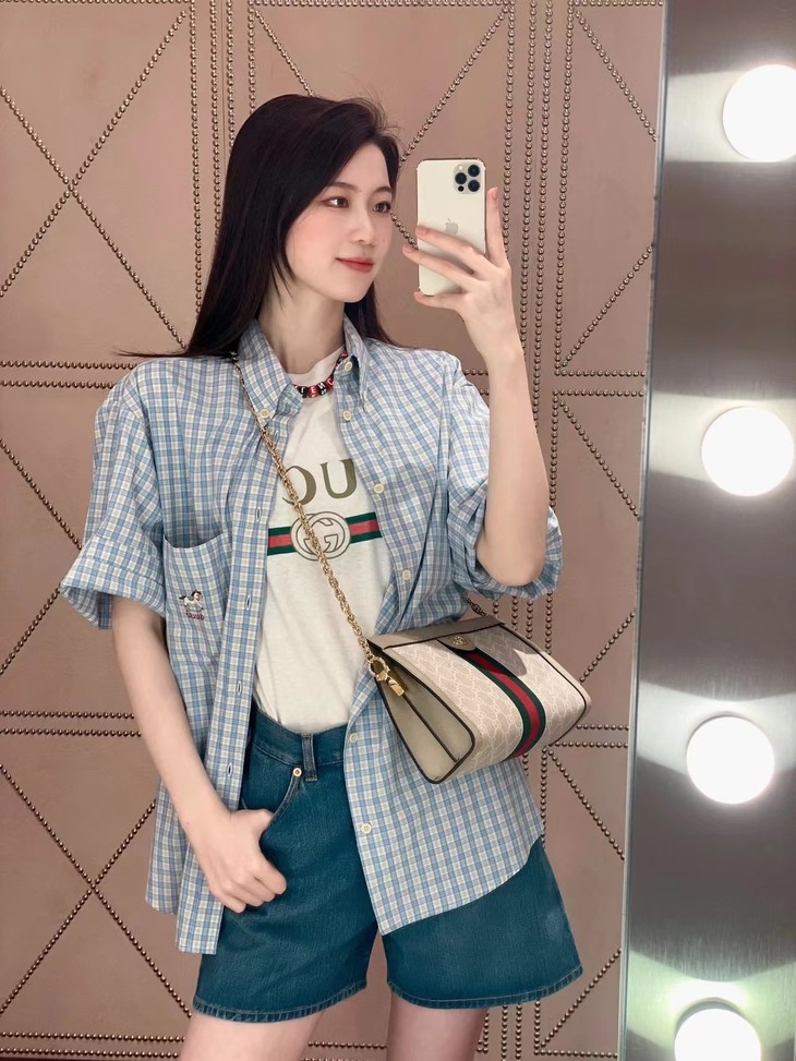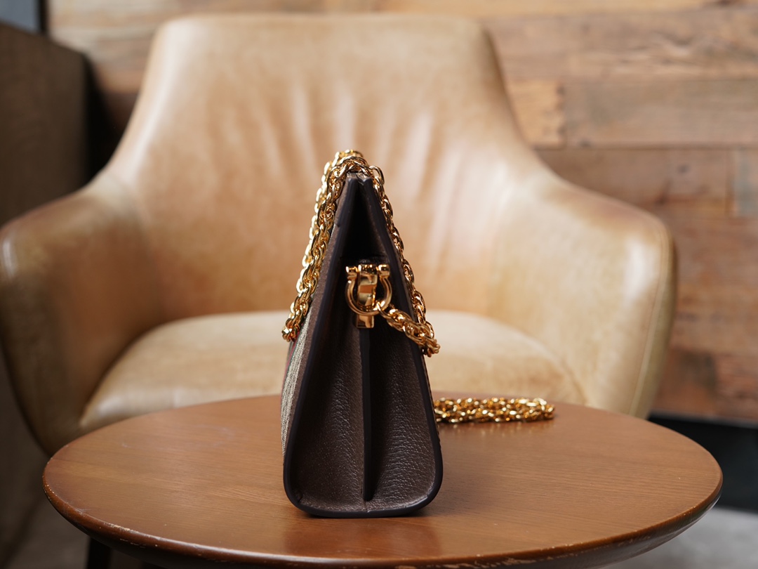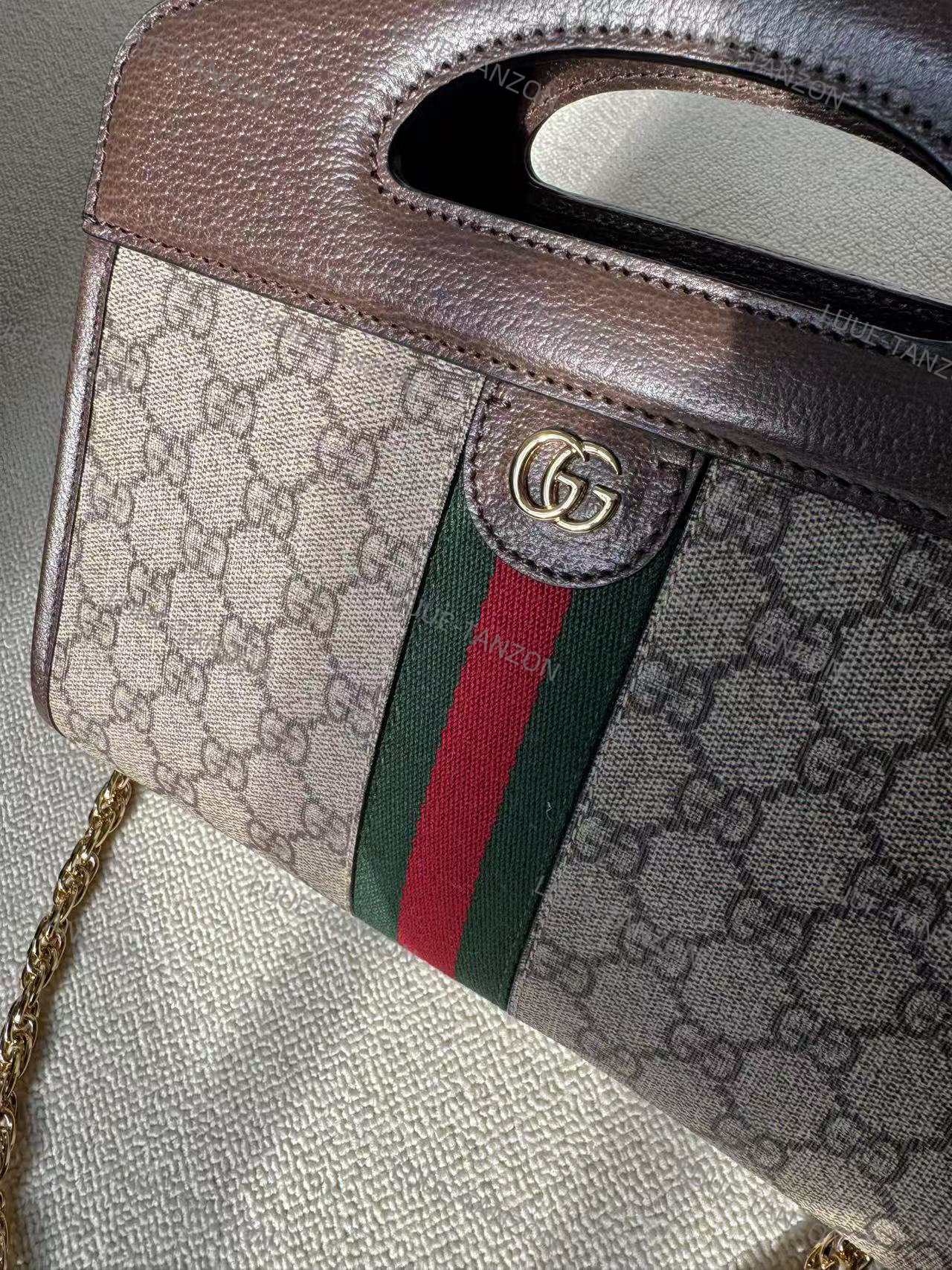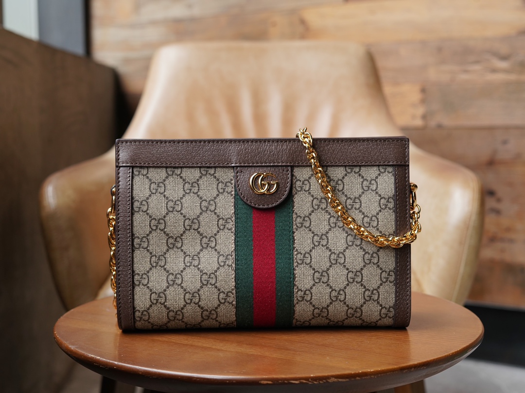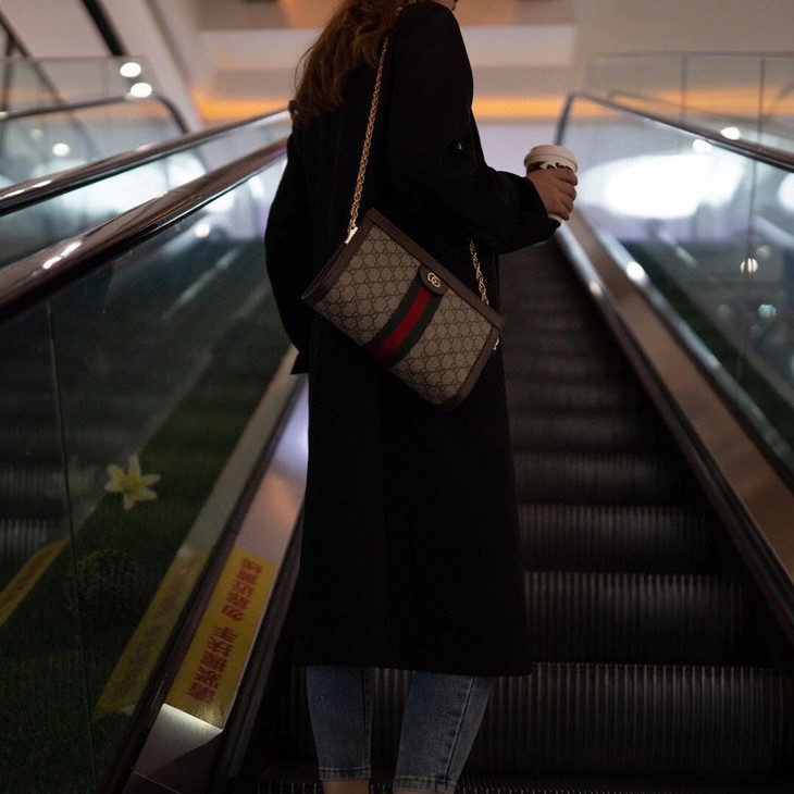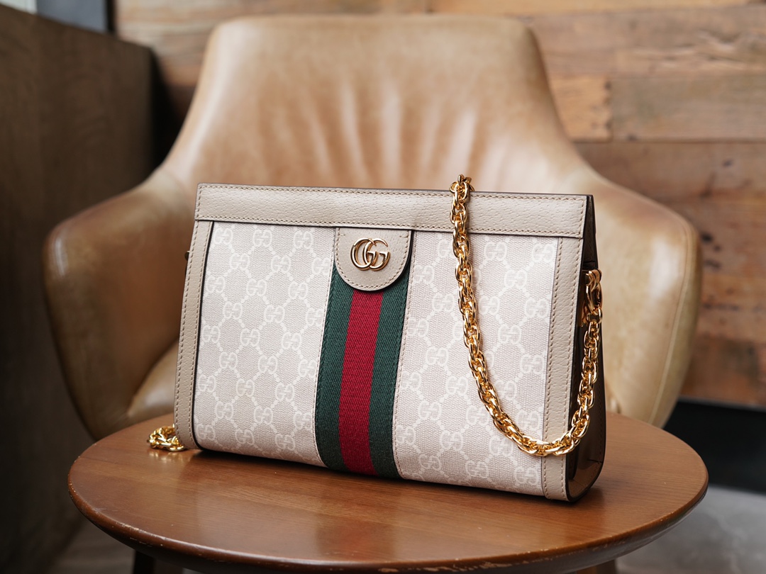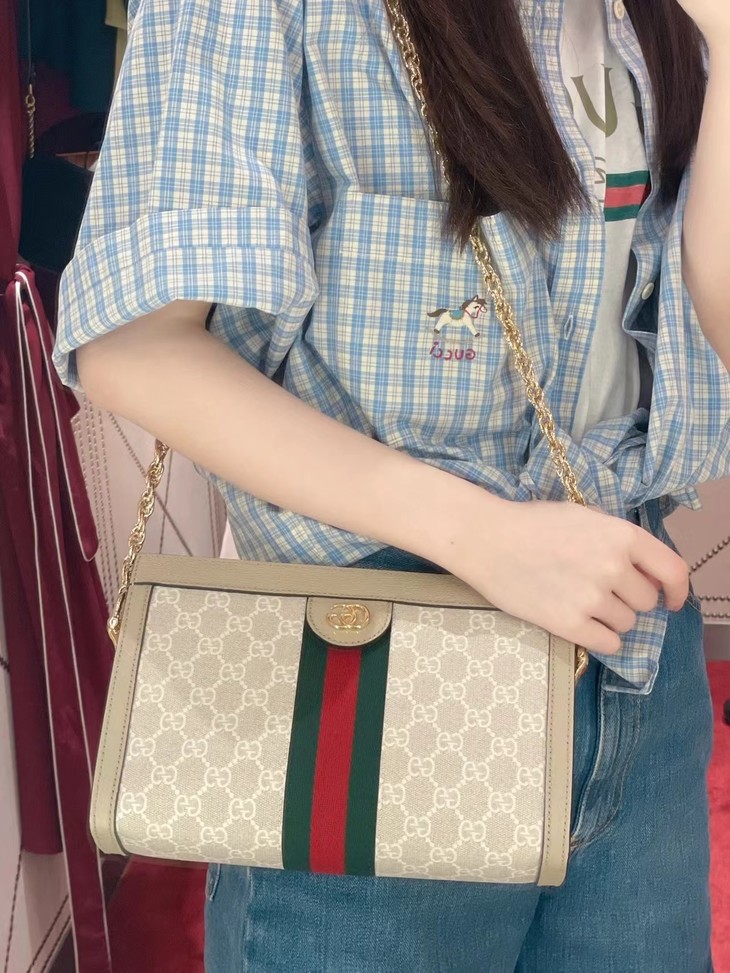 此款链带肩背包采用GG Supreme帆布精心打造,配以嵌花条纹织带细节,彰显复古风格设计。造型颇具结构感,以磁扣安全闭合,皮革滚边,装饰典藏细节——双G配件。