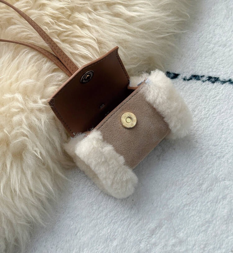 材质:牛皮+羊皮毛一体+超纤内里+牛皮肩带+五金扣